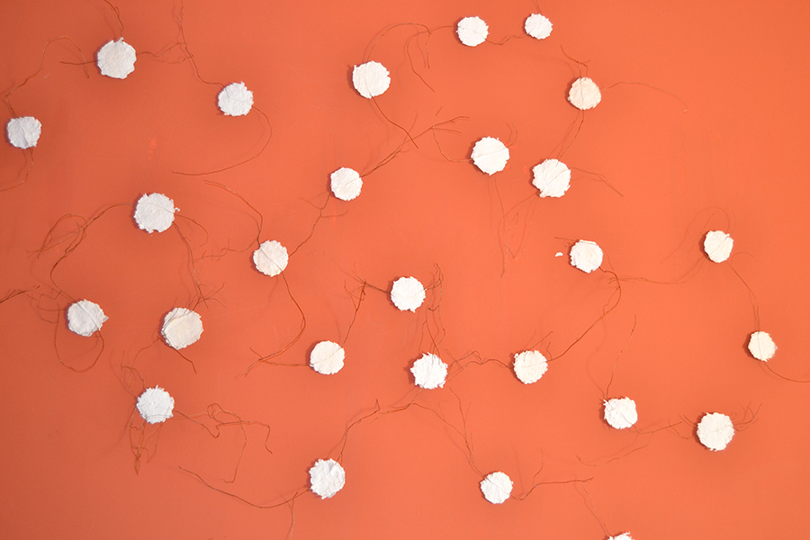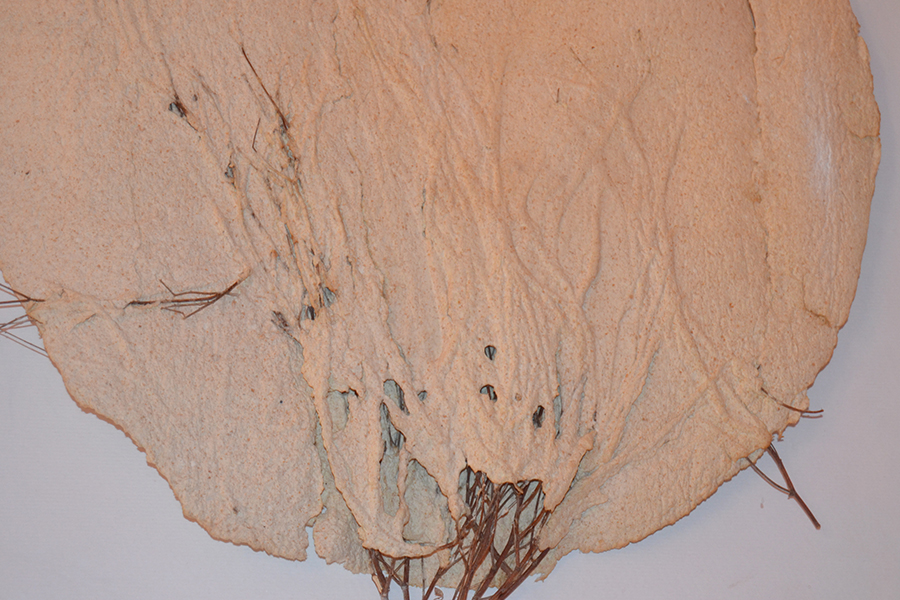 «Frágil» es la obra de Elena Martí y se sitúa en la sala de Turismo. Elena trabaja distintos formatos y técnicas con un elemento común, la fragilidad que nos transmiten los materiales de sus obras, utilizando las propiedades simbólicas que le pueden ofrecer.