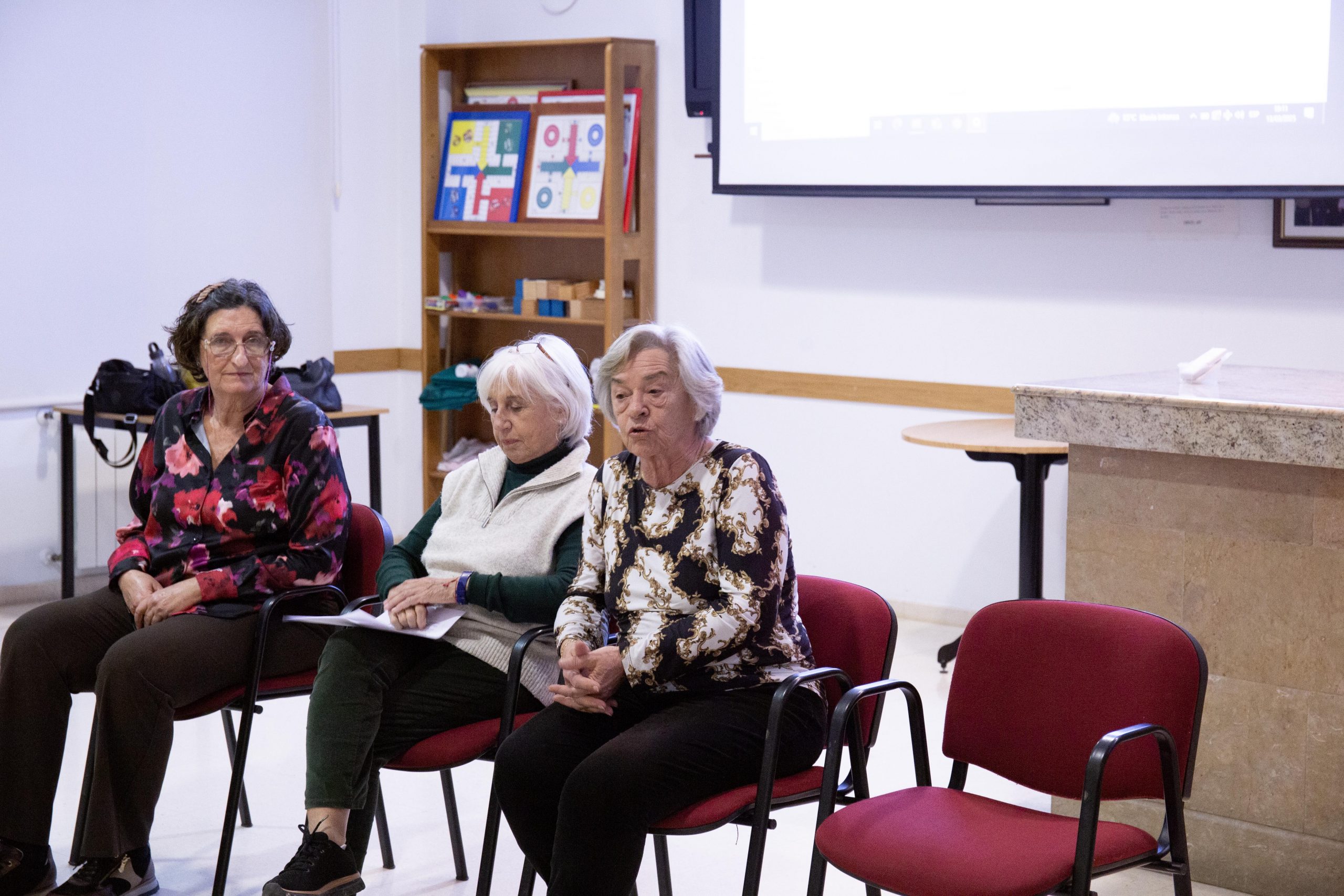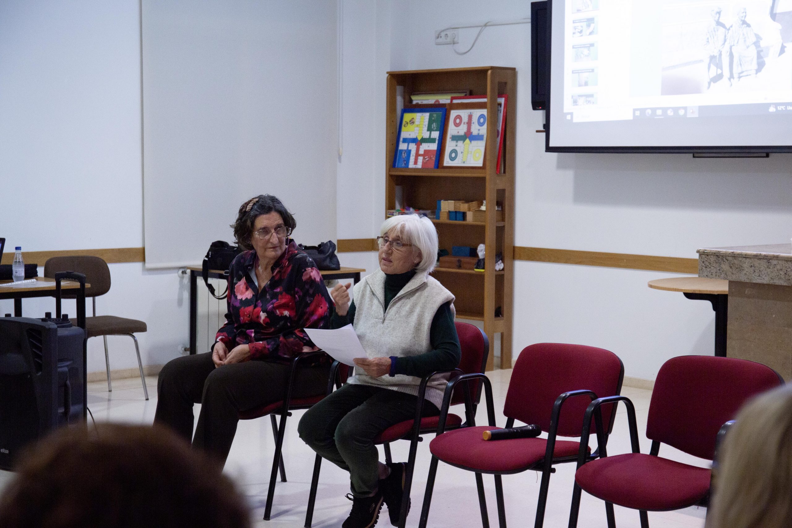La charla estuvo a cargo de tres miembros de la cooperativa, Gloria Martínez Navarro, Pilar Guill Guillem y Anabel Bastida Torróntegui; vocal, secretaria y presidenta del consejo rector, respectivamente, quiénes presentaron el proyecto de viviendas colectivas y autogestionadas que llevan cabo en las poblaciones de Godella y Puerto de Sagunto, al que pertenecen 75 personas en la actualidad.