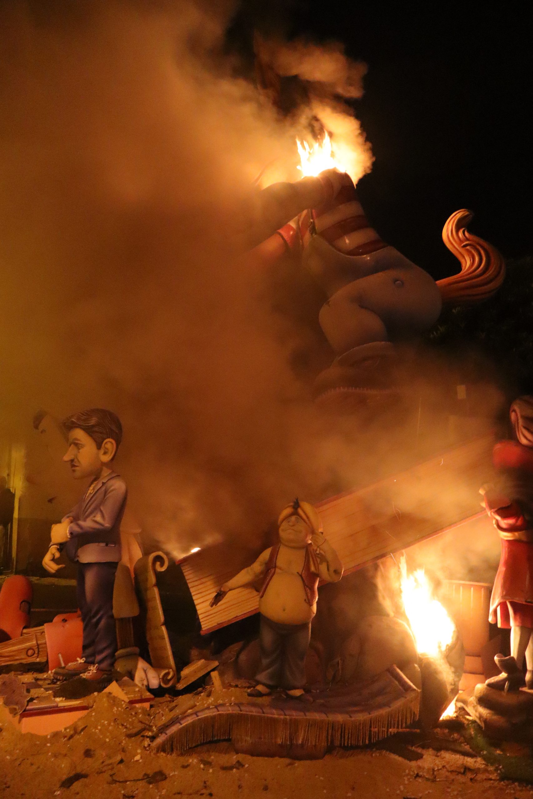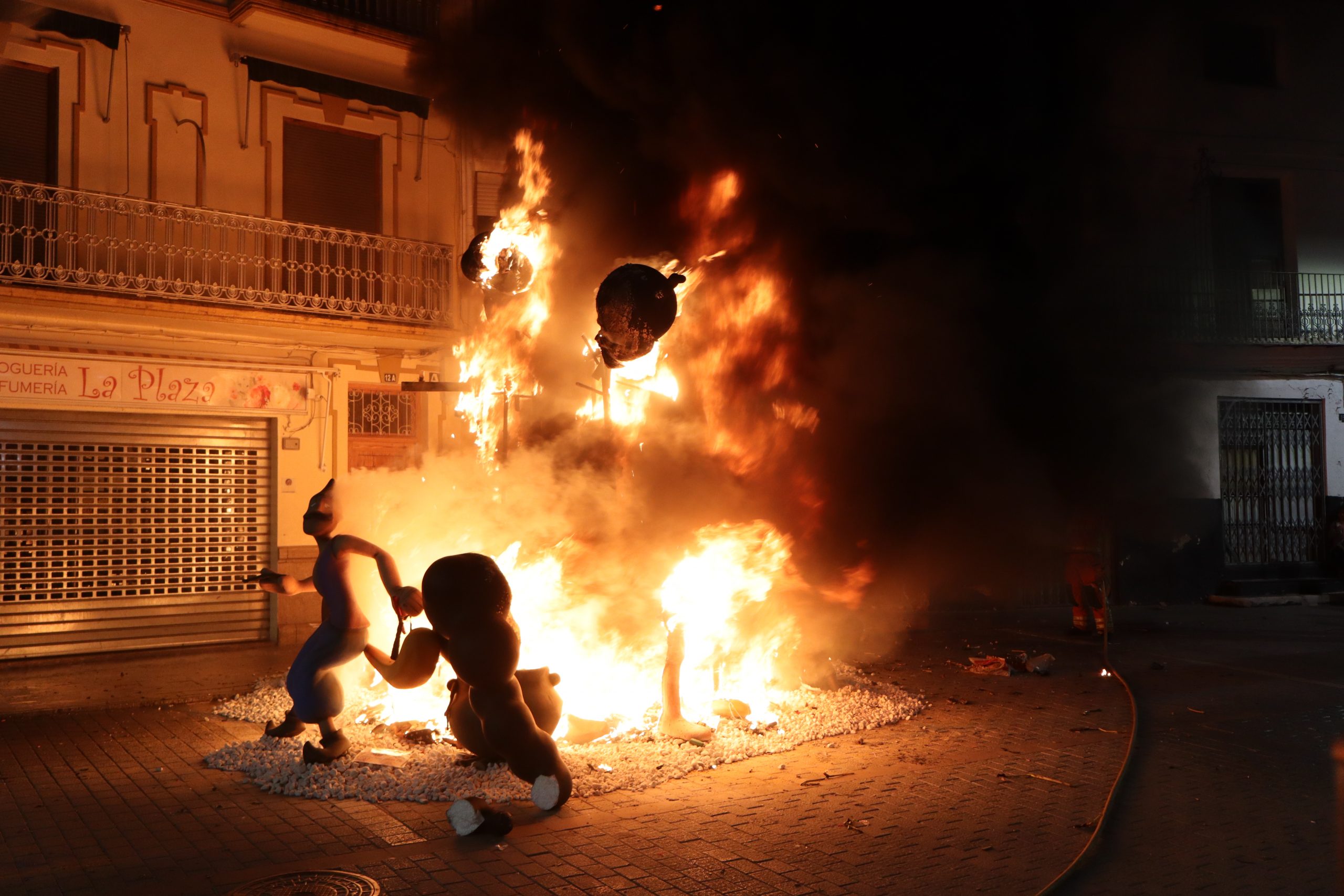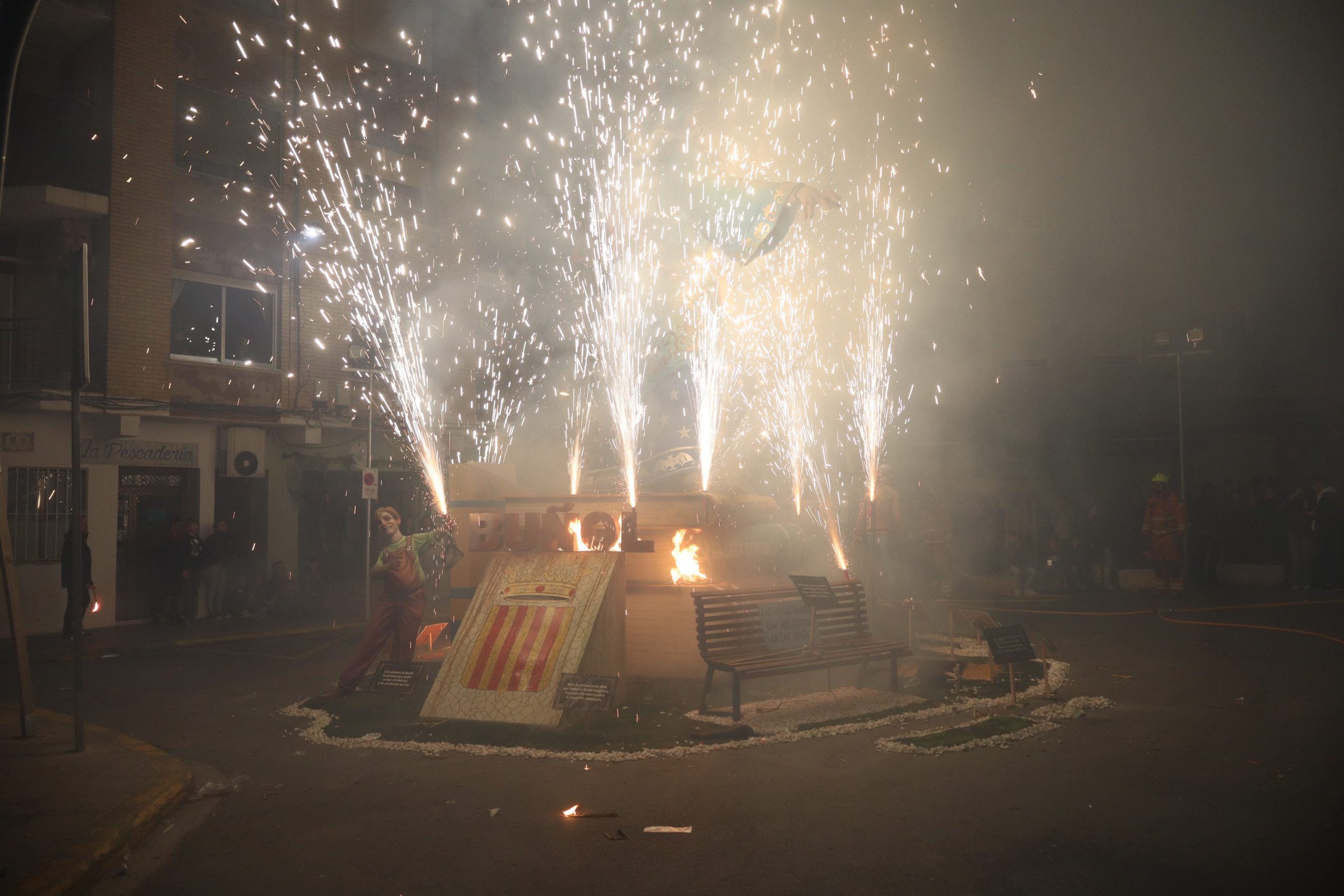Y en cuanto a la «cremà» los primeros monumentos en quemarse fueron los infantiles, para luego dar paso a los grandes. Comenzó la Falla Buñol Pueblo, siguió Nuevo Buñol y Reyes Católicos, continuó la Falla Ventas y , por último, la Falla El Prado.
