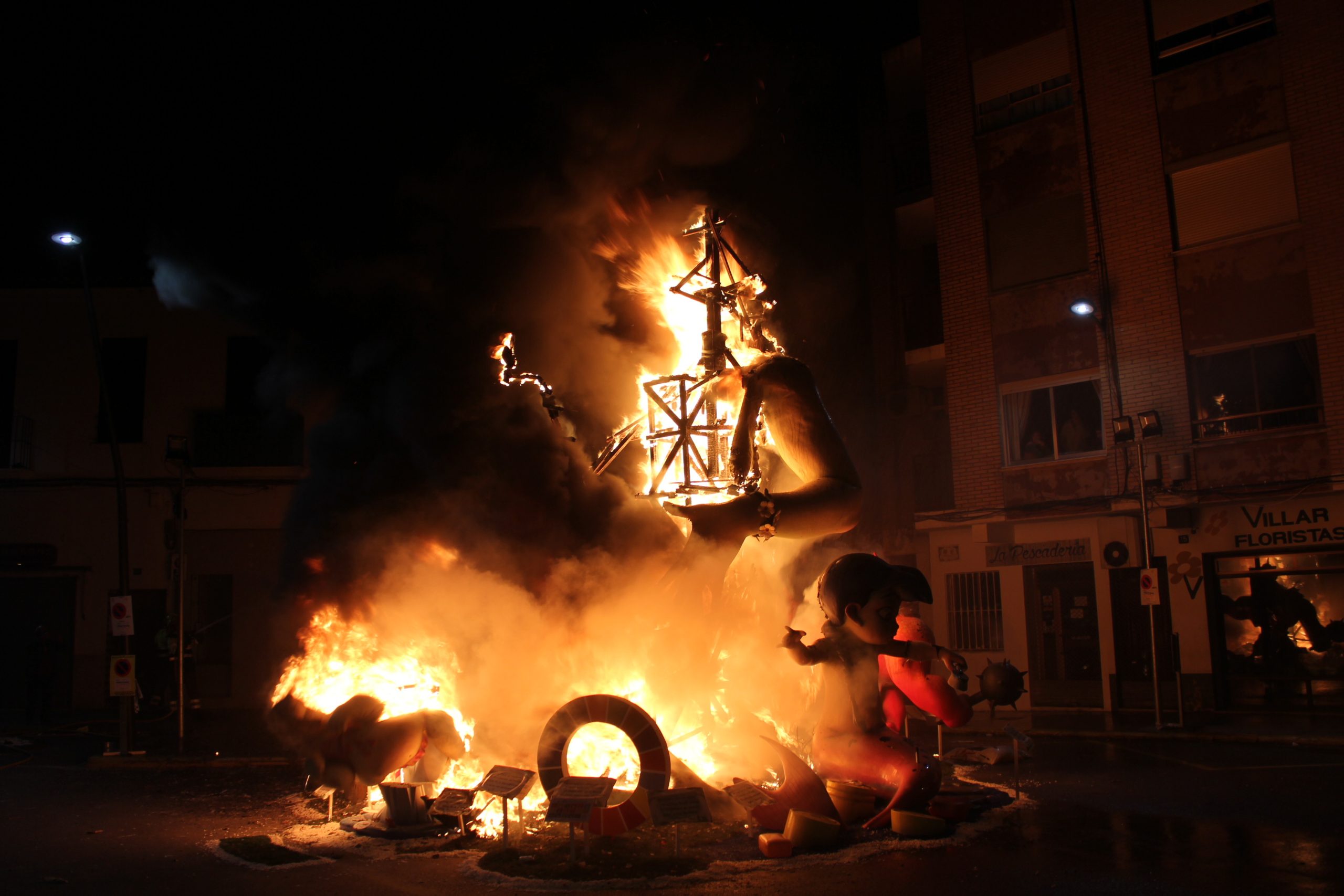 Y en cuanto a la «cremà» los primeros monumentos en quemarse fueron los infantiles, para luego dar paso a los grandes. Comenzó la Falla Reyes Católicos, le siguió la Falla El Prado, después la Falla Ventas, más tarde la Falla Buñol Pueblo y, por último, la Falla Nuevo Buñol.