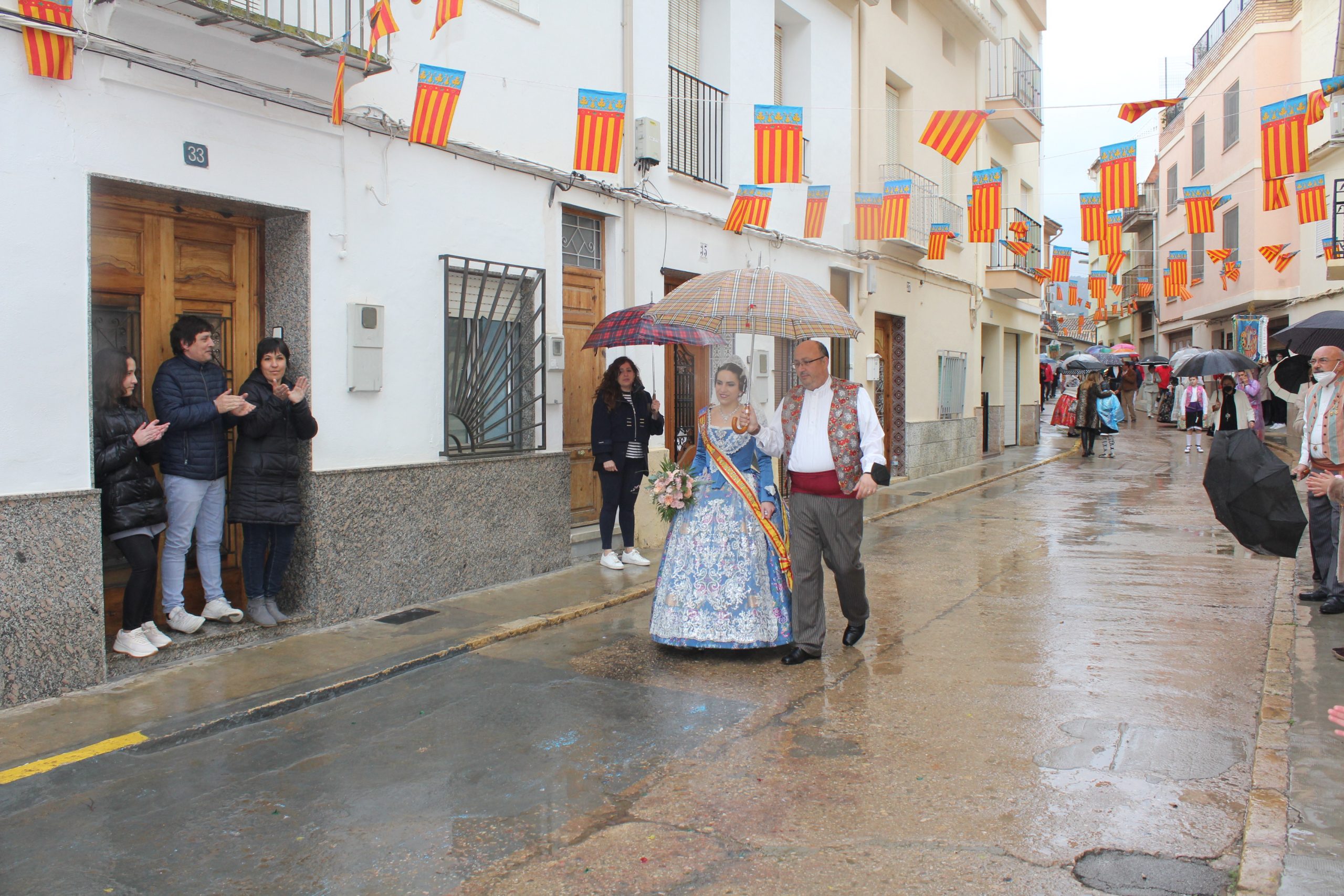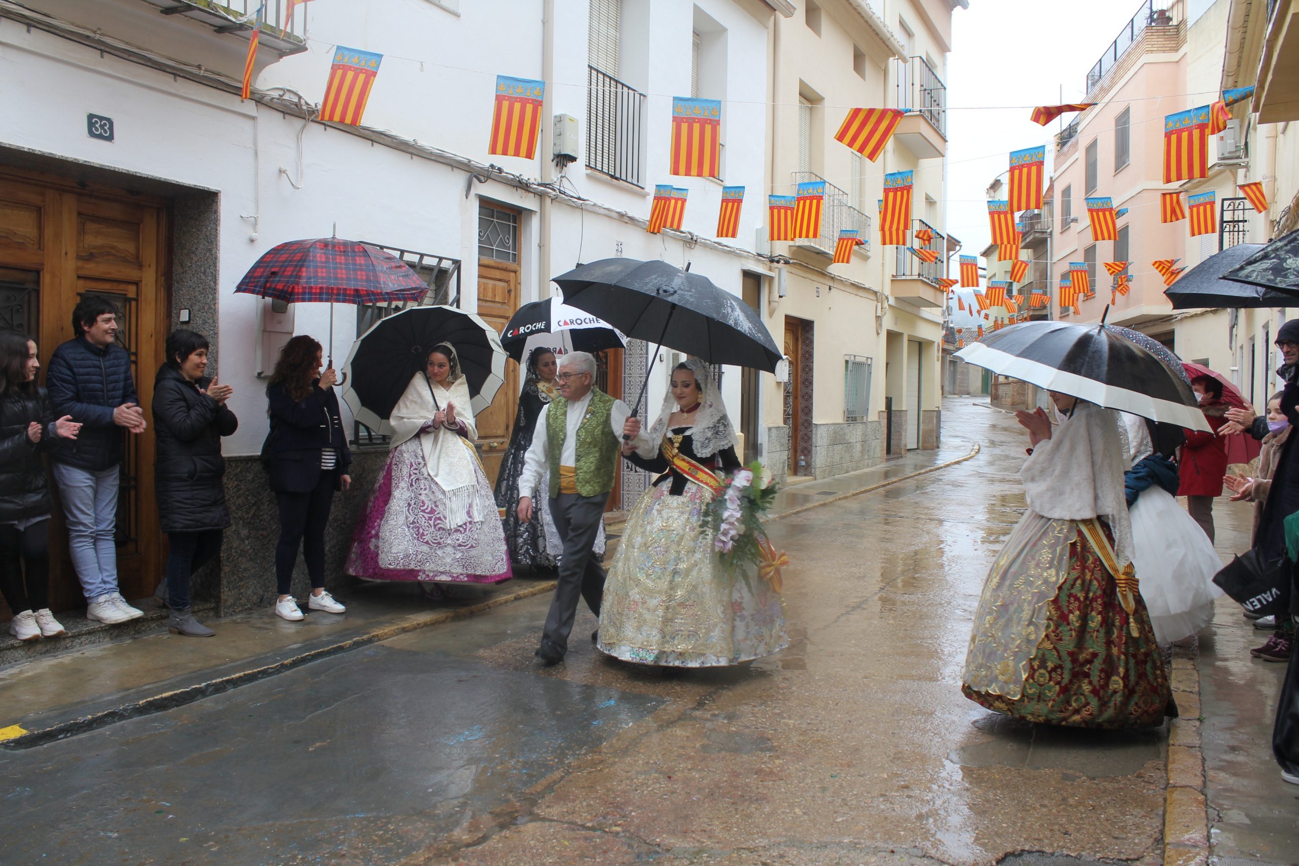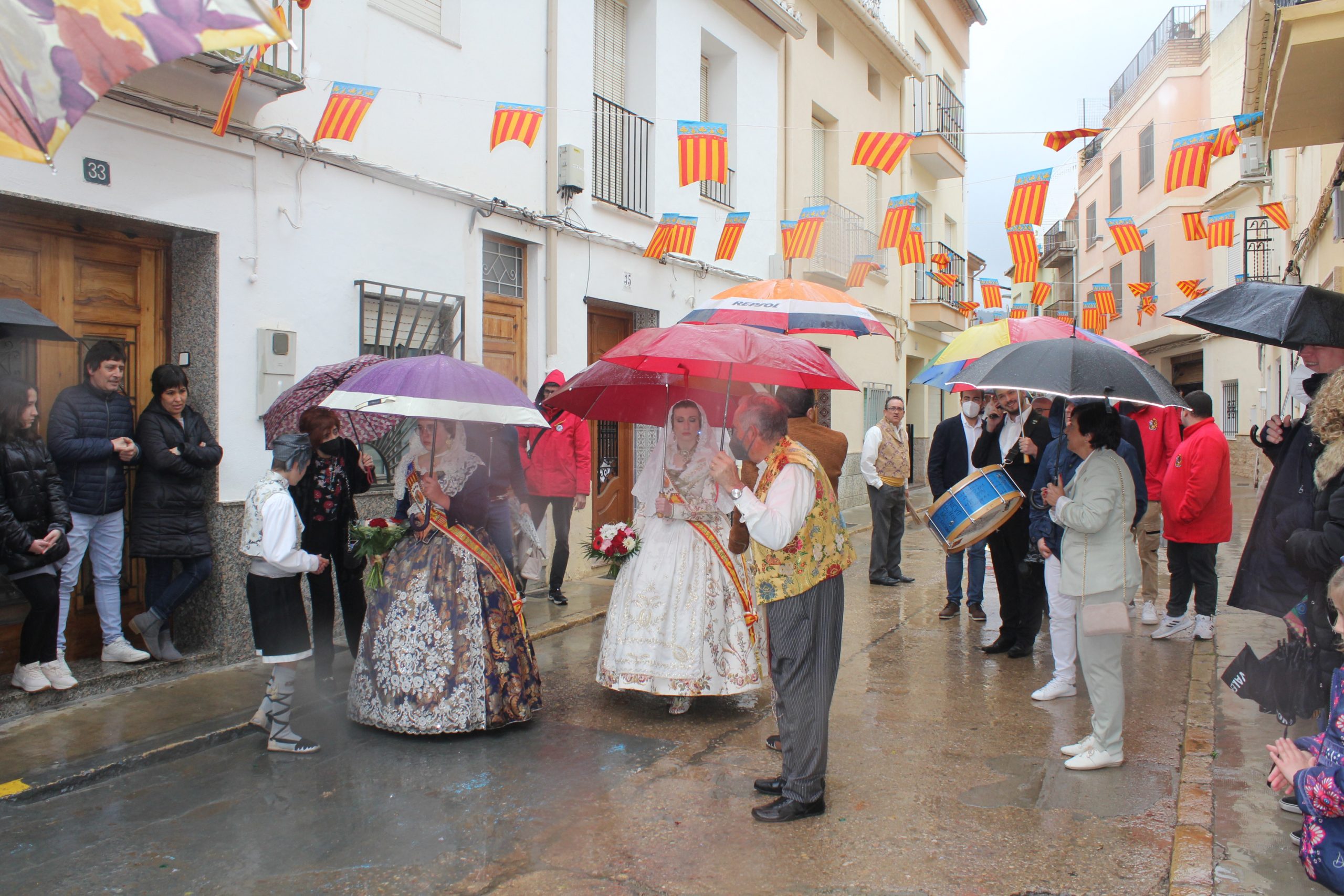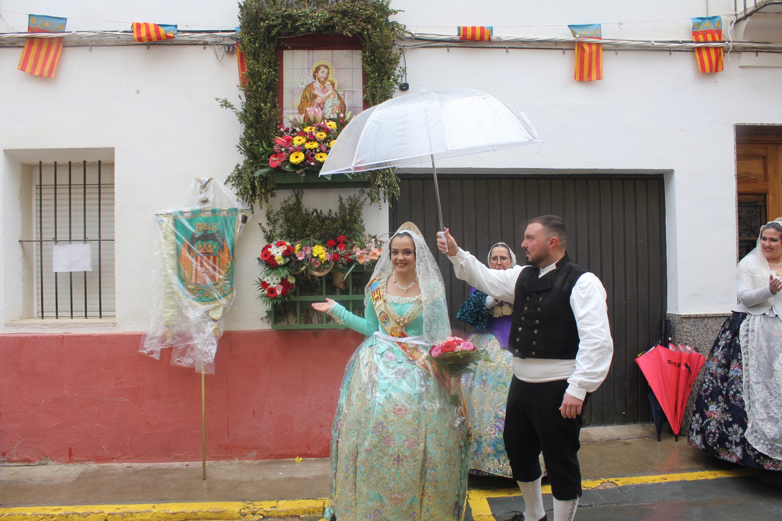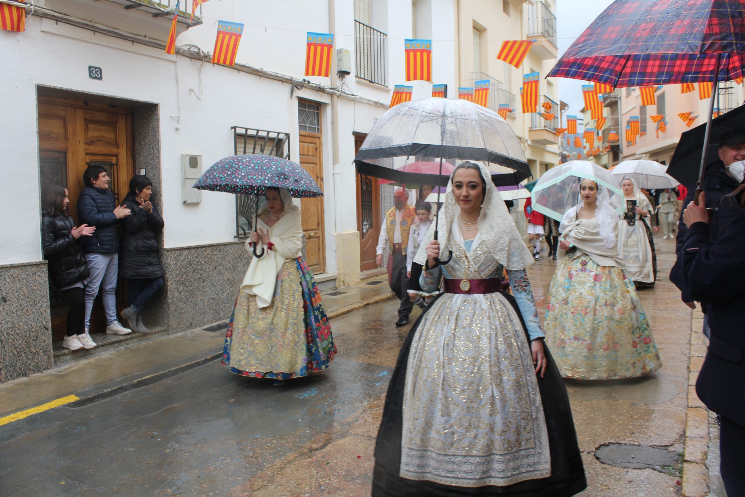 Redacción.- El último día de fallas -como los anteriores- también estuvo protagonizado por las precipitaciones que se dejaron notar en la localidad. Las falleras mayores de las distintas comisiones acudieron a la misa paraguas en ristre. Cuando terminó la eucaristía, la comitiva se dirigió, como es tradición, a la calle Daoíz y Velarde, donde realizaron la ofrenda a la imagen de San José, situada en la conocida calle de «Los Carboneros».