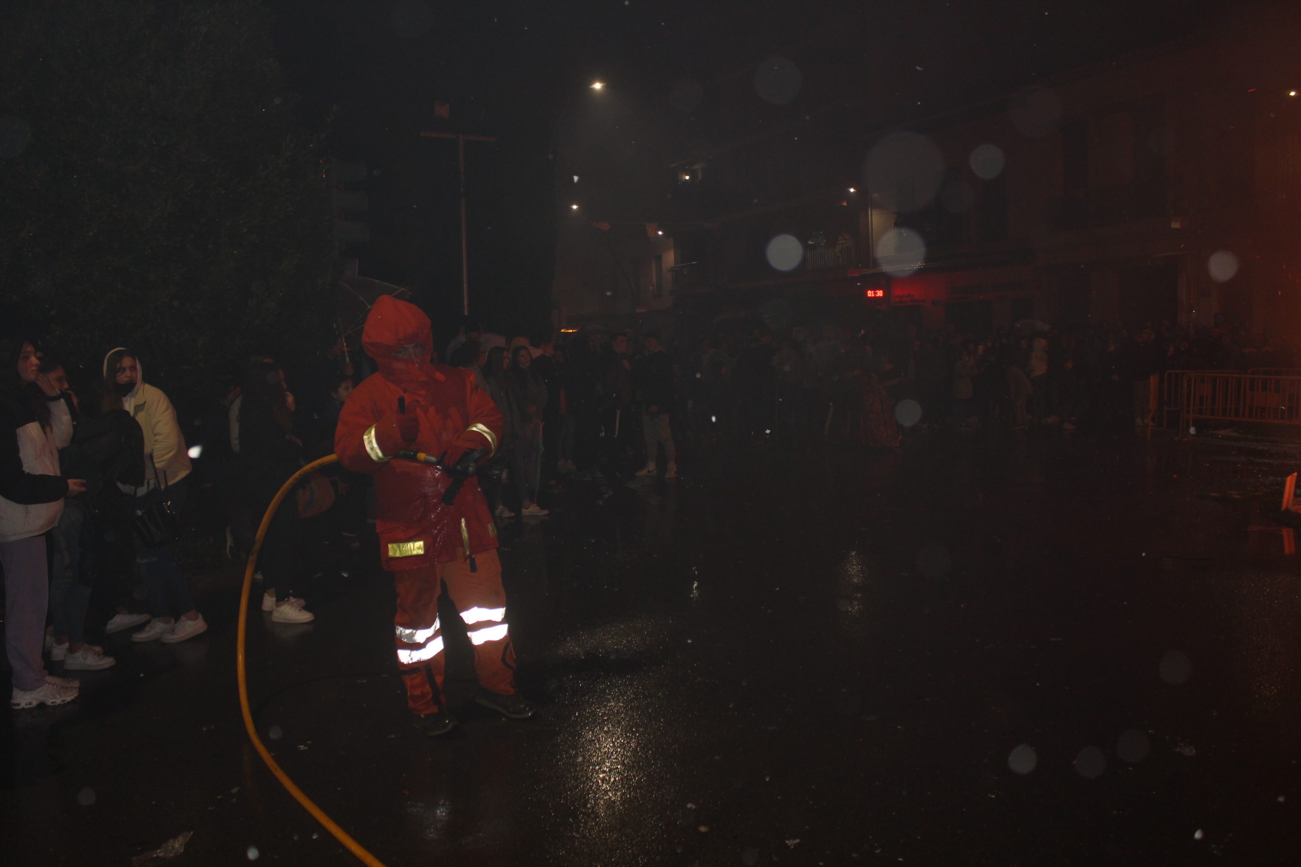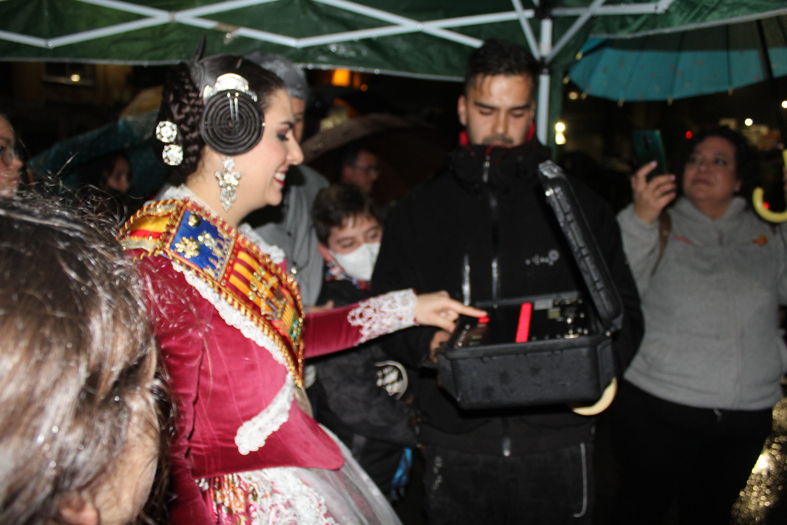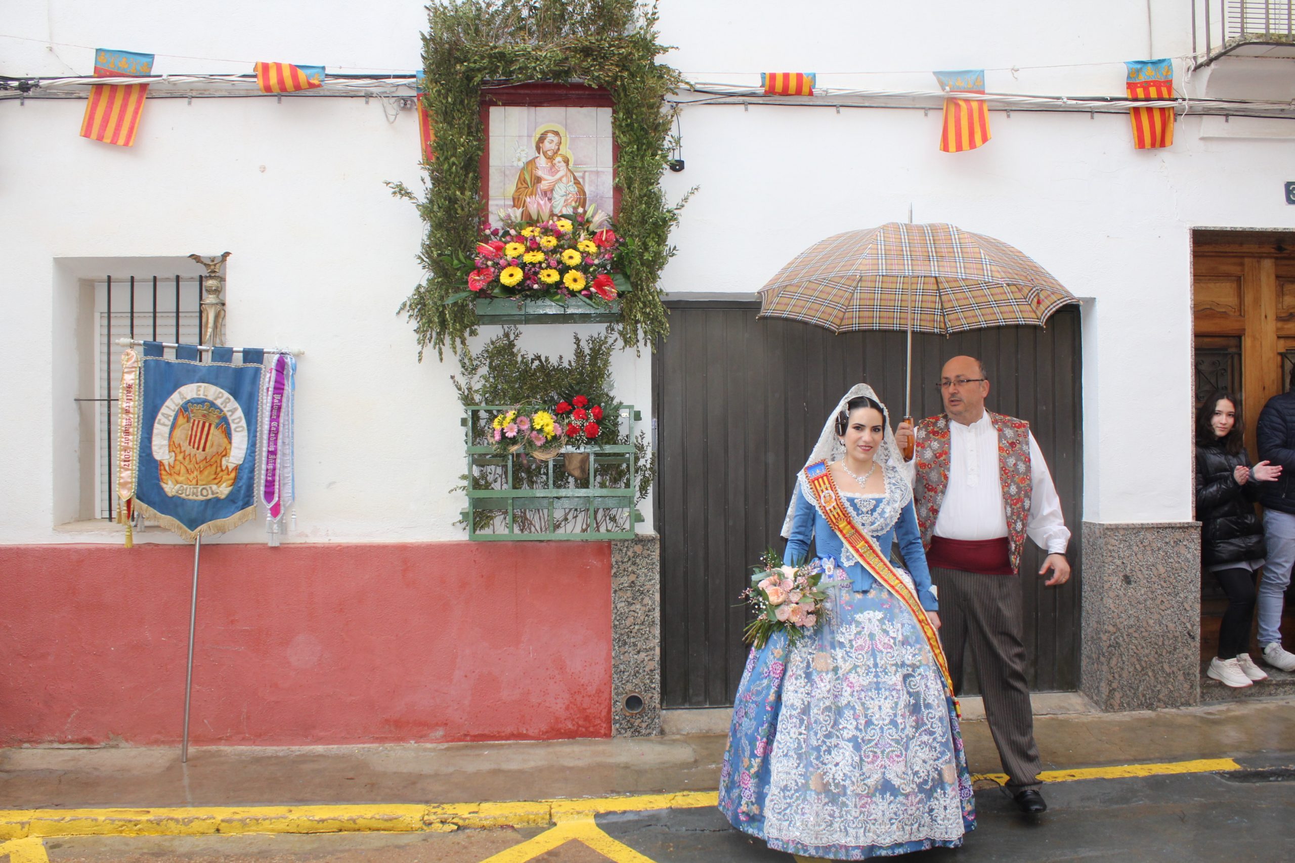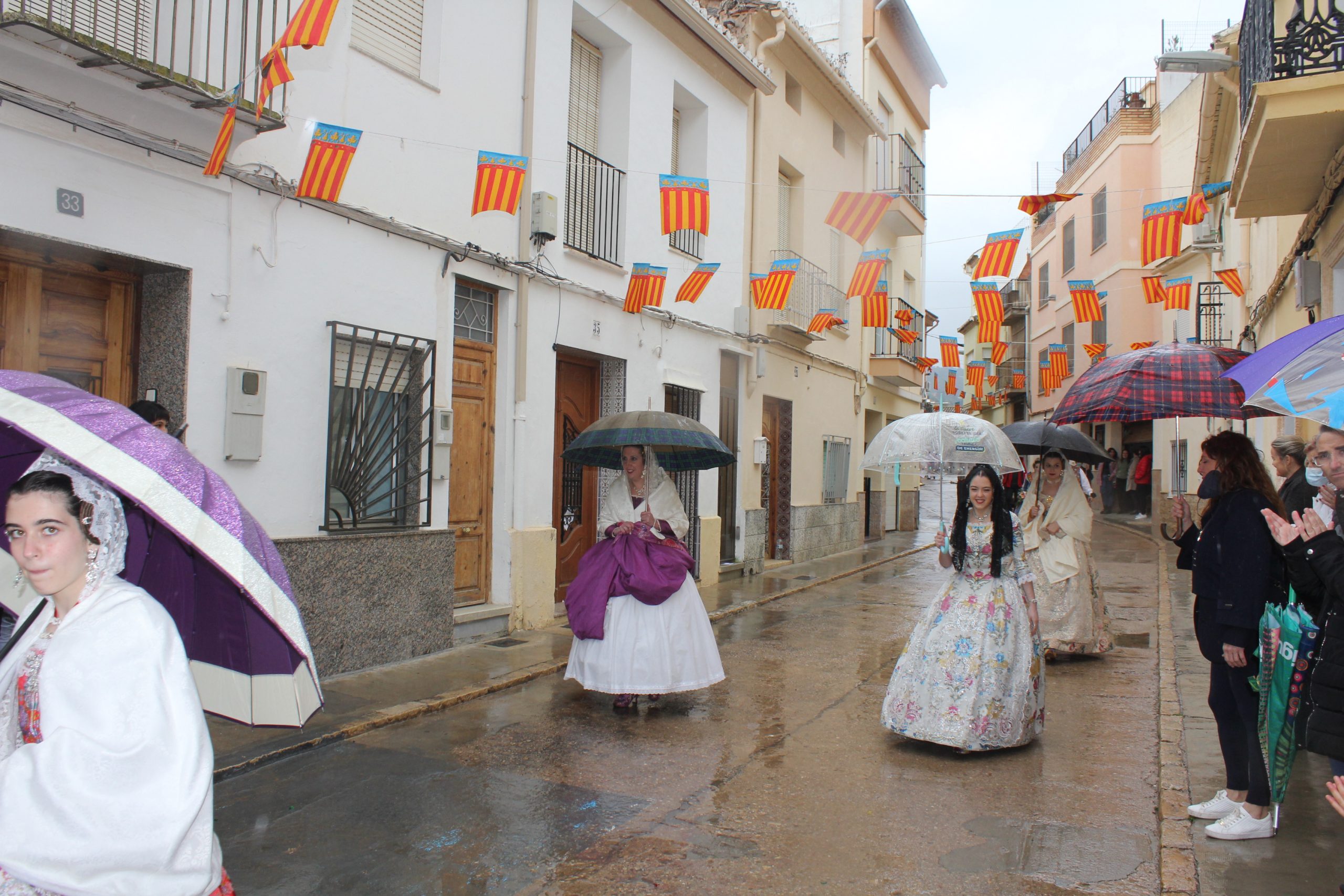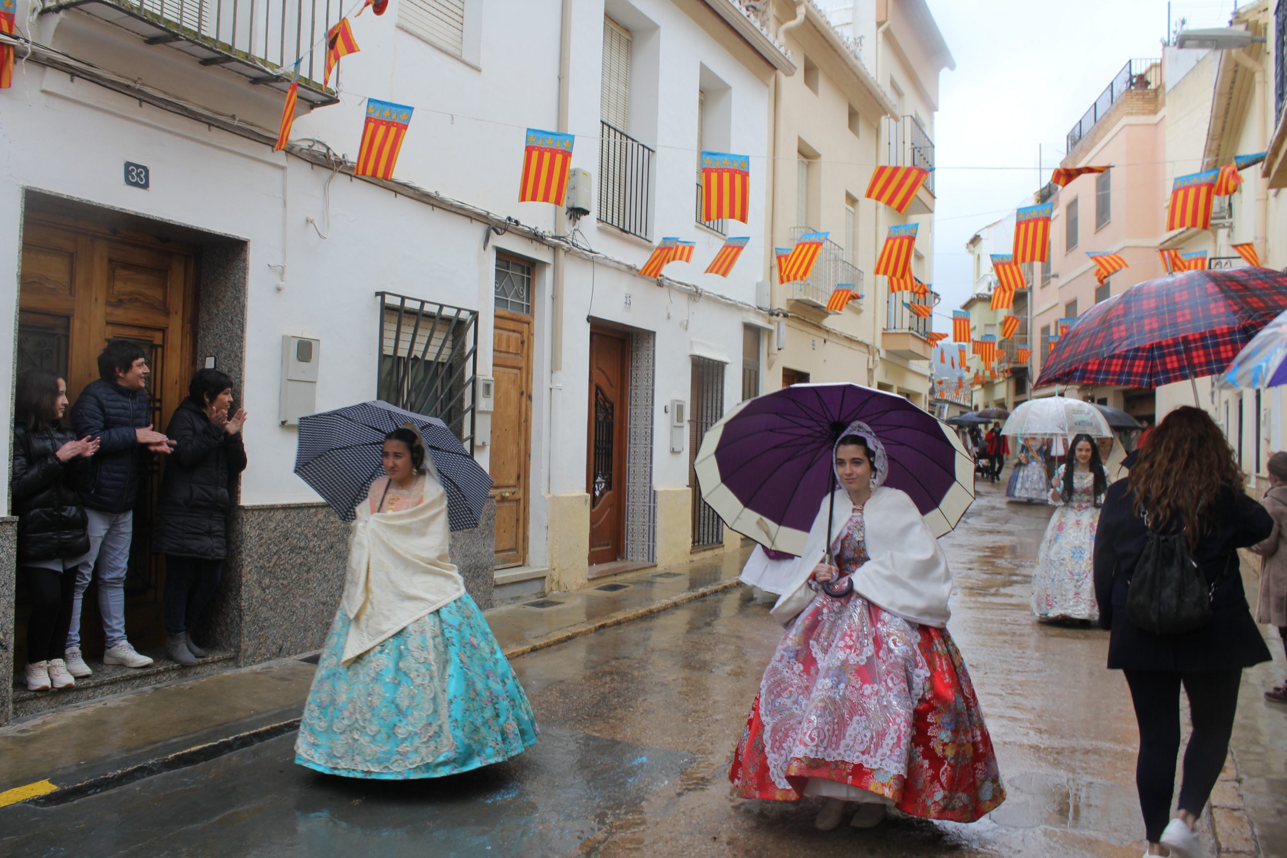 Redacción.- El último día de fallas -como los anteriores- también estuvo protagonizado por las precipitaciones que se dejaron notar en la localidad. Las falleras mayores de las distintas comisiones acudieron a la misa paraguas en ristre. Cuando terminó la eucaristía, la comitiva se dirigió, como es tradición, a la calle Daoíz y Velarde, donde realizaron la ofrenda a la imagen de San José, situada en la conocida calle de «Los Carboneros».