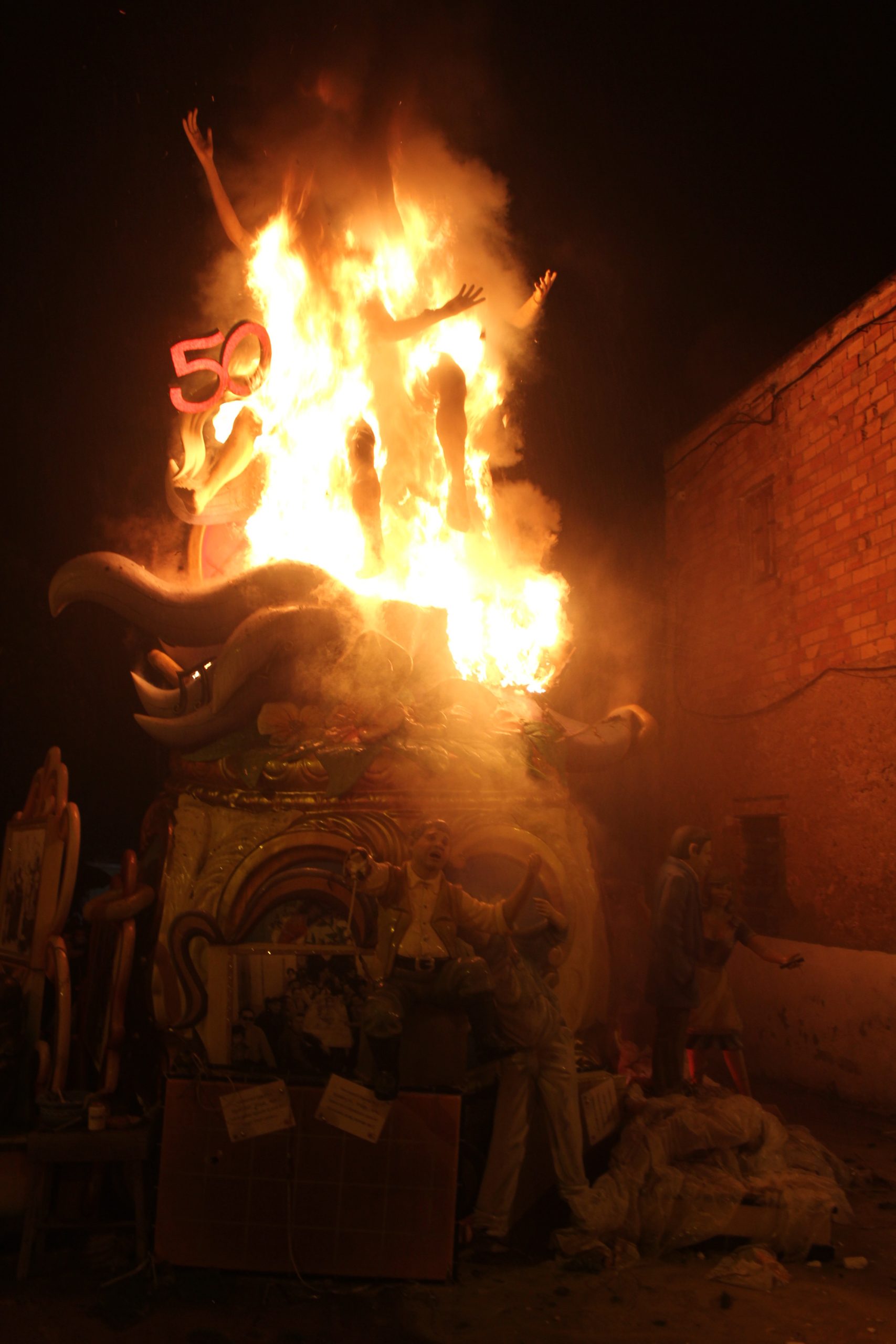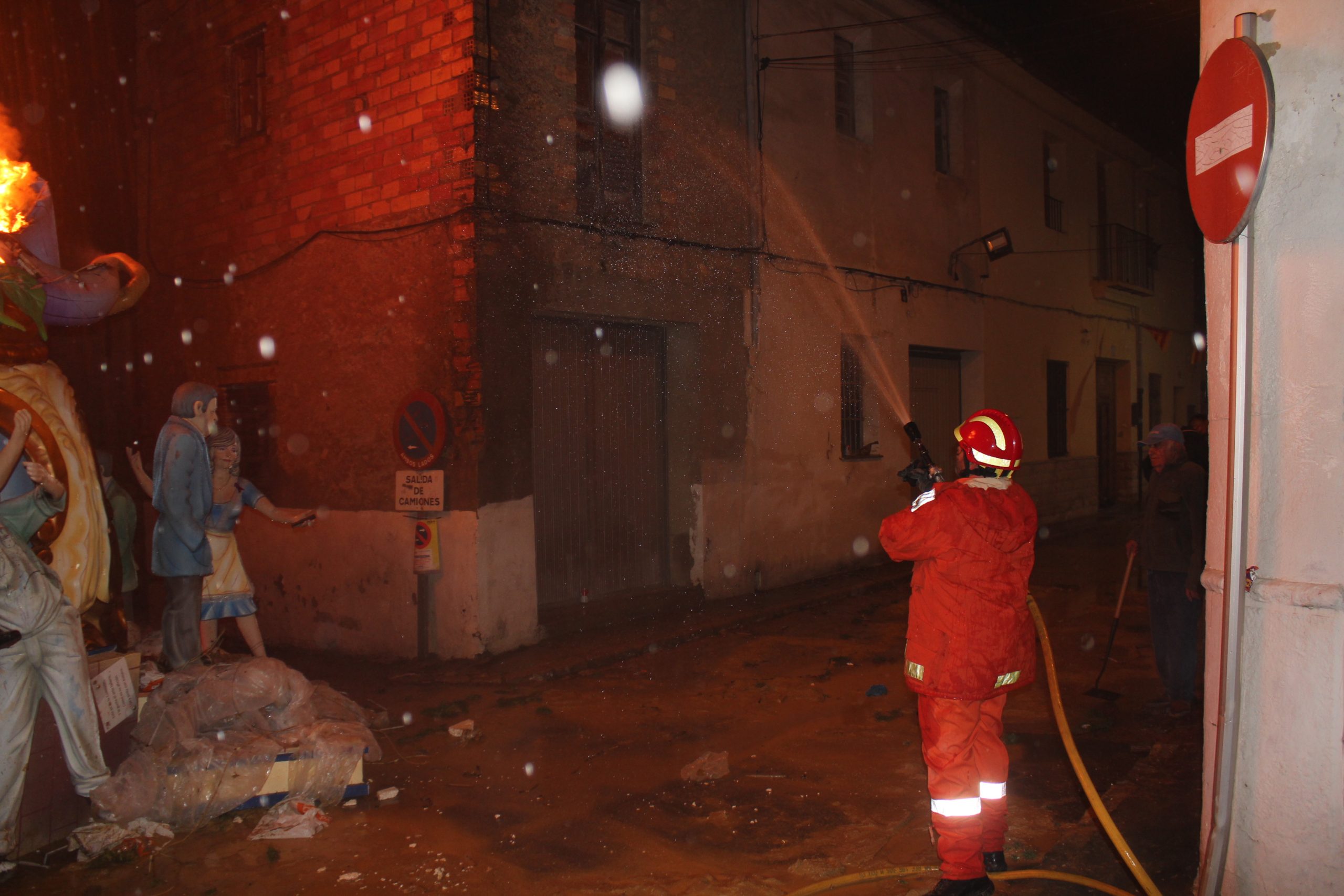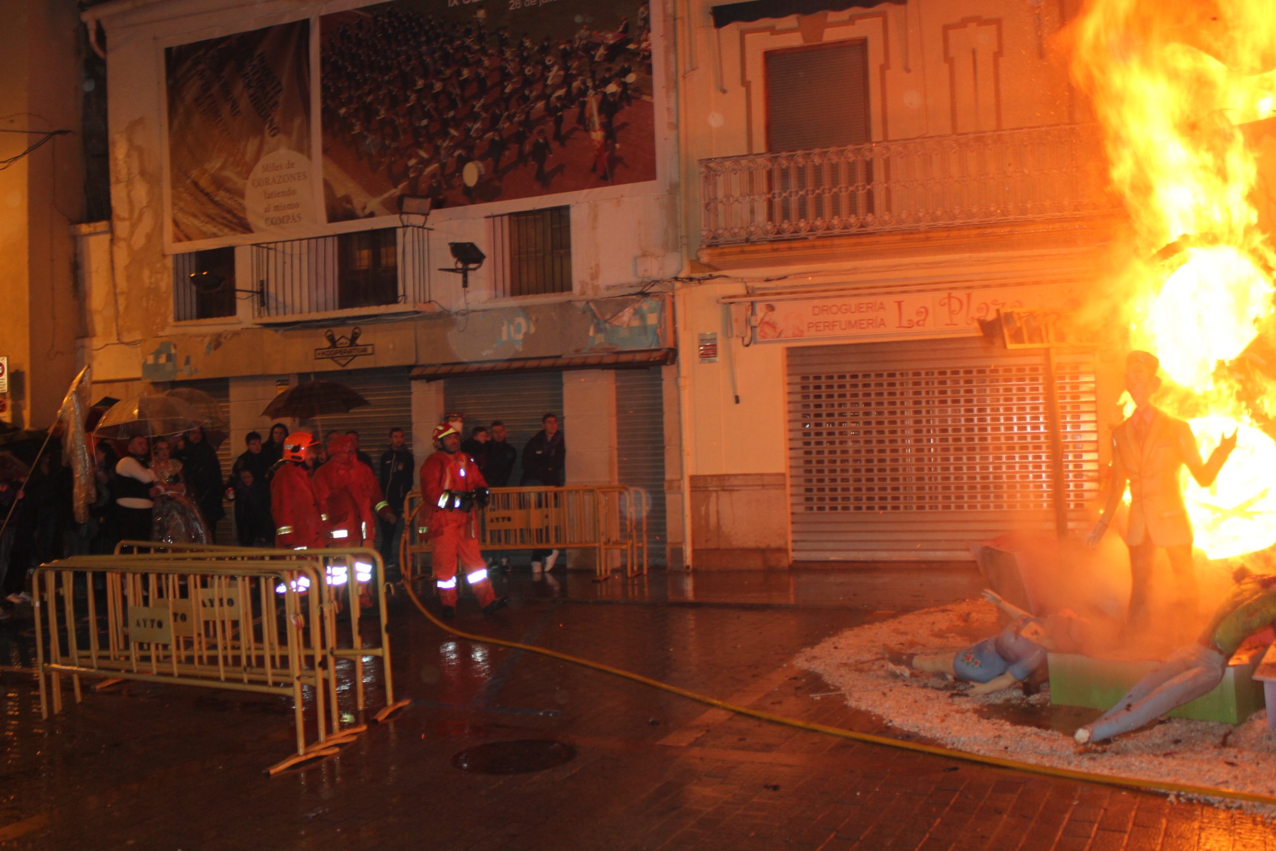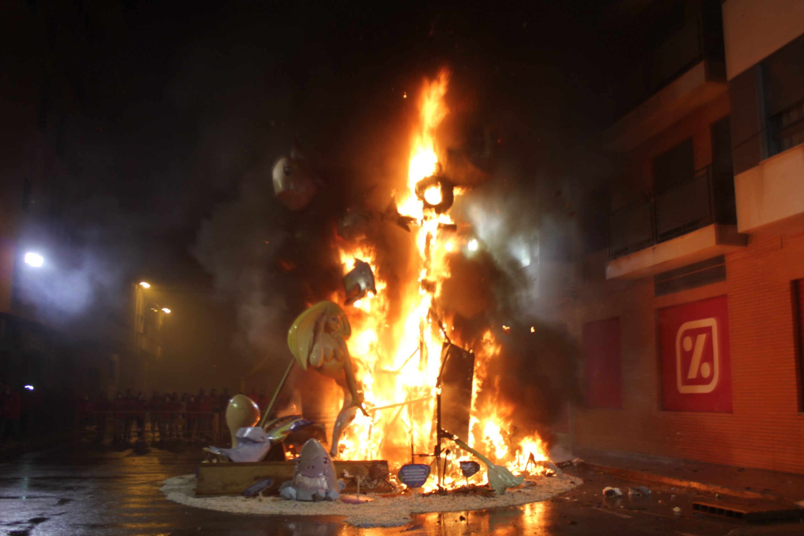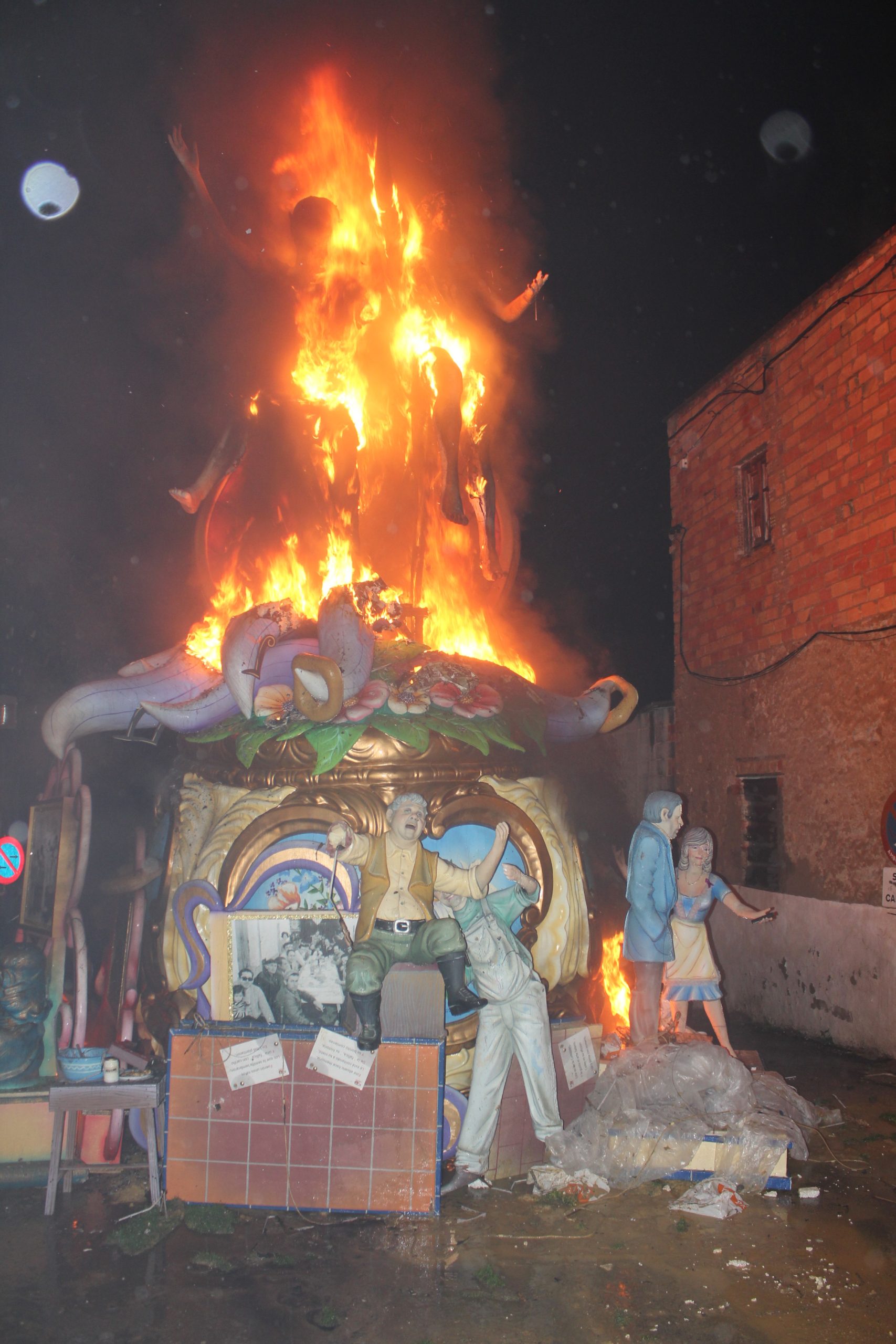 Ya por la noche le tocó el turno a las «cremás» de los distintos monumentos. Comenzaron a ser pasto de las llamas, como es habitual, los más pequeños, para más tarde, cerca de la medianoche dar paso a los grandes. Destacar la actuación de Protección Civil, siempre velando por la seguridad en este tipo de actos y porque todo se desarrolle sin ningún tipo de incodente.