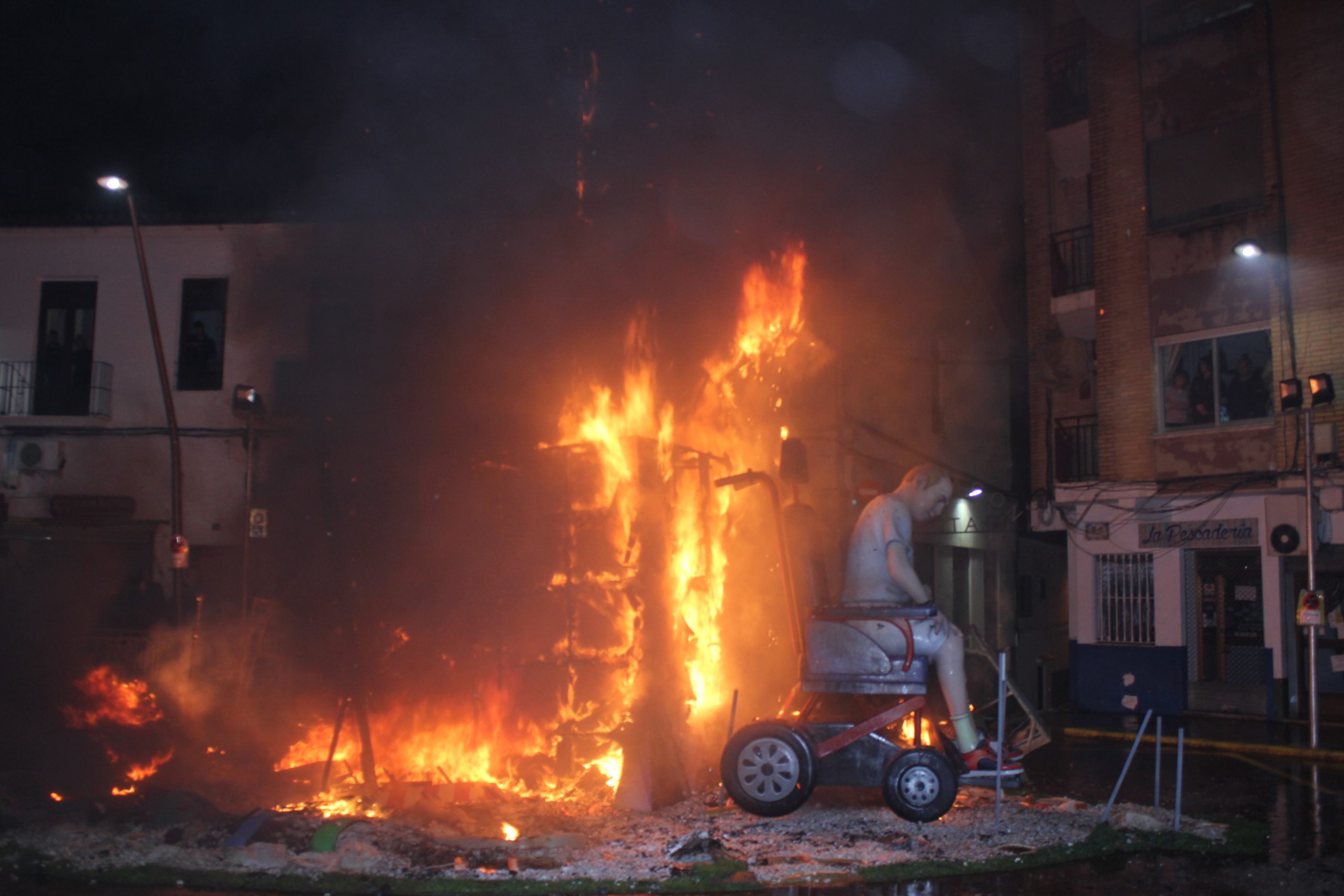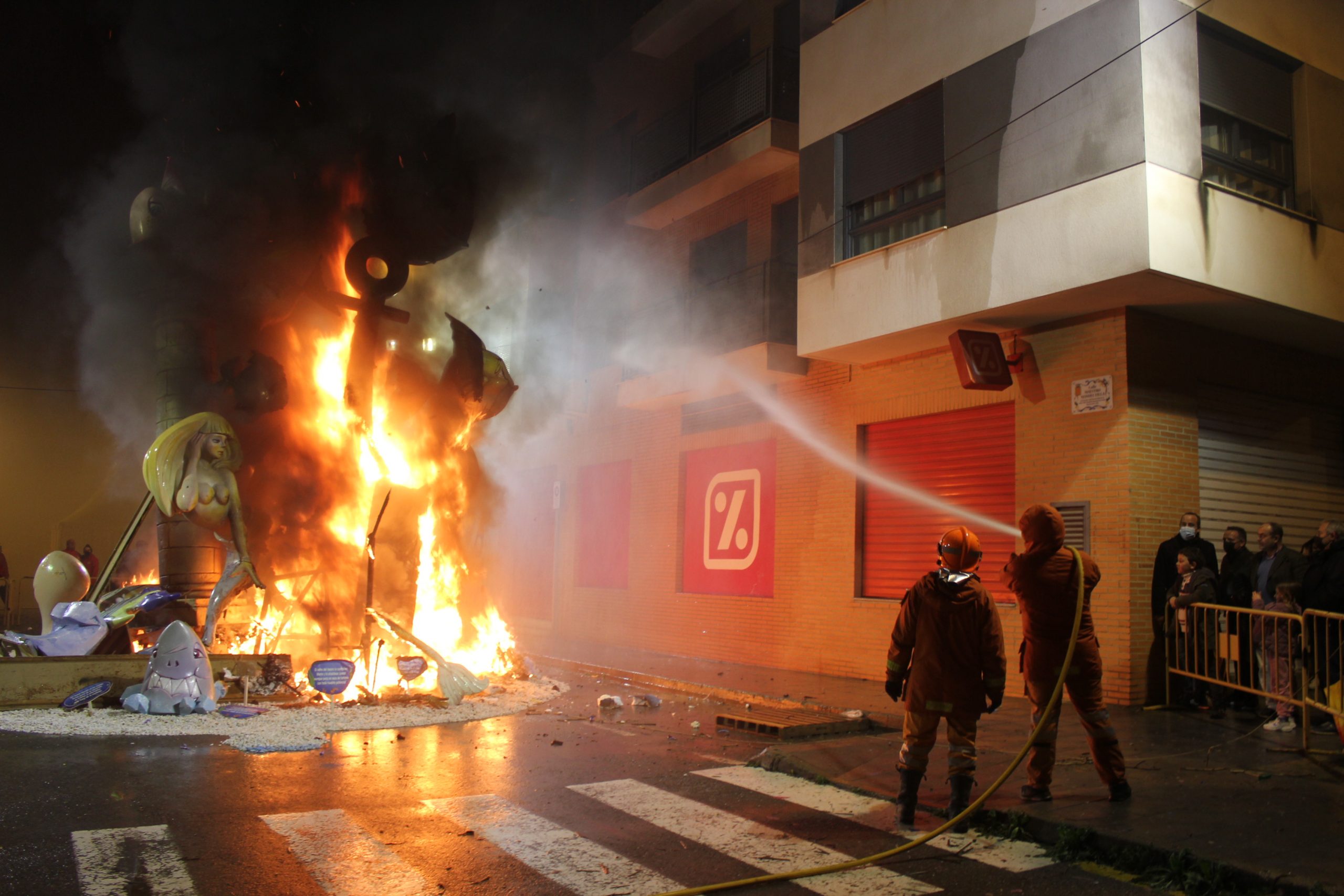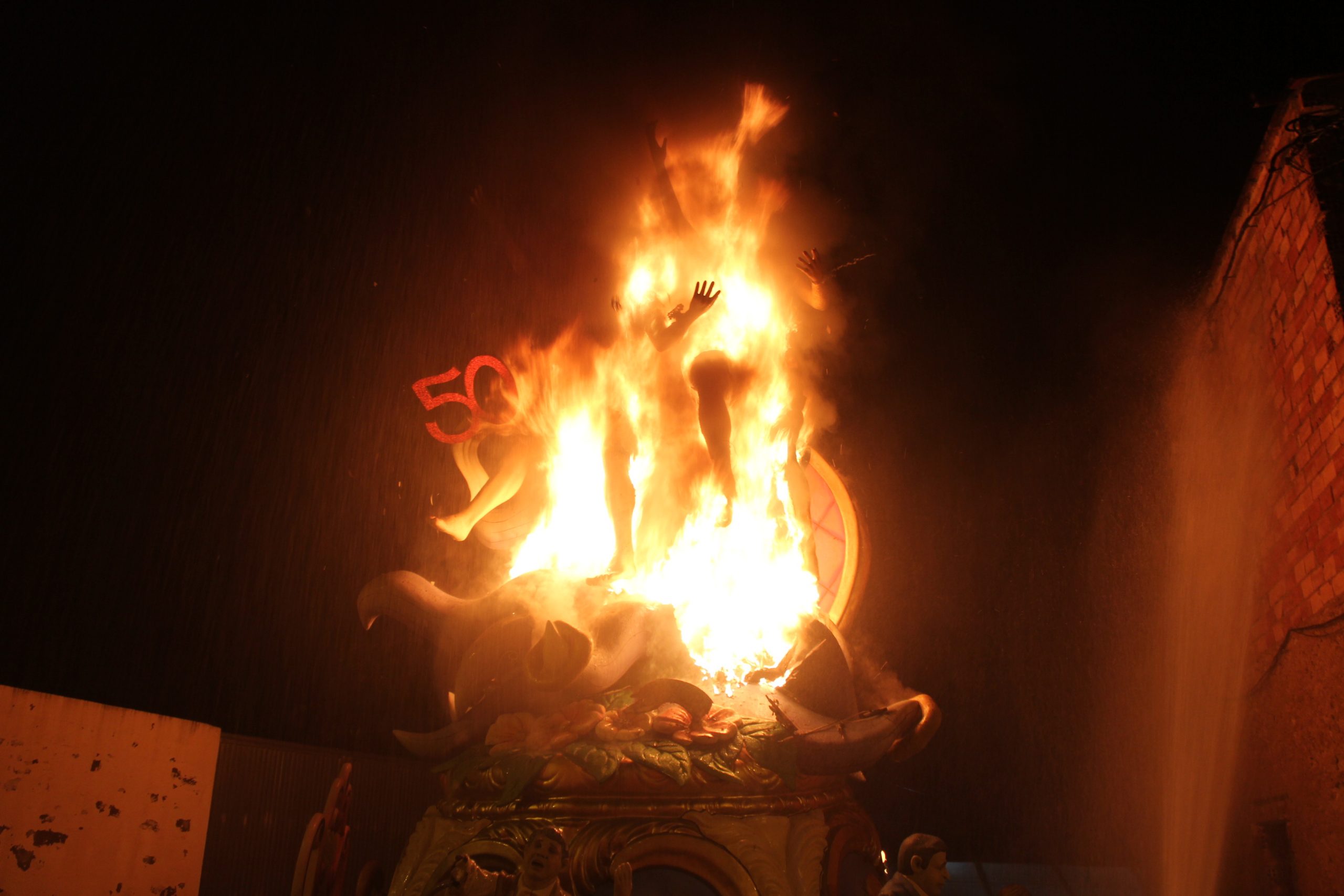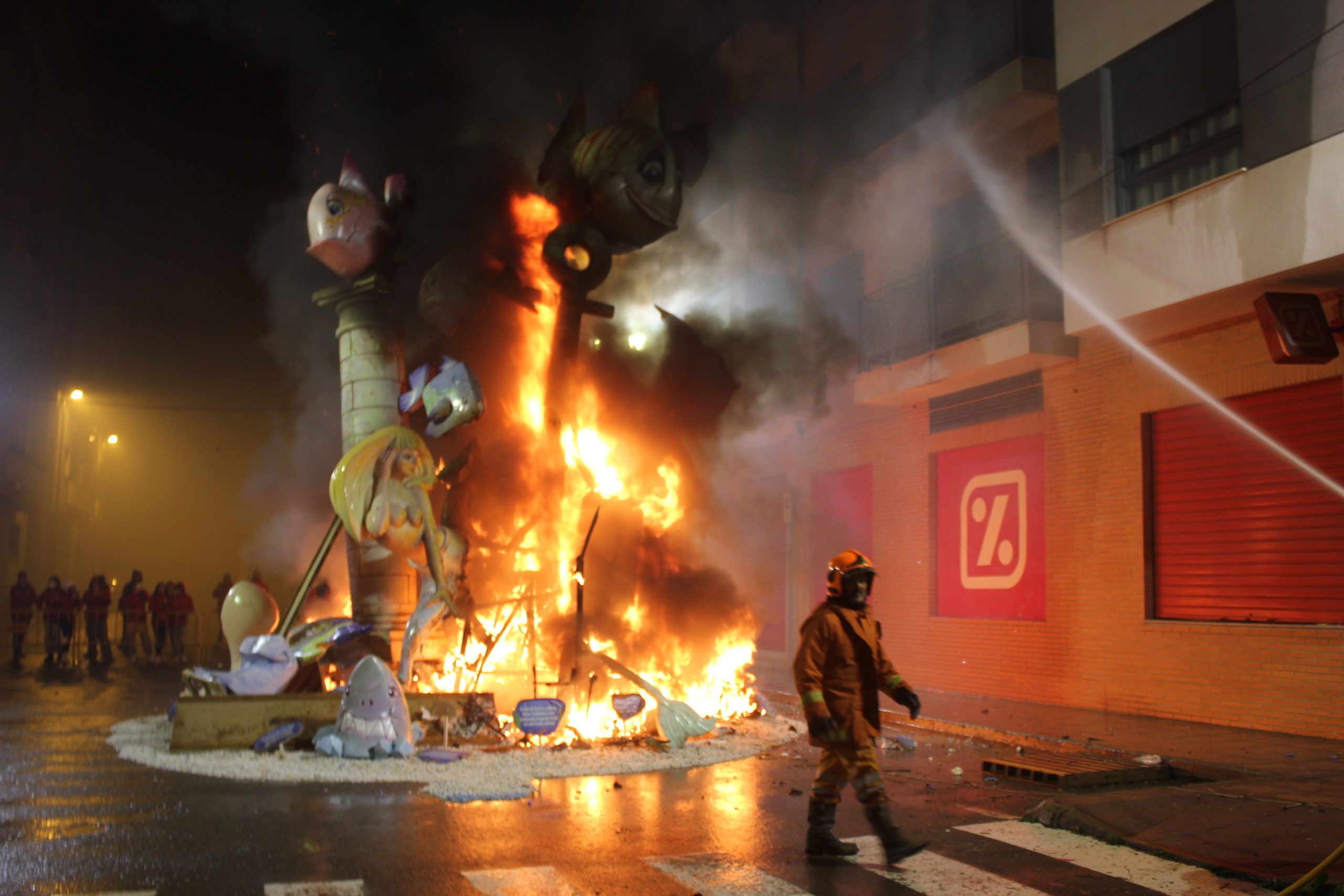 Ya por la noche le tocó el turno a las «cremás» de los distintos monumentos. Comenzaron a ser pasto de las llamas, como es habitual, los más pequeños, para más tarde, cerca de la medianoche dar paso a los grandes. Destacar la actuación de Protección Civil, siempre velando por la seguridad en este tipo de actos y porque todo se desarrolle sin ningún tipo de incodente.