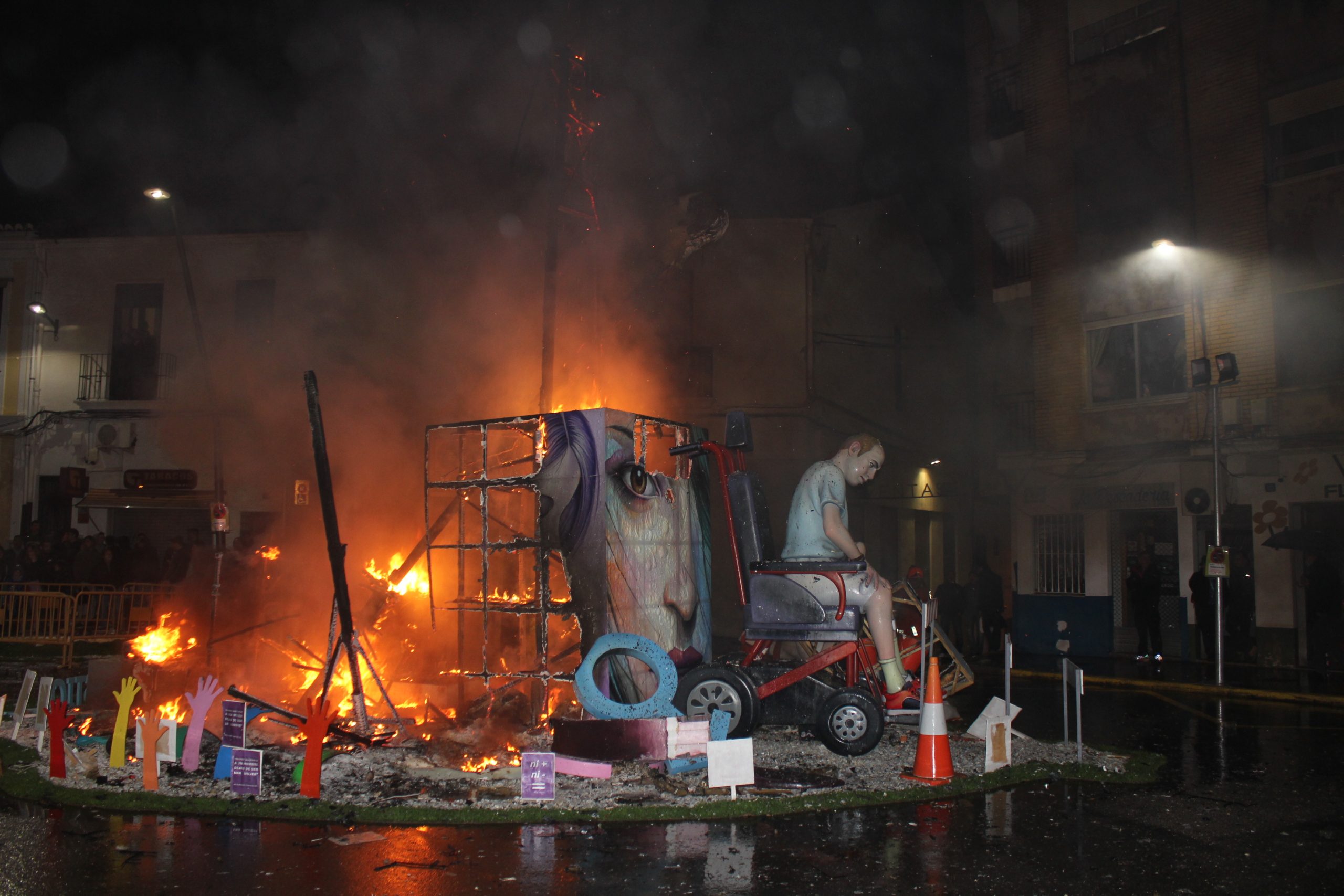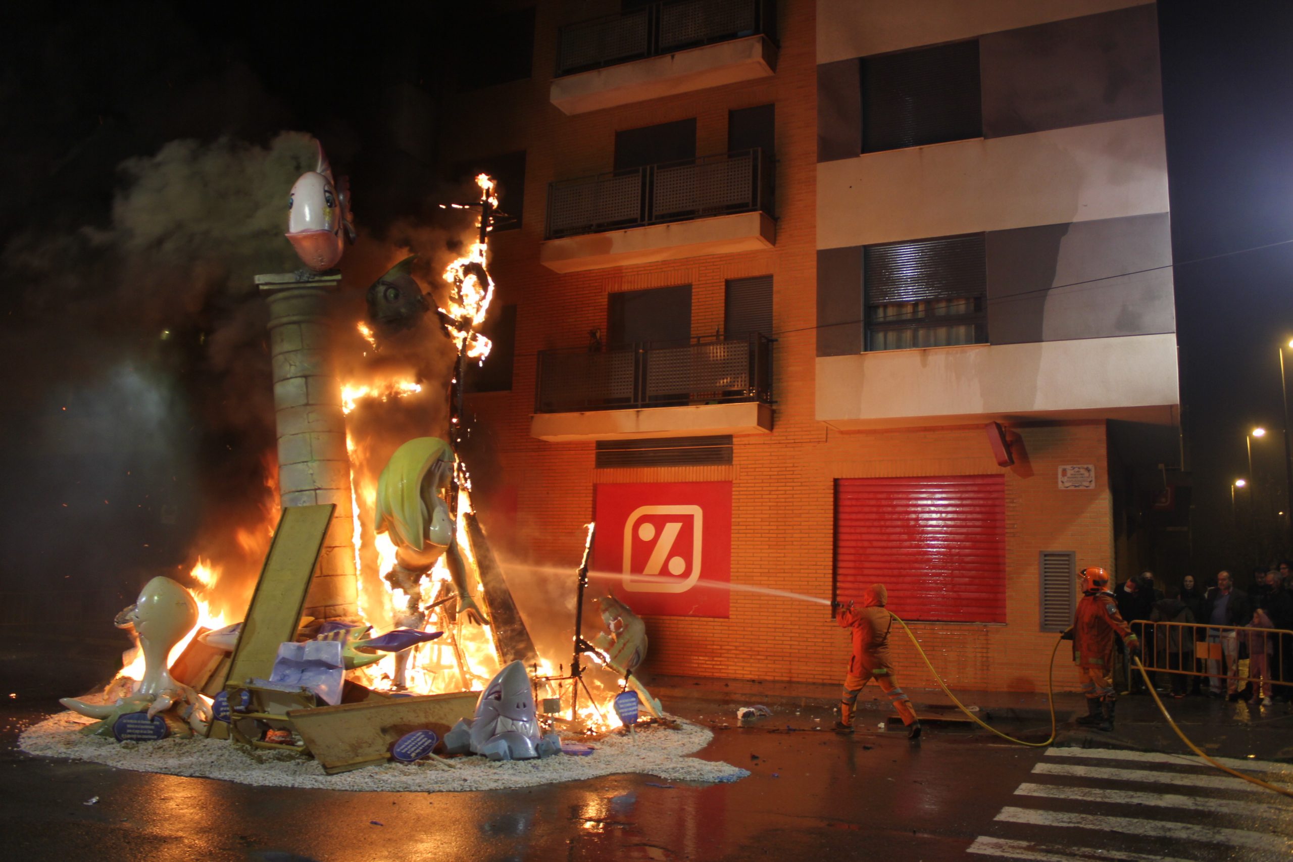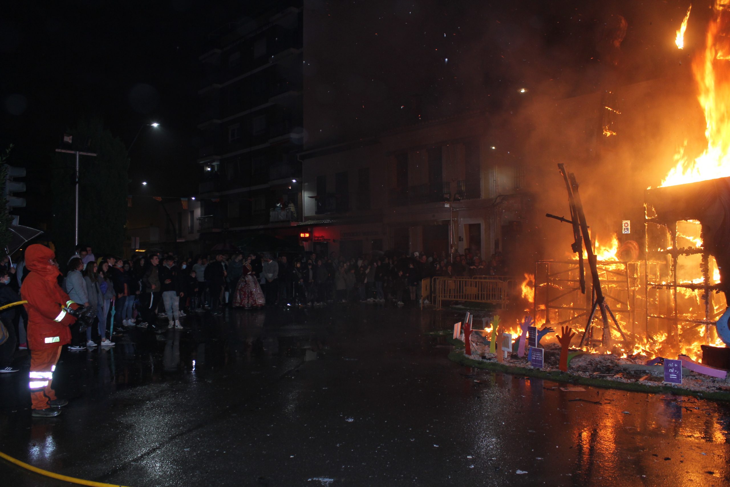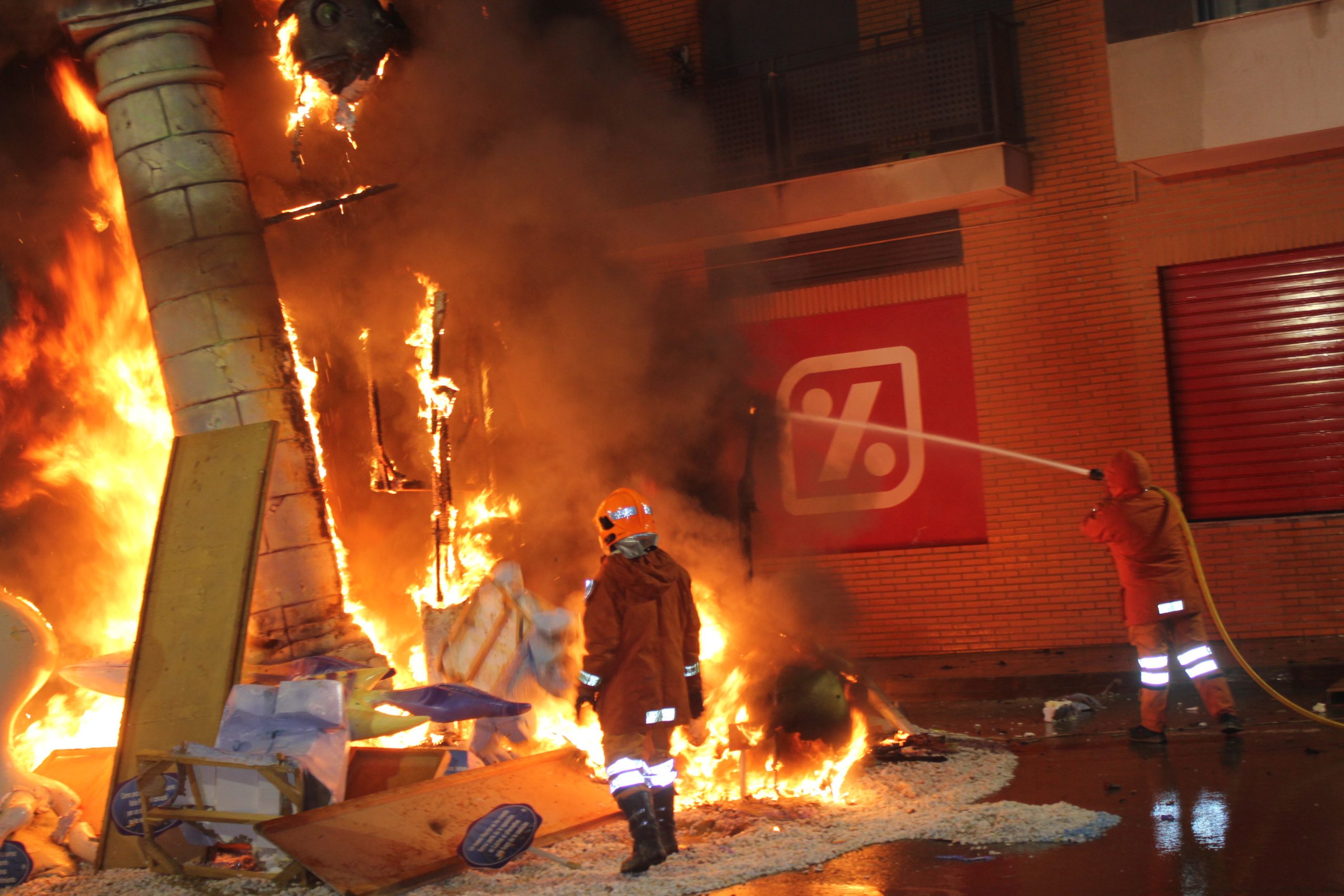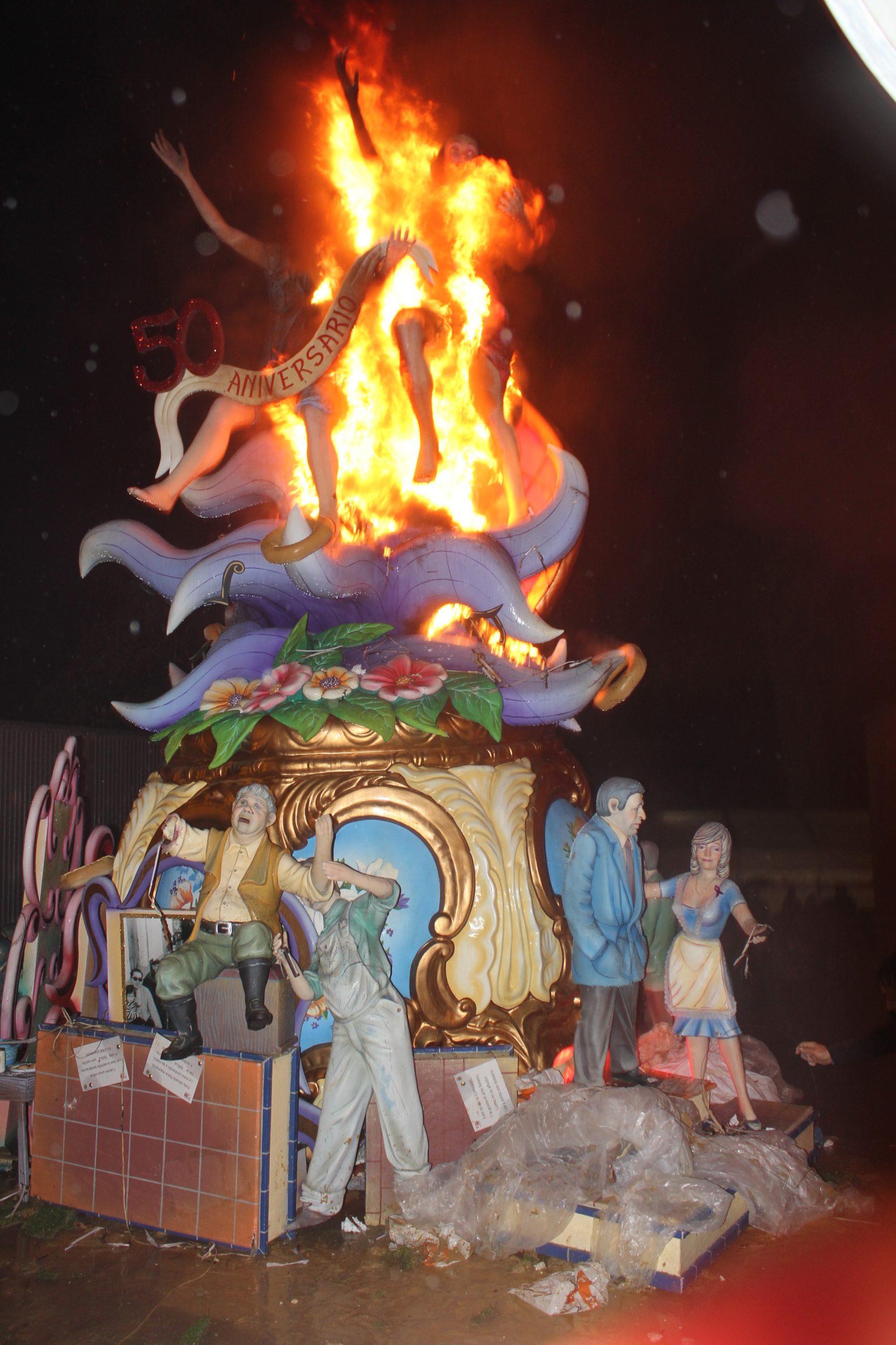 Ya por la noche le tocó el turno a las «cremás» de los distintos monumentos. Comenzaron a ser pasto de las llamas, como es habitual, los más pequeños, para más tarde, cerca de la medianoche dar paso a los grandes. Destacar la actuación de Protección Civil, siempre velando por la seguridad en este tipo de actos y porque todo se desarrolle sin ningún tipo de incodente.