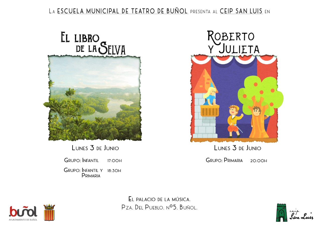 Redacción.- La Escuela Municipal de Teatro de Buñol ofrecerá dos representaciones de final de curso, este viernes y sábado en la Sala El Mercado de la localidad. Las actuaciones comenzarán a las 22:30h y el aforo es limitado a 80 personas. Los interesados e interesadas en acudir deben reservar su plaza en el teléfono: 606305619.