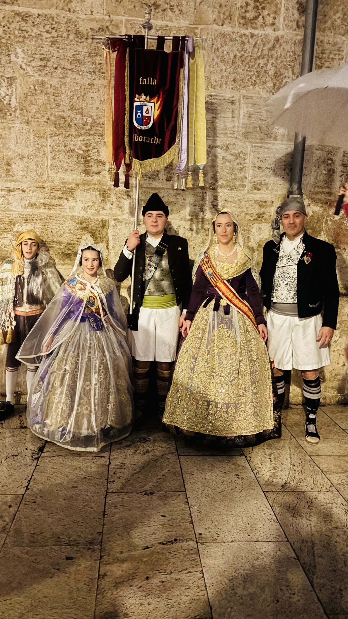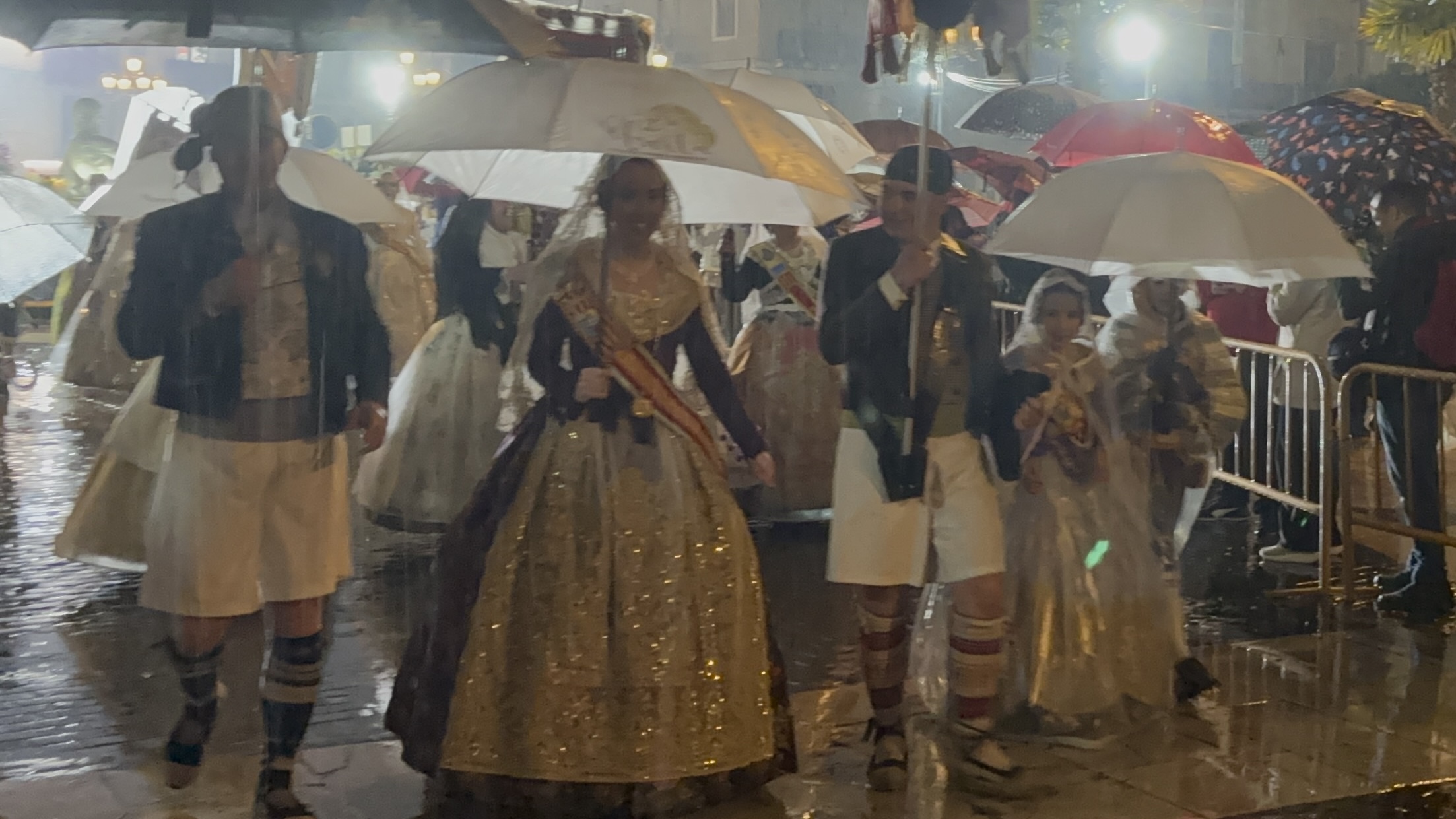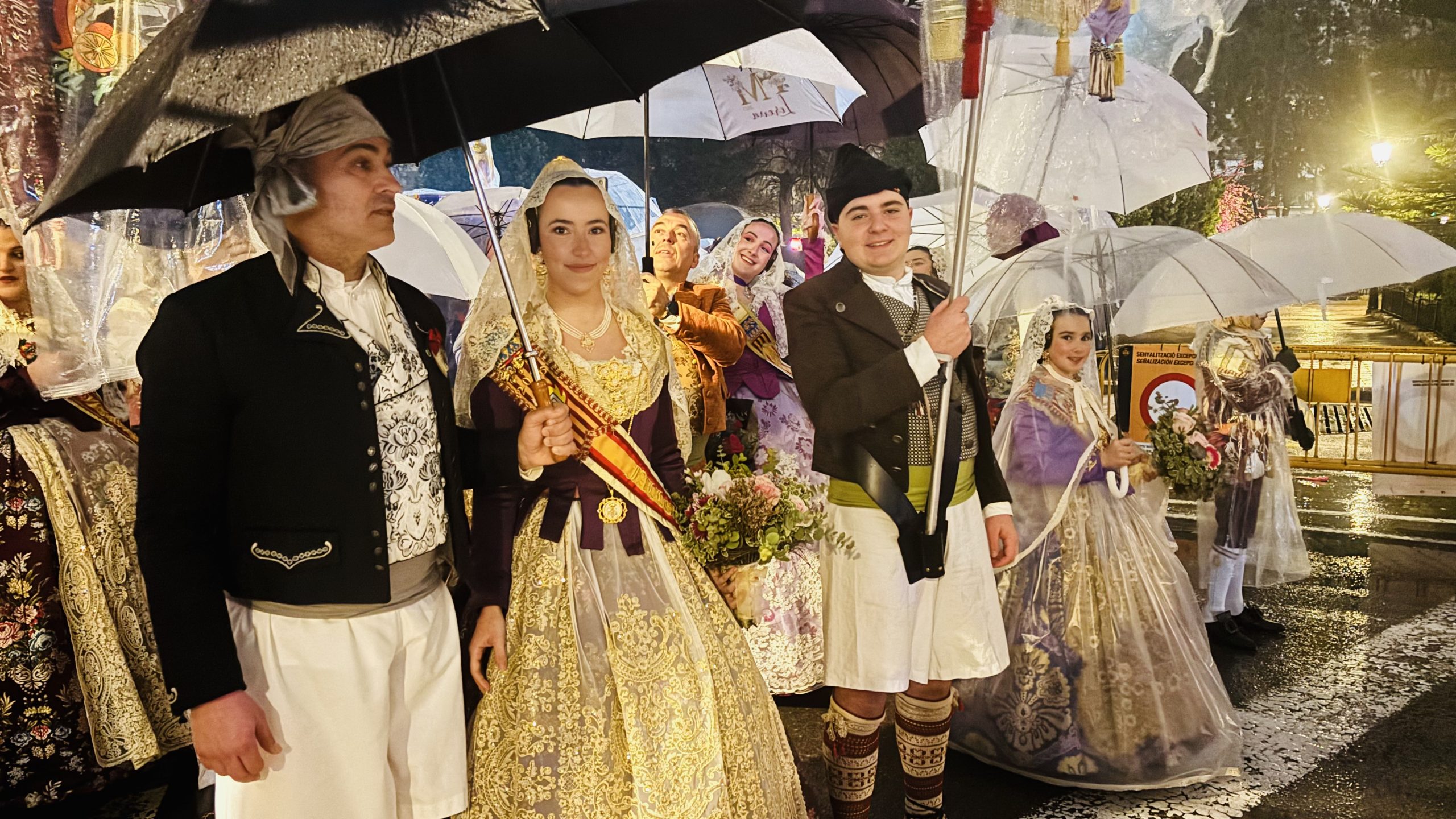 Uno de los momentos más conmovedores de la jornada fue cuando la Falla de Alborache fue anunciada y, acompañados por la lluvia, entraron en la plaza frente a la Virgen, un instante que muchos definieron como “mágico” y lleno de emoción. Los falleros de Macastre, igualmente, no dejaron que las inclemencias del tiempo apagaran su espíritu festivo y compartieron esa emoción con sus compañeros de Alborache, mostrando la solidaridad que caracteriza a las comisiones falleras.