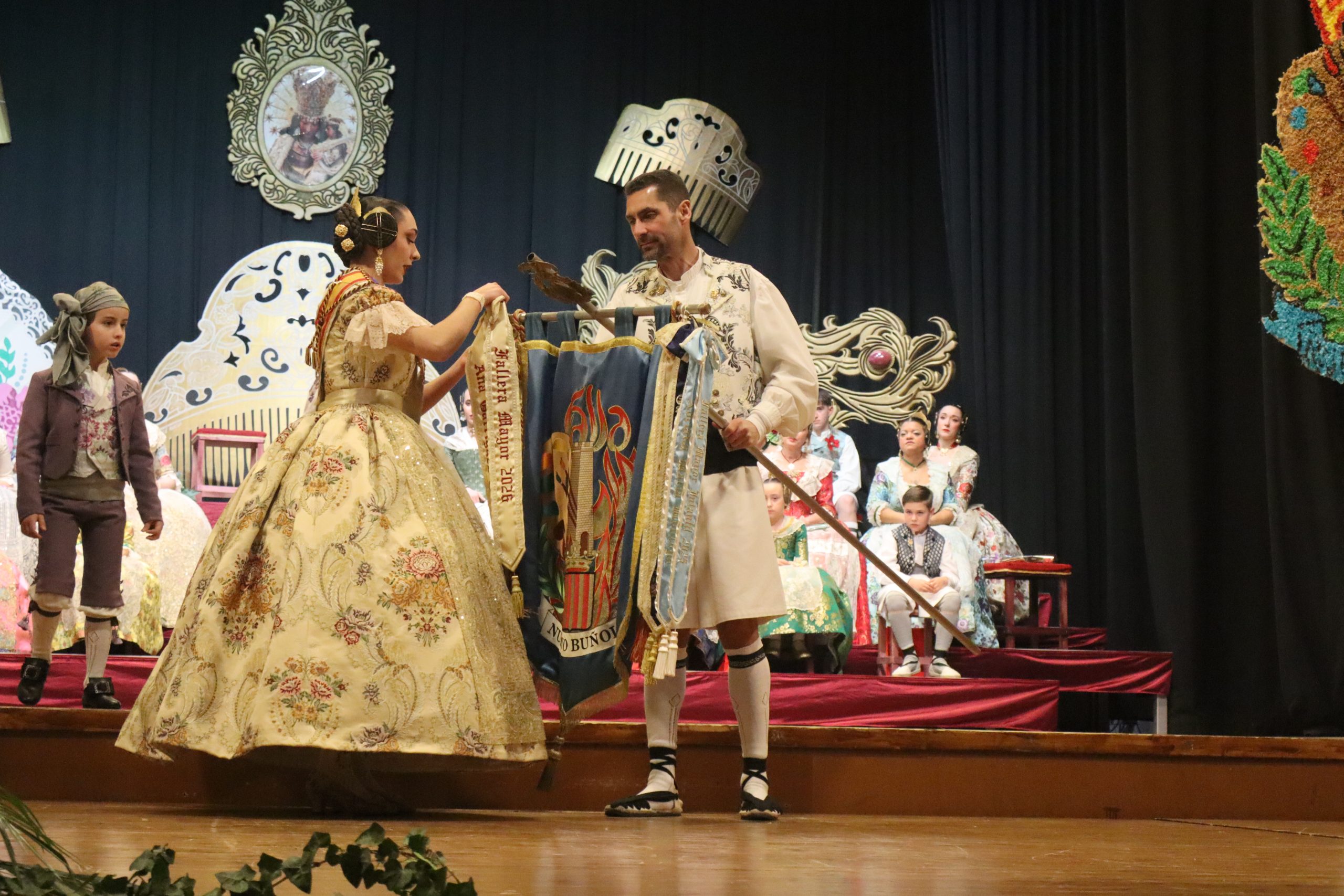 El acto supuso la proclamación oficial de Ana Garrigues Ginés como Fallera Mayor y de Paula Azorín Sánchez como Fallera Mayor Infantil, quienes tomaron el relevo de Paula Ramón Martínez y Adriana Maciá Montoya. Un momento especialmente emotivo que sirvió para cerrar una etapa y dar comienzo a un nuevo ejercicio fallero lleno de ilusión, responsabilidad y compromiso con la fiesta.