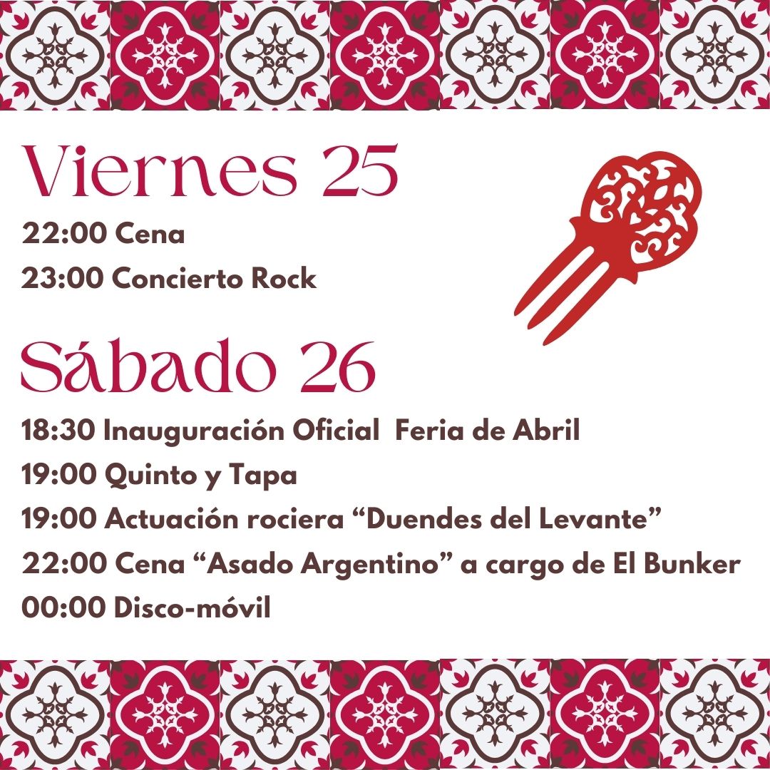 Redacción.- La Falla Reyes Católicos de Buñol organiza un año más su ya tradicional Feria de Abril en el Paseo de San Luis durante todo el fin de semana del 25 al 27. Aquí os adjuntamos toda la programación: