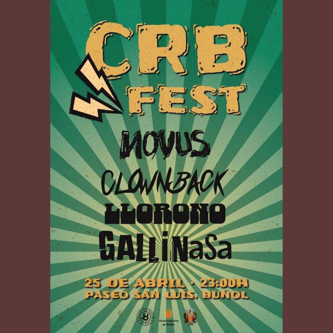 23h Concierto de Rock. Se retomará el CRB Fest con los grupos: Novus, Clownback, Llorono y Gallinasa