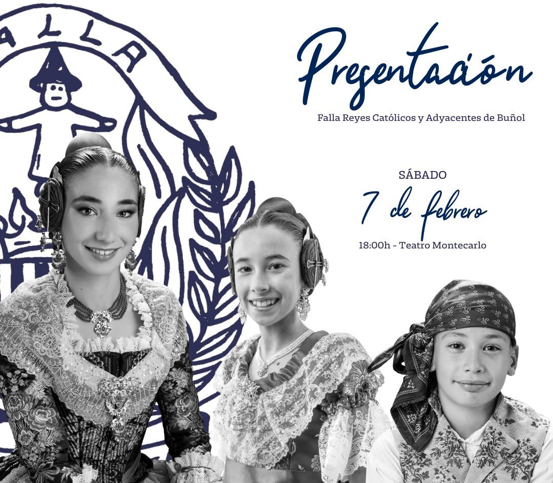 Redacción.- La Falla Reyes Católicos de Buñol celebrará este sábado, a partir de las 18:30 horas, en el Teatro Montecarlo, el acto de presentación de sus máximas representantes para el ejercicio fallero. Se trata de la segunda presentación del año en la localidad, tras la realizada recientemente por la Falla Nuevo Buñol.