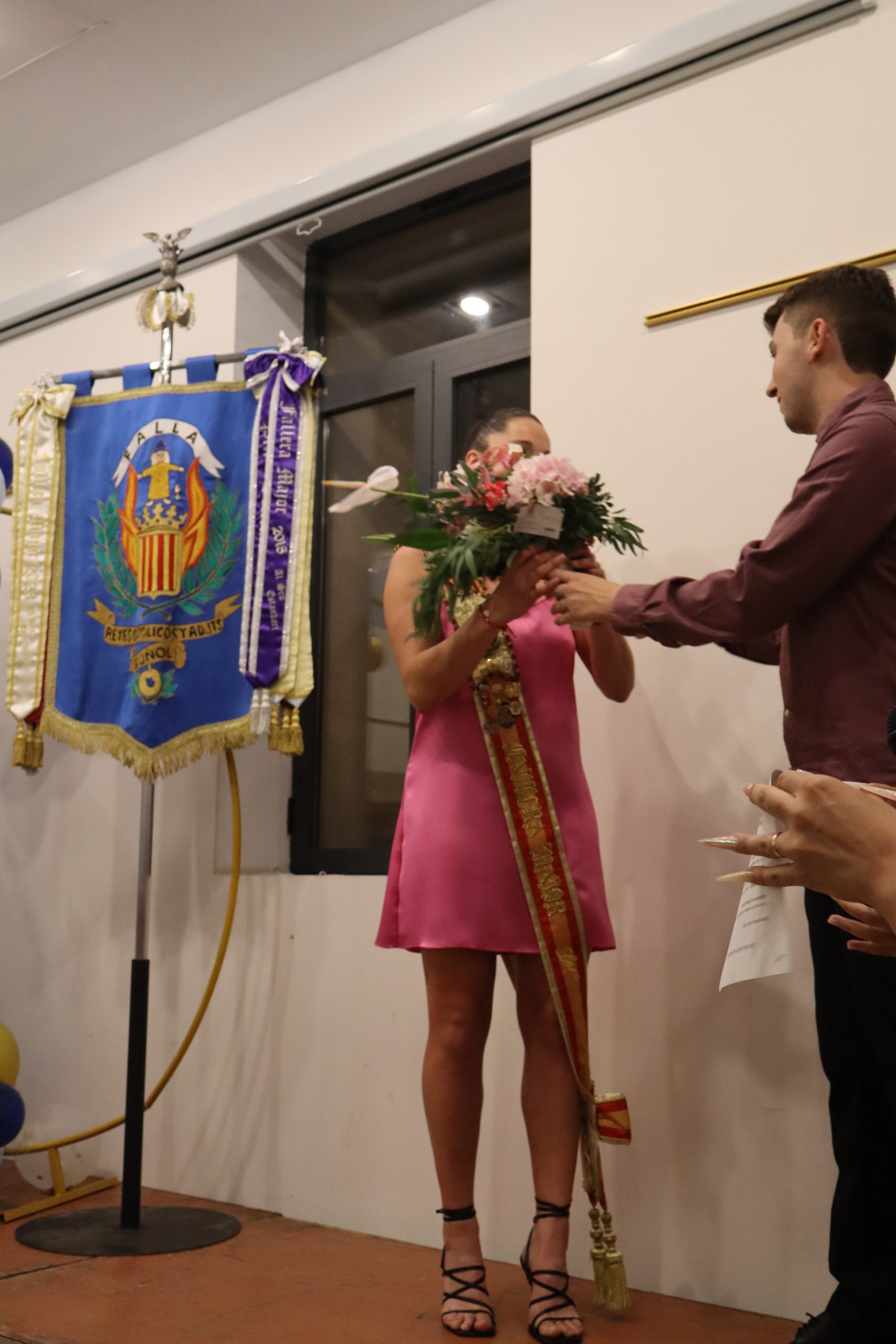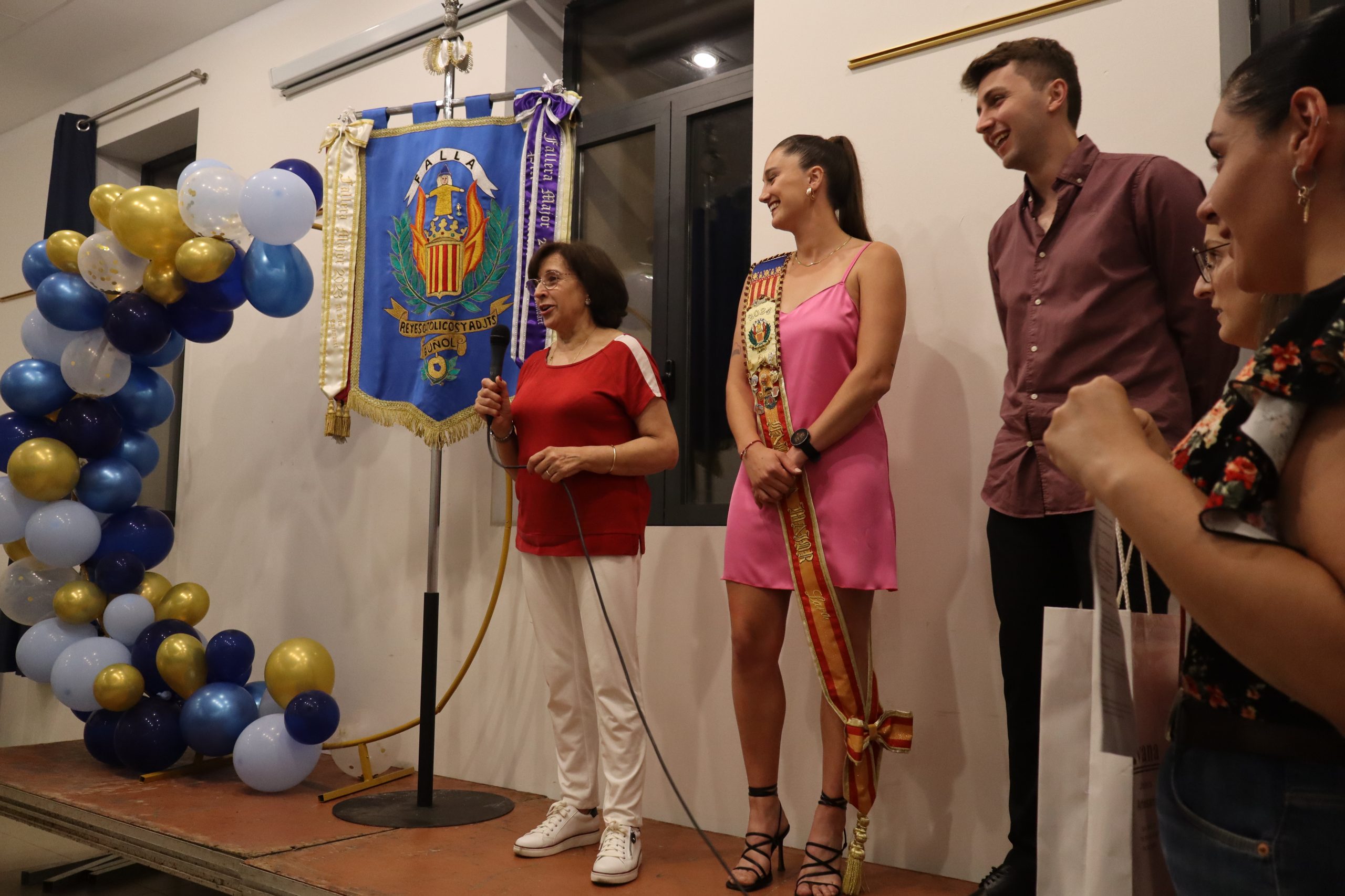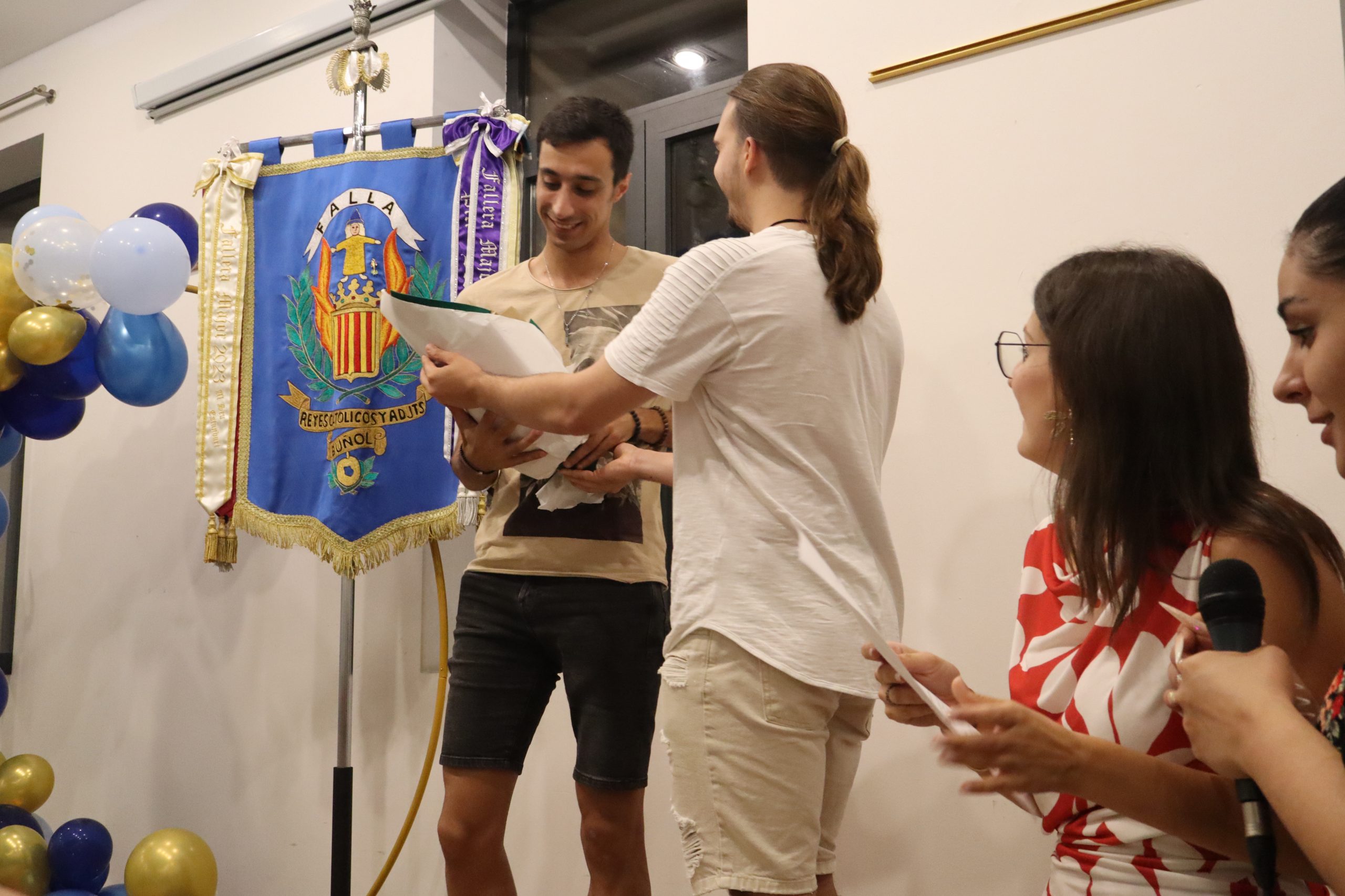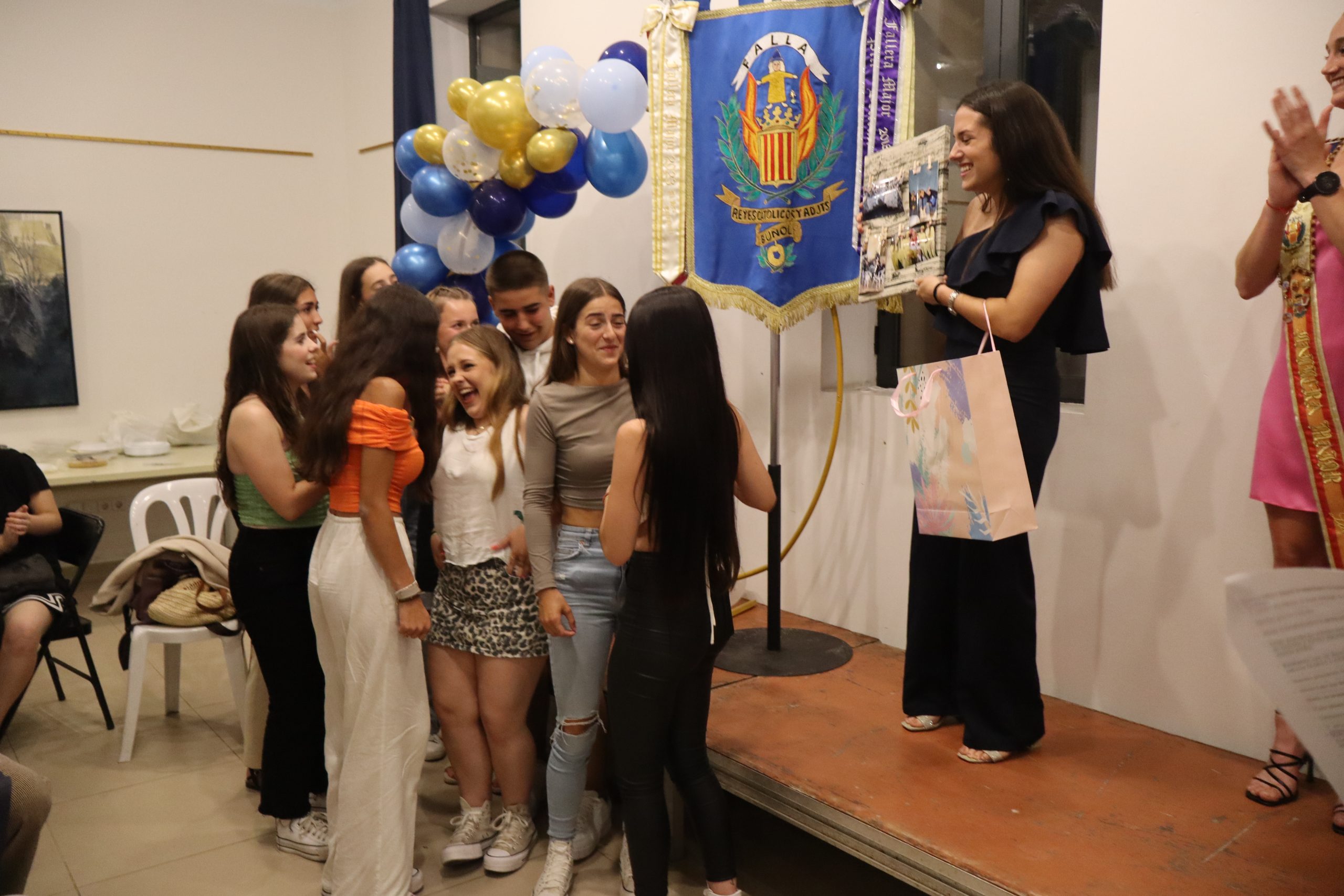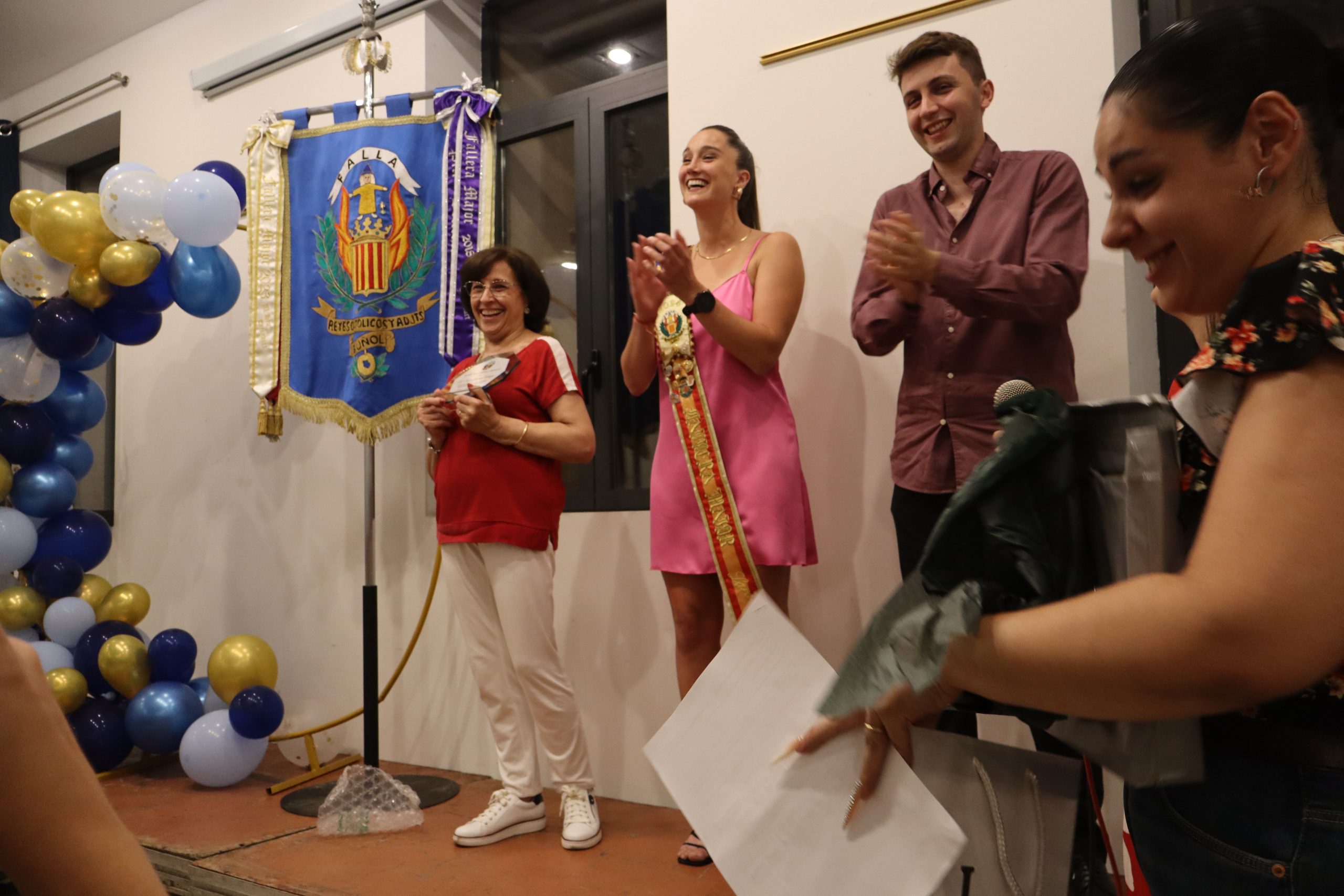 Ávaro aprovechó también para homenajear a la que ha sido hasta ahora la presidenta de la Falla, Mª Eugenia González Rodríguez, por su magnífica labor y trabajo a lo largo de estos años en la comisión. Además, se anunció quién va a ser la representante en la Corte del Rey de las fiestas de Buñol, Claudia Lázaro Álvarez, a quien se le le impulso la banda acredita la actual fallera. Finalmente, llegó lo más esperado, la proclamación de la Fallera Myor del año 2025, que será Marta Carrascosa Máñez. Estuvo arropada por su falla, por su familia y por sus amigas. El acto terminó con las palabras del presidente de la comisión agradeciendo a todos los miembros de la falla, «a los que están, como a los que ya no están presentes su trabajo para que esta comisión sea tan grande y tan familiar. Pidió que los miembros de la comisión sigan haciendo falla«.