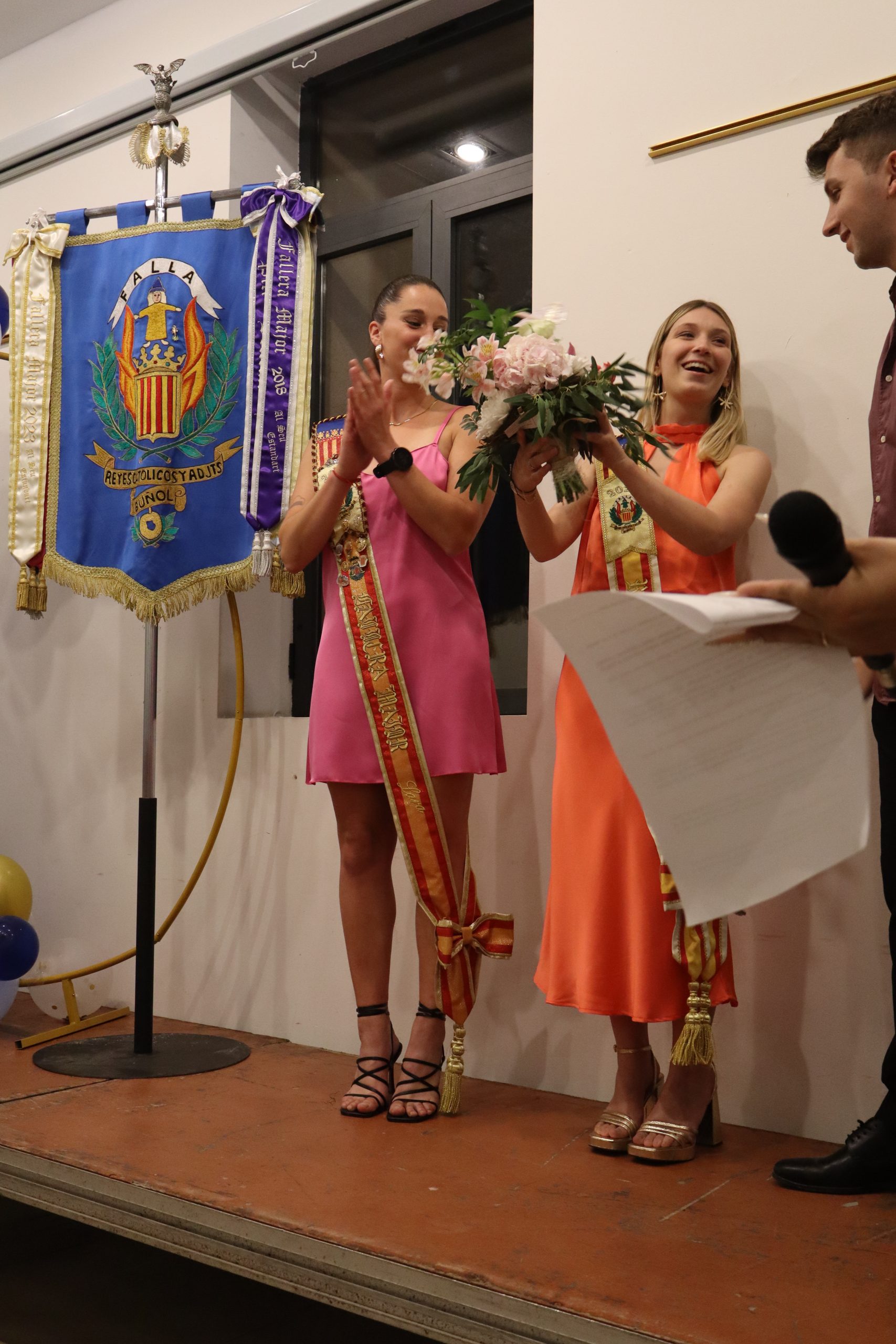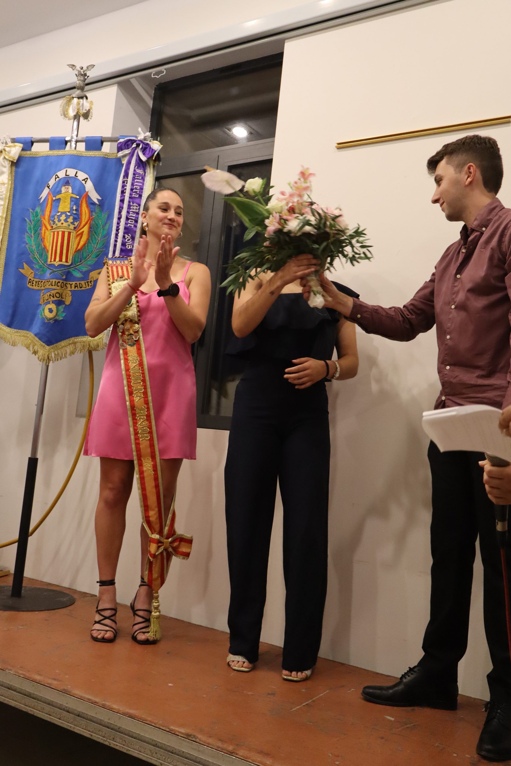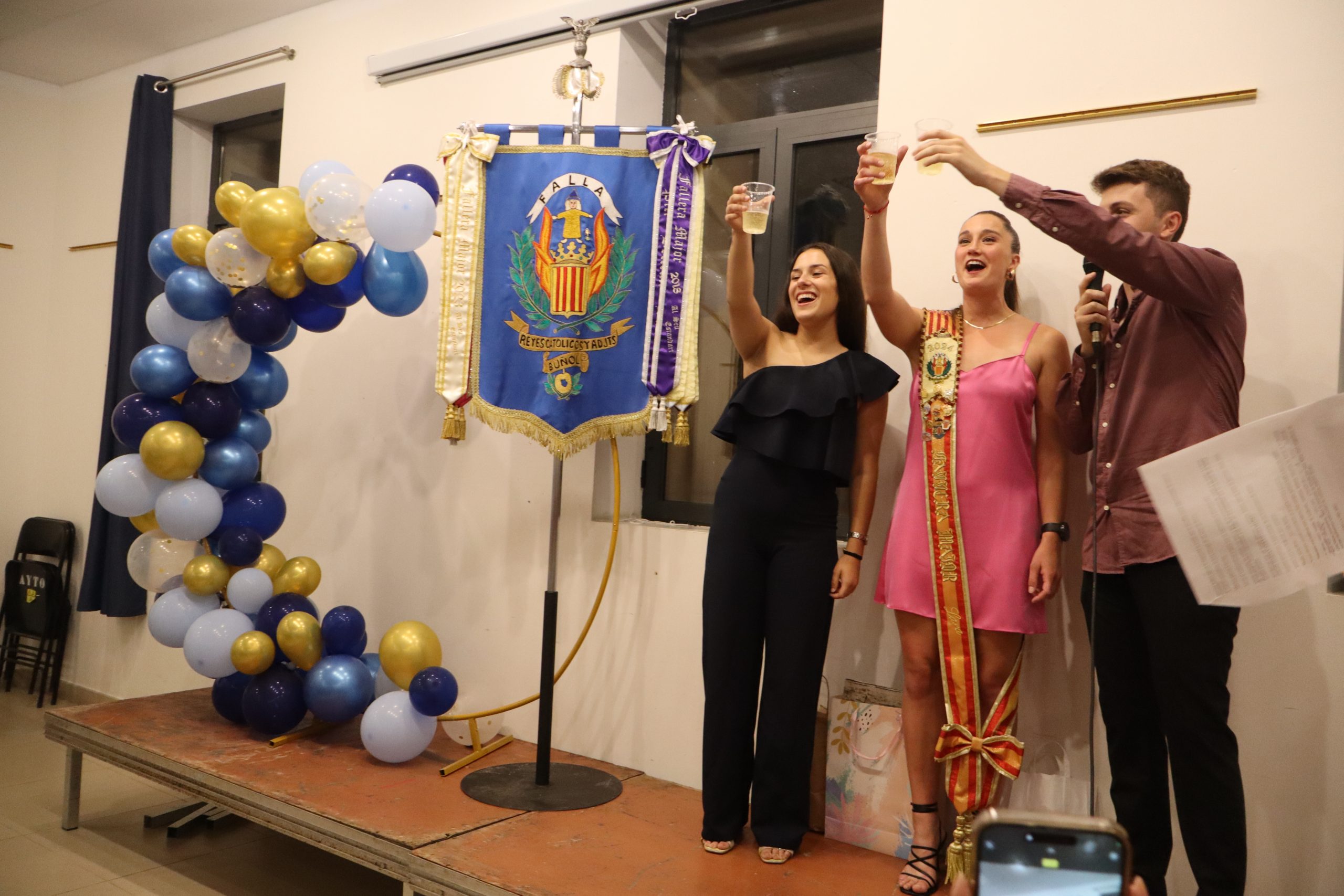 David Avilés.- El pasado viernes la sala Raga de Buñol se vistió de gala para celebrar la proclamación de la Fallera Mayor para el ejercicio 2025 de la falla Reyes Católicos y adyacentes. El acto comenzó con una cena, que dio paso a la propia proclamación. Salió ante los presentes, la actual Fallera Mayor, Lara Carrascosa Agustina, junto al nuevo presidente de la comisión Álvaro Belda Sierra, que nombró al «carricochero mayor» de este año Manel Ferrús Navarro.