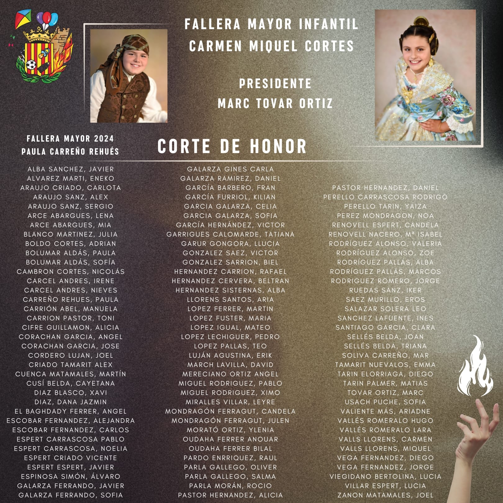 Las nuevas falleras estarán acompañadas por los presidentes de la comisión, Raúl Parla Villanueva y Marc Tovar Ortiz, quienes junto a los miembros de la comisión han trabajado intensamente para crear un escenario lleno de emoción y detalles, para que las protagonistas y sus acompañantes brillen en esta tarde-noche tan especial.