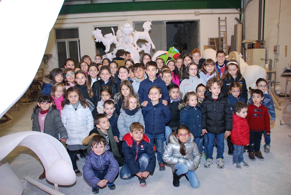 A continuación, el artista fallero Toni López les enseñó a todos el boceto de la falla infantil y les abrió las puertas de su taller, donde pudieron ver cómo avanza el proceso de la falla.