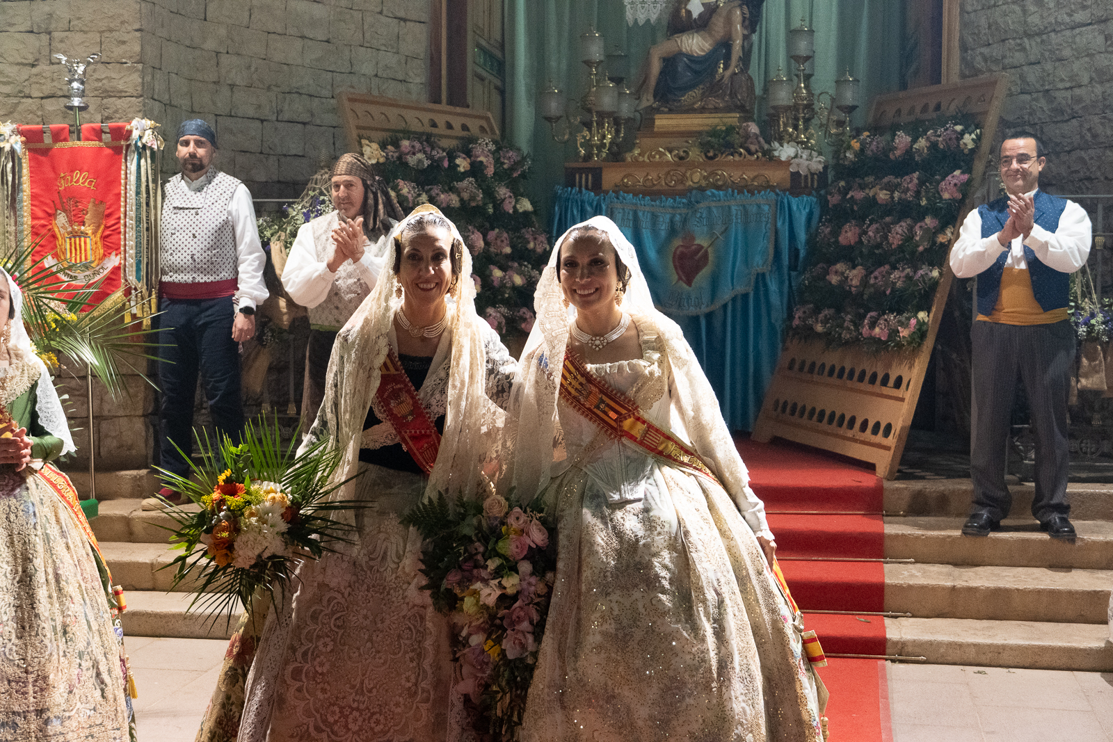 El acto culminó en la iglesia de la Virgen de los Dolores, donde tuvo lugar uno de los momentos más significativos de la jornada: la entrega de ramos a la Virgen de los Desamparados por parte de las falleras mayores. Este instante, cargado de simbolismo y emoción, puso el broche final a una ofrenda que volvió a evidenciar la devoción y el compromiso de la comisión con sus tradiciones.