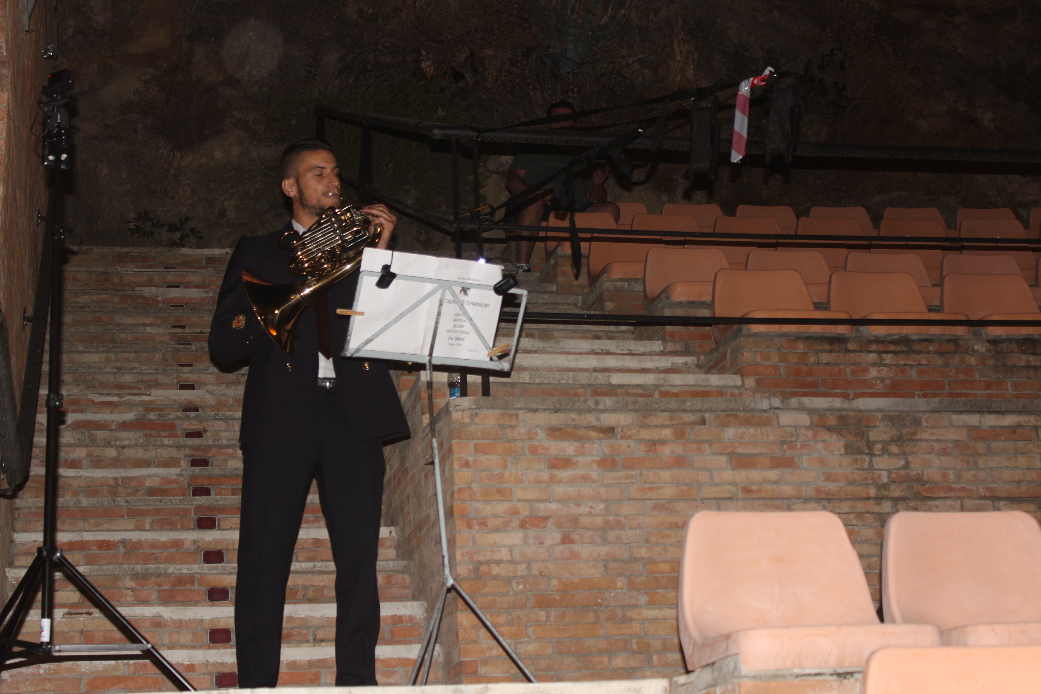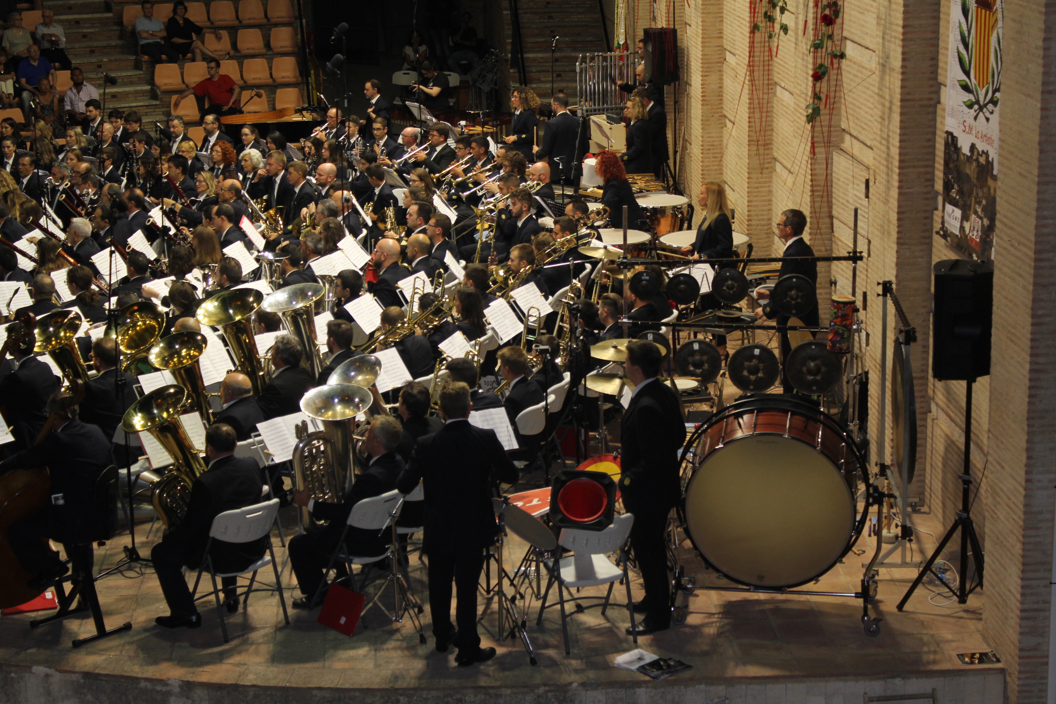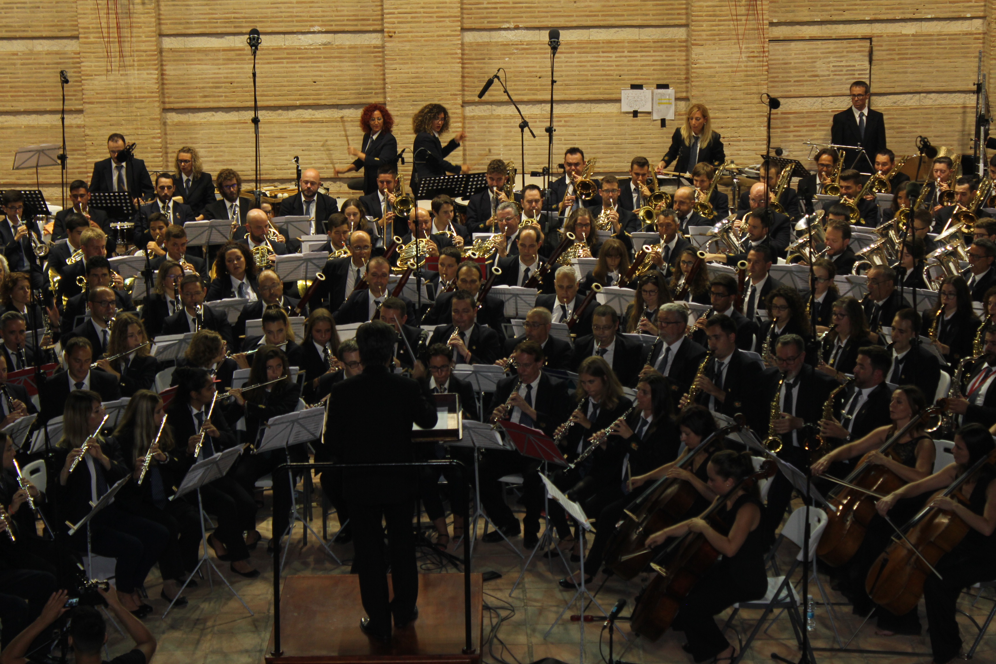 Tras media hora de cambio de escenario: turno para “Los Feos”. A la batuta el director valenciano, Salvador Sebastià. Y en el atril tres obras bajo un mismo título: “Grafítica”. Un programa lleno de arte, a la par que reivindicativo. Todo made in Comunidad Valenciana. “La Artística” arrancó con “Les Fàbriques” de Rafael Beltrán Moner, donde fue palpable la influencia de la Vila-real natal del compositor. Posteriormente, “La Artística” interpretó “BoDEGA” del propio Salvador Sebastià. Con esta pieza el público se transportó al lugar por antonomasia del vino: La Rioja. Fue un viaje desde su naturaleza y el misticismo de sus cuevas al proceso inverso, la uva como producto de la naturaleza que se transforma en la soledad y el silencio de las bodegas en vino.