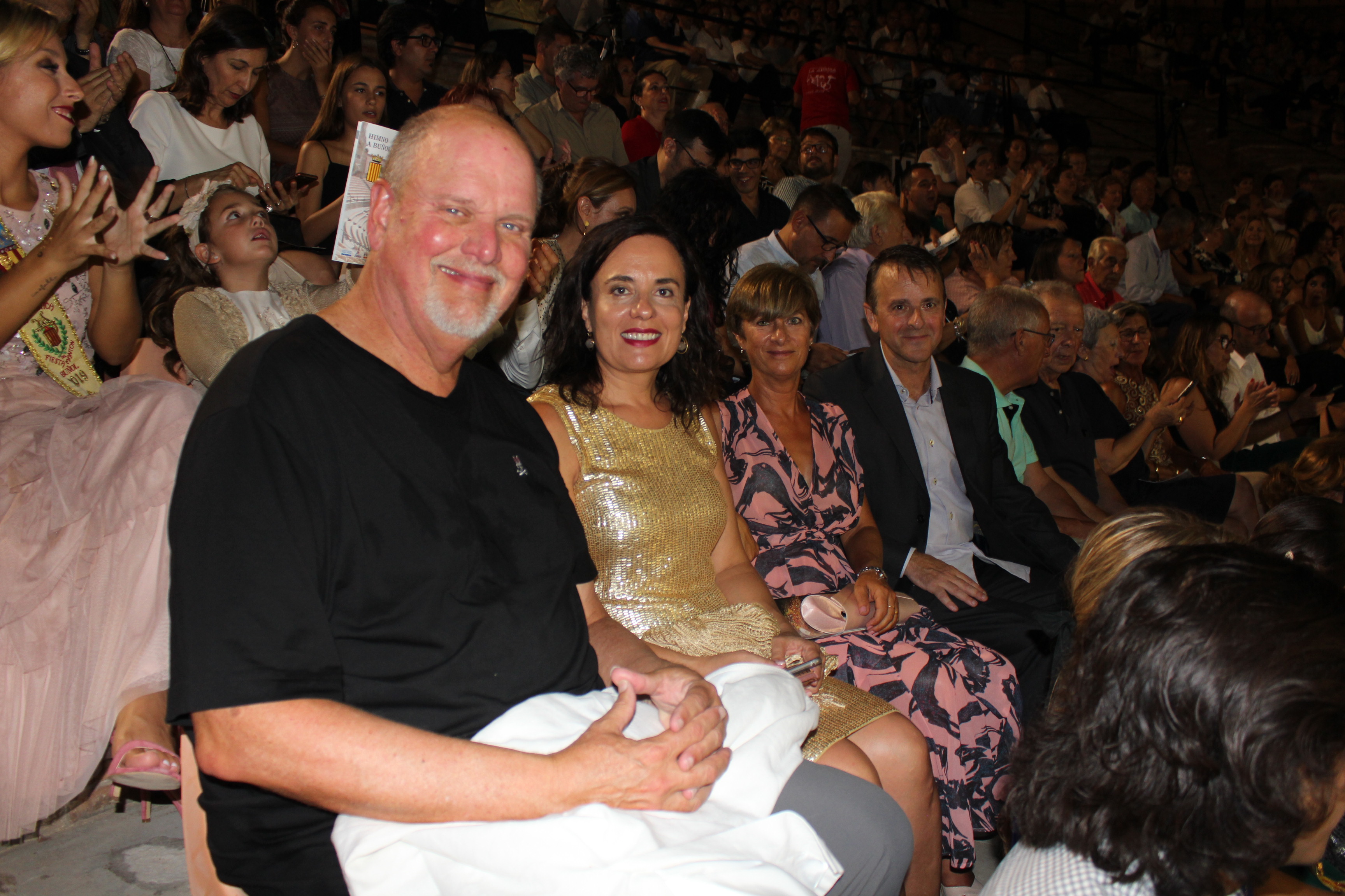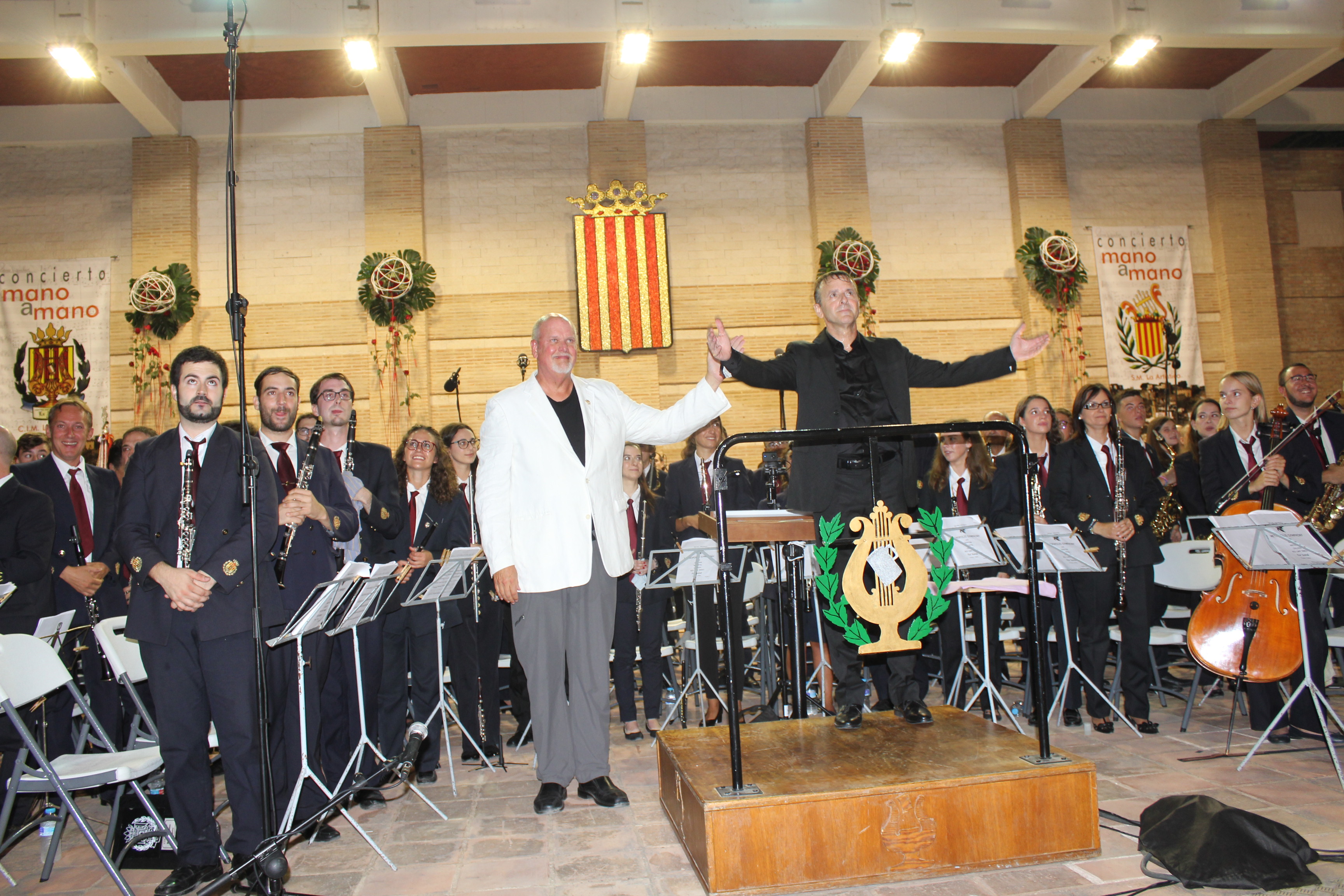 En lo referente a la música, el encargado de abrir fuego fue “El Litro” bajo la batuta de Pepe Tello, autor de la transcripción de “Metrópolis Symphony” del prestigioso compositor estadounidense Michael Daugherty, presente en el concierto. Además, el propio Daugherty estuvo viviendo los ensayos previos que la banda realizó y pudo comprobar de primera mano cómo se ha adaptado su composición de orquesta a banda. Tello con mano segura transportó al público, con los cinco movimientos de la obra, a la ciudad de uno de los superhéroes más icónicos de la historia: Superman. Con su capa roja el respetable se enfrentó al archienemigo de Superman, Lex Luthor. Vivió cómo fue la destrucción del planeta Krypton. Y se enamoró de la belleza de Lois Lane. Una sinfonía con momentos trepidantes, con otros más pausados, hasta llegar al desenlace plagado de ritmo y de fuerza, que hizo levantarse de sus asientos a los cientos de personas que acudieron en la noche del sábado al auditorio. Con un nudo en la garganta bajó hasta el escenario Daugherty, al que José Tello le agradeció su colaboración y compromiso con la sociedad y con la música.