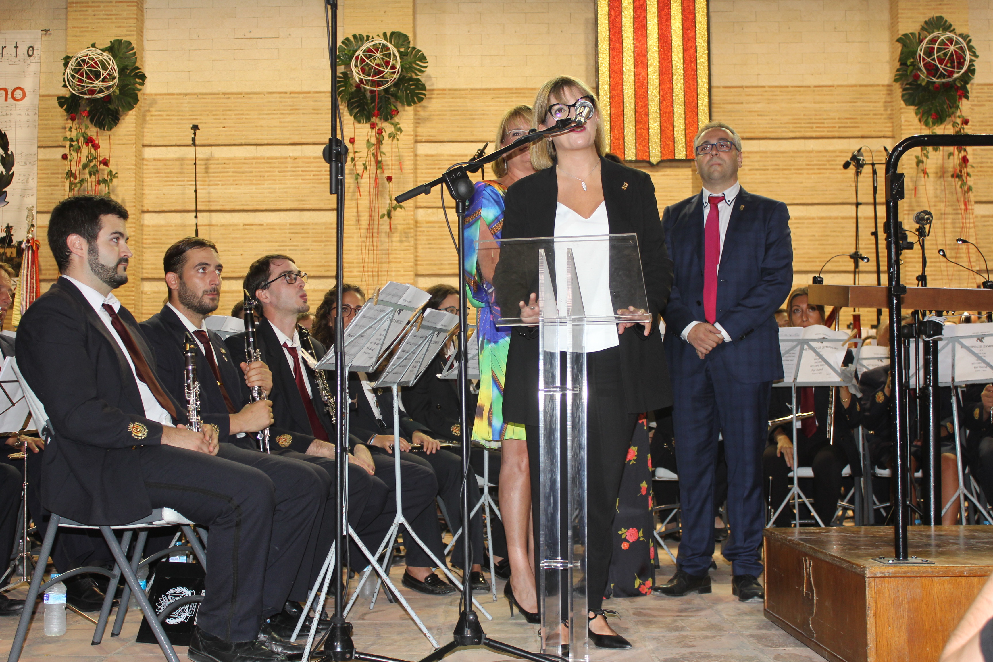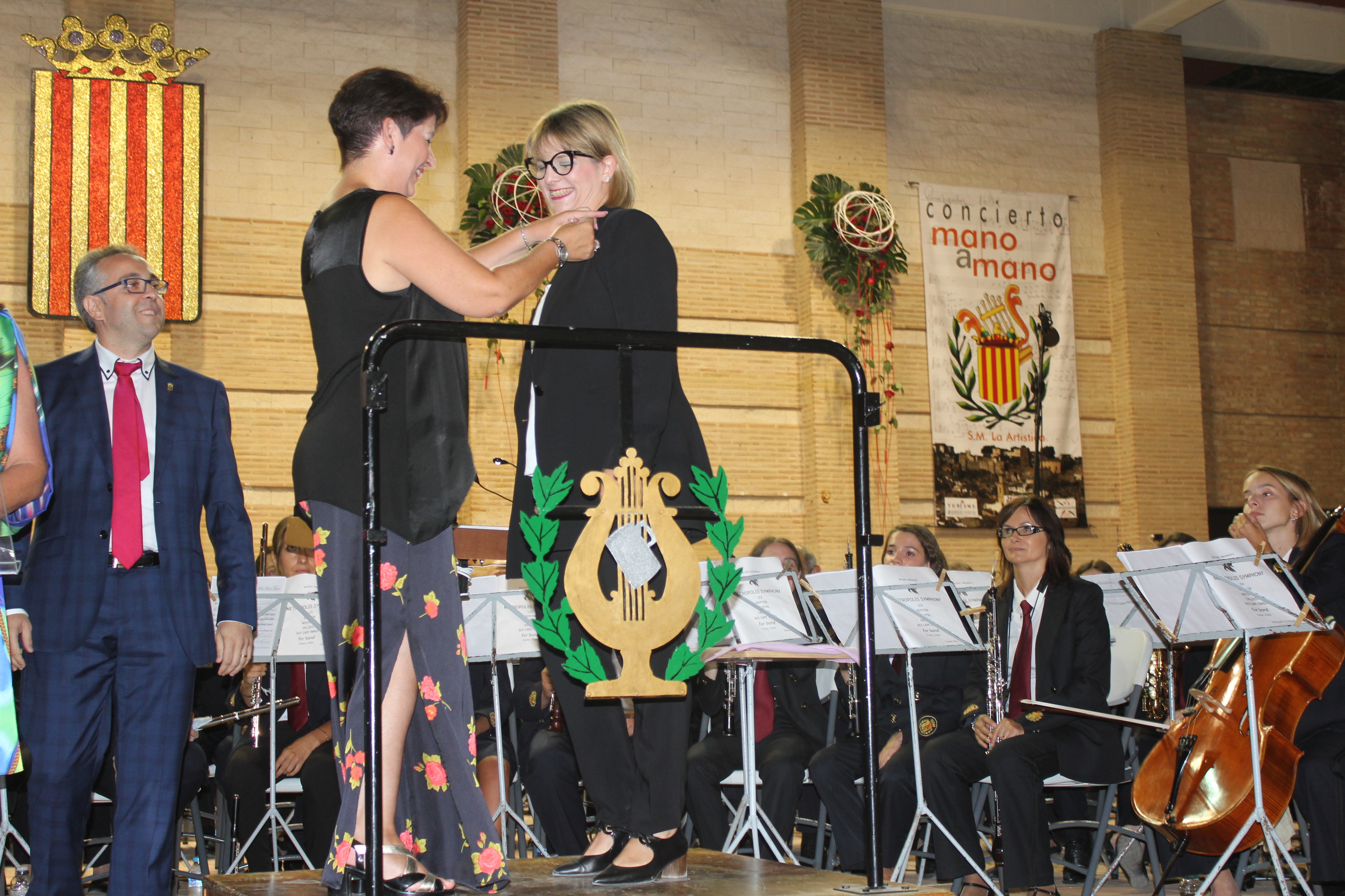 Antes de que comenzara la música, la periodista Silvia Soria -encargada de hacer de maestra de ceremonias- llamó al escenario a la alcaldesa de Buñol, Juncal Carrascosa y al edil de Cultura, Juan Luis Pallás. Posteriormente bajó por las escaleras del auditorio la presidenta de Honor de este año, Natalia Montañés, a la que se le impuso la insignia de Buñol por ser la embajadora este año del concierto. La directora se dirigió emocionada al público dando las gracias “por el honor que ha supuesto poder representar a un concierto de este calibre, donde sin duda, la música siempre gana”.