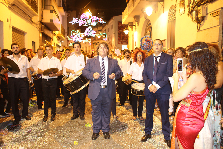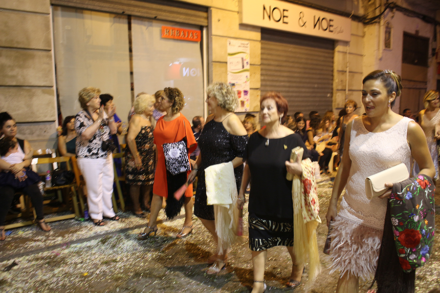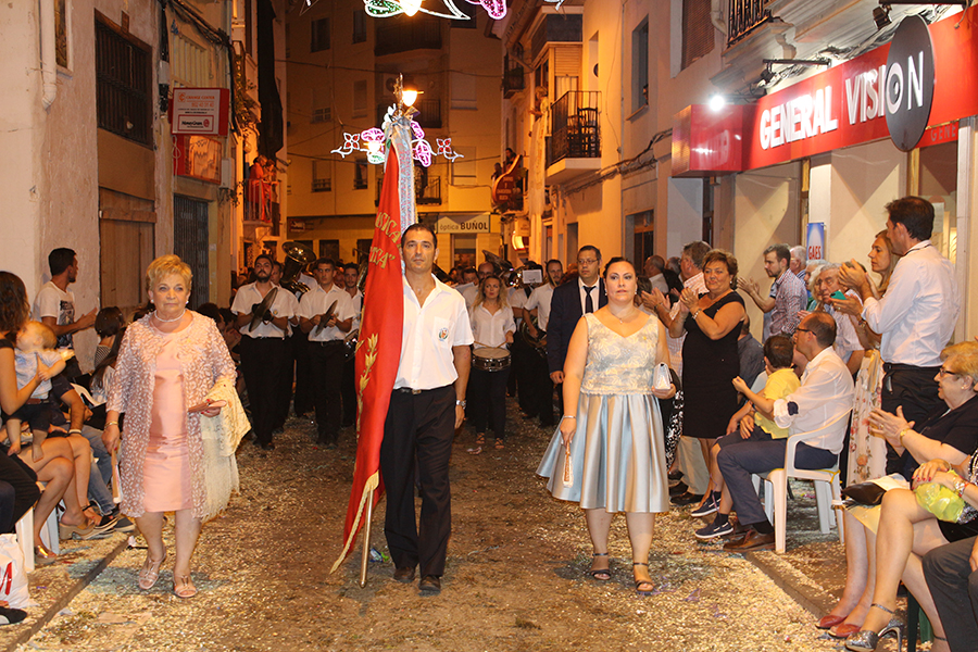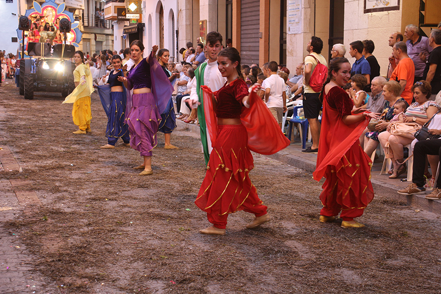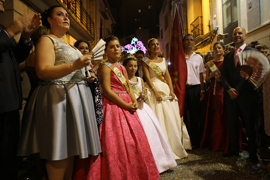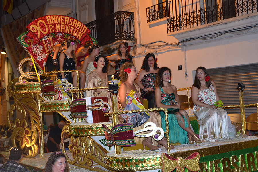 Este domingo 27 de agosto tuvo lugar el día grande de la S.M. La Artística, la Fiesta del Mantón, que este año cumple además su 90 aniversario. Tras la ofrenda de flores y frutos de la mañana, por la tarde tuvo lugar la Gran Cabalgata del Mantón, concluyendo con una emocionante representación del himno de Los Feos y una espectacular traca de colores. Las reinas, Srta. Irene Sierra Sáez y niña Valeria Fernández Espert, acompañadas de sus cortes de honor y de la representante Srta. Nuria García Lambíes, además de la banda de música La Artística, fueron las protagonistas. Os dejamos una extensa galería de imágenes.