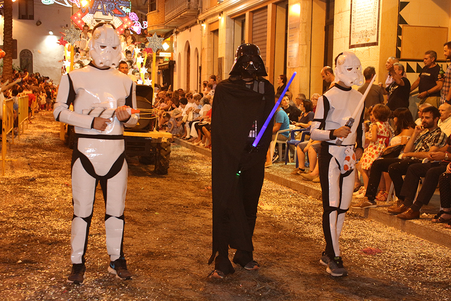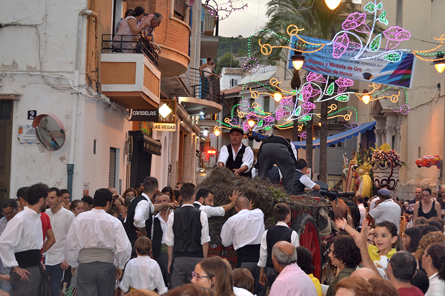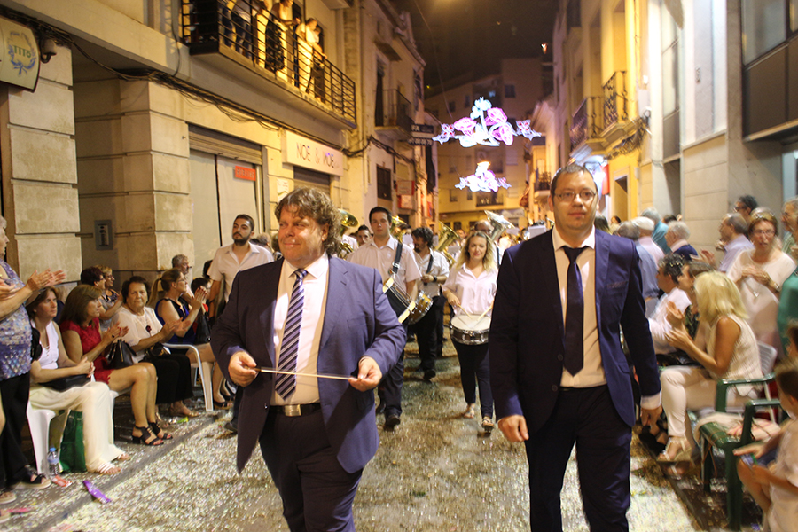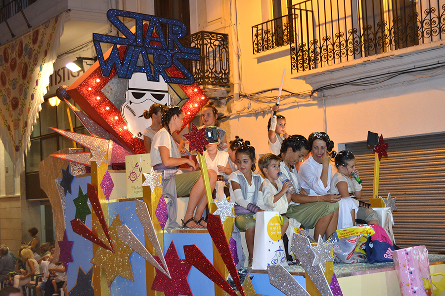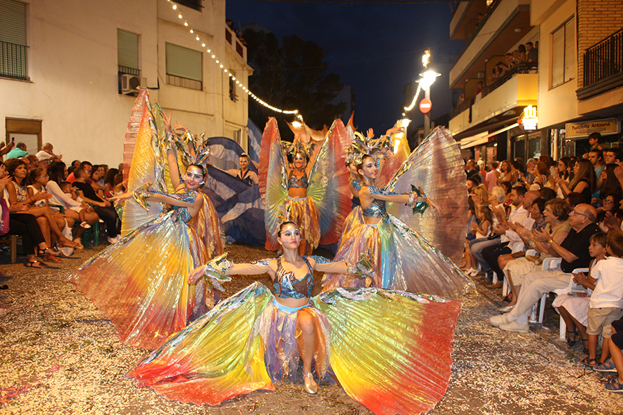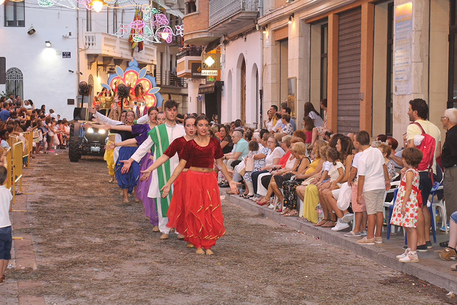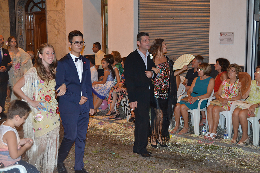 Este domingo 27 de agosto tuvo lugar el día grande de la S.M. La Artística, la Fiesta del Mantón, que este año cumple además su 90 aniversario. Tras la ofrenda de flores y frutos de la mañana, por la tarde tuvo lugar la Gran Cabalgata del Mantón, concluyendo con una emocionante representación del himno de Los Feos y una espectacular traca de colores. Las reinas, Srta. Irene Sierra Sáez y niña Valeria Fernández Espert, acompañadas de sus cortes de honor y de la representante Srta. Nuria García Lambíes, además de la banda de música La Artística, fueron las protagonistas. Os dejamos una extensa galería de imágenes.
