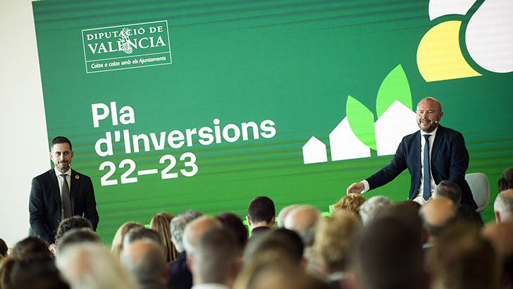 La Diputació de València ha presentado este lunes, ante más de 200 alcaldes y alcaldesas de la provincia, la propuesta de Plan de Inversiones para este año y el próximo, con una dotación de 140 millones de euros que refuerza la apuesta por la autonomía municipal y la liquidez que necesitan los ayuntamientos para mejorar infraestructuras y servicios. Tras la experiencia de los últimos años, la principal novedad del plan bienal es la posibilidad de que los técnicos locales visen los proyectos con el fin de agilizar la tramitación y posterior ejecución de las obras.