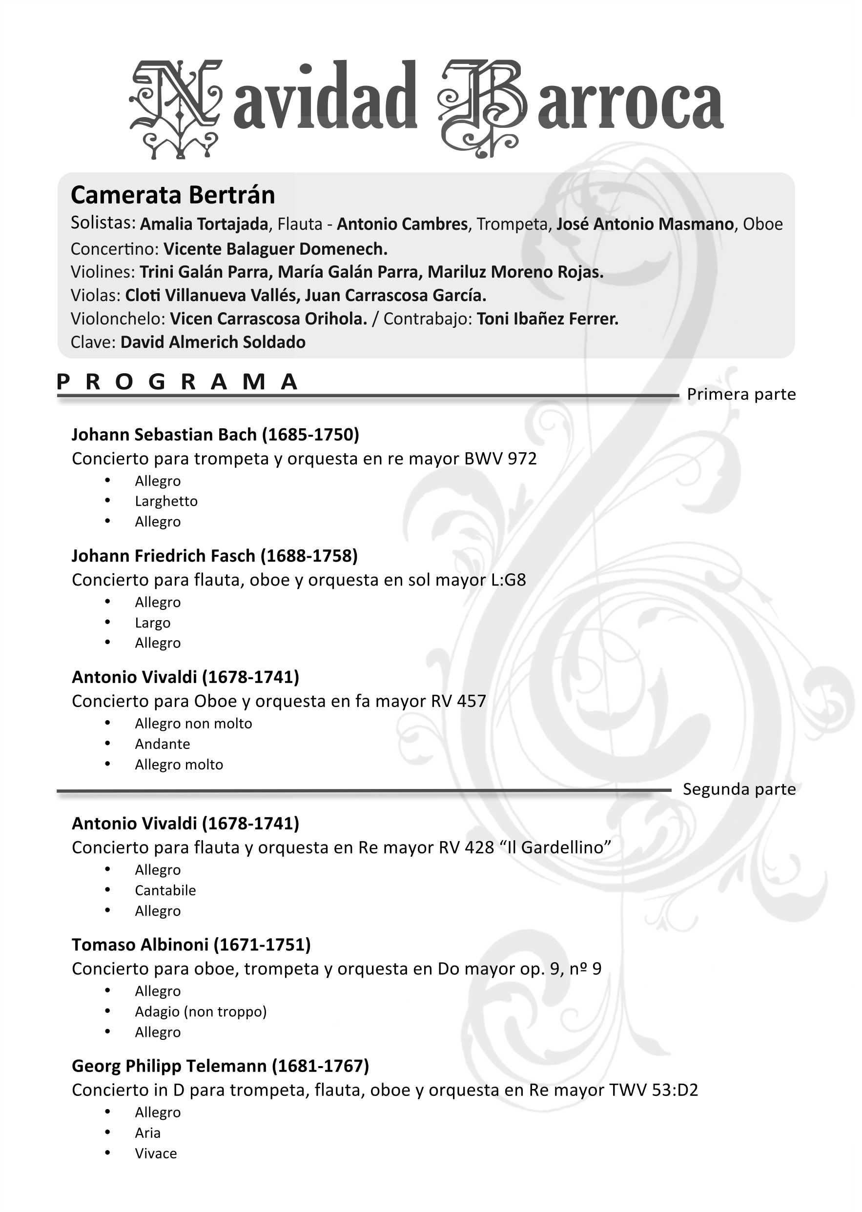 Aquí os dejamos el programa íntegro del concierto «Navidad Barroca»: