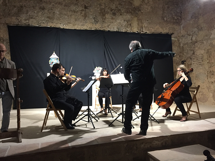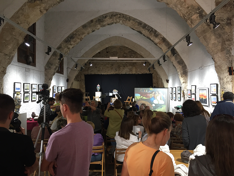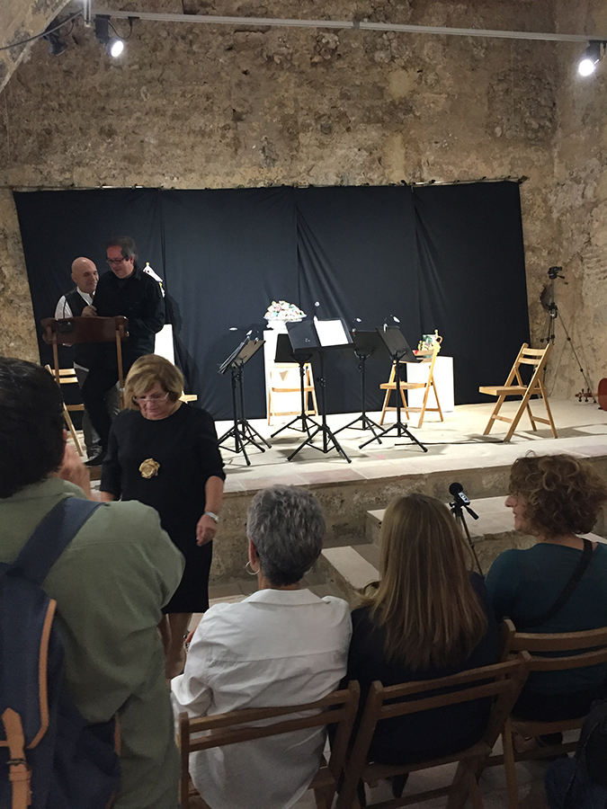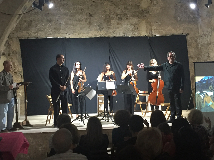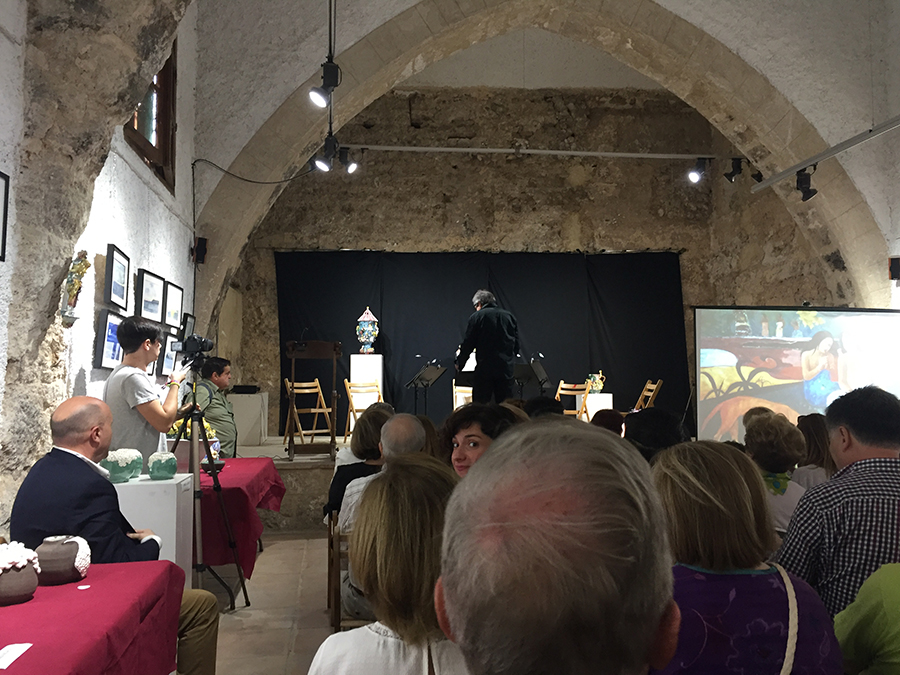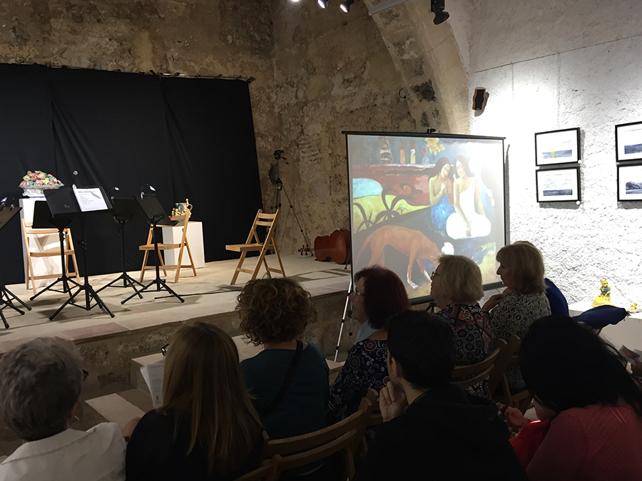 En la inauguración intervino el concejal de Cultura, Arnaldo Carrascosa, y la protagonista de la exposición, Elvira Aparicio. Además, el compositor Manuel Carrascosa Pérez presentó su nueva obra, inspirada en el diario del pintor Paul Gaugain y la pluma de Charles Morice Noa Noa. La isla feliz. Francis Ruiz leía algunos fragmentos del diario y a continuación el Cuarteto Senalag (Trini Galán, violín; María Galán, violín; Cloti Villanueva, viola; Clara Dols, violoncello), junto con David Badía (flauta), interpretaban esta obra para deleite de una sala del Oscurico absolutamente llena.