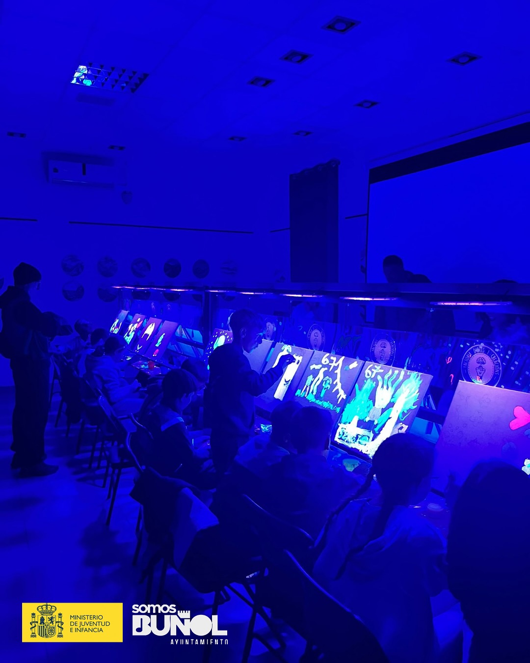 La Sala Raga de Buñol se transformó el pasado viernes en un espacio de luz y color con la celebración del Taller ArtFluor, una propuesta artística dirigida a jóvenes que les permitió experimentar con pinturas fluorescentes y descubrir nuevas formas de expresión creativa.