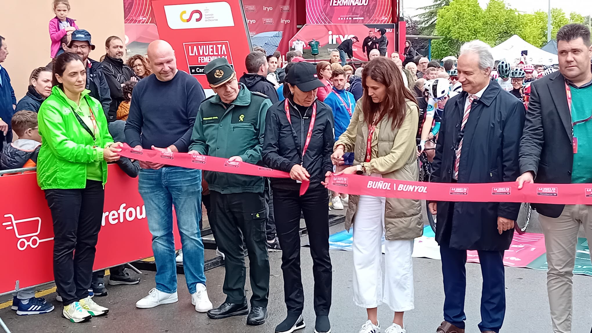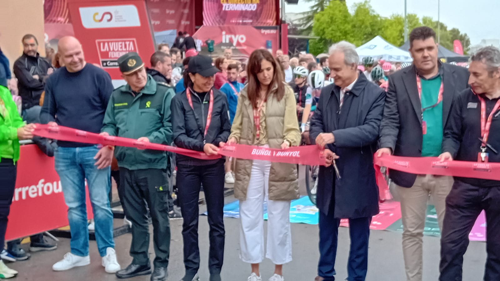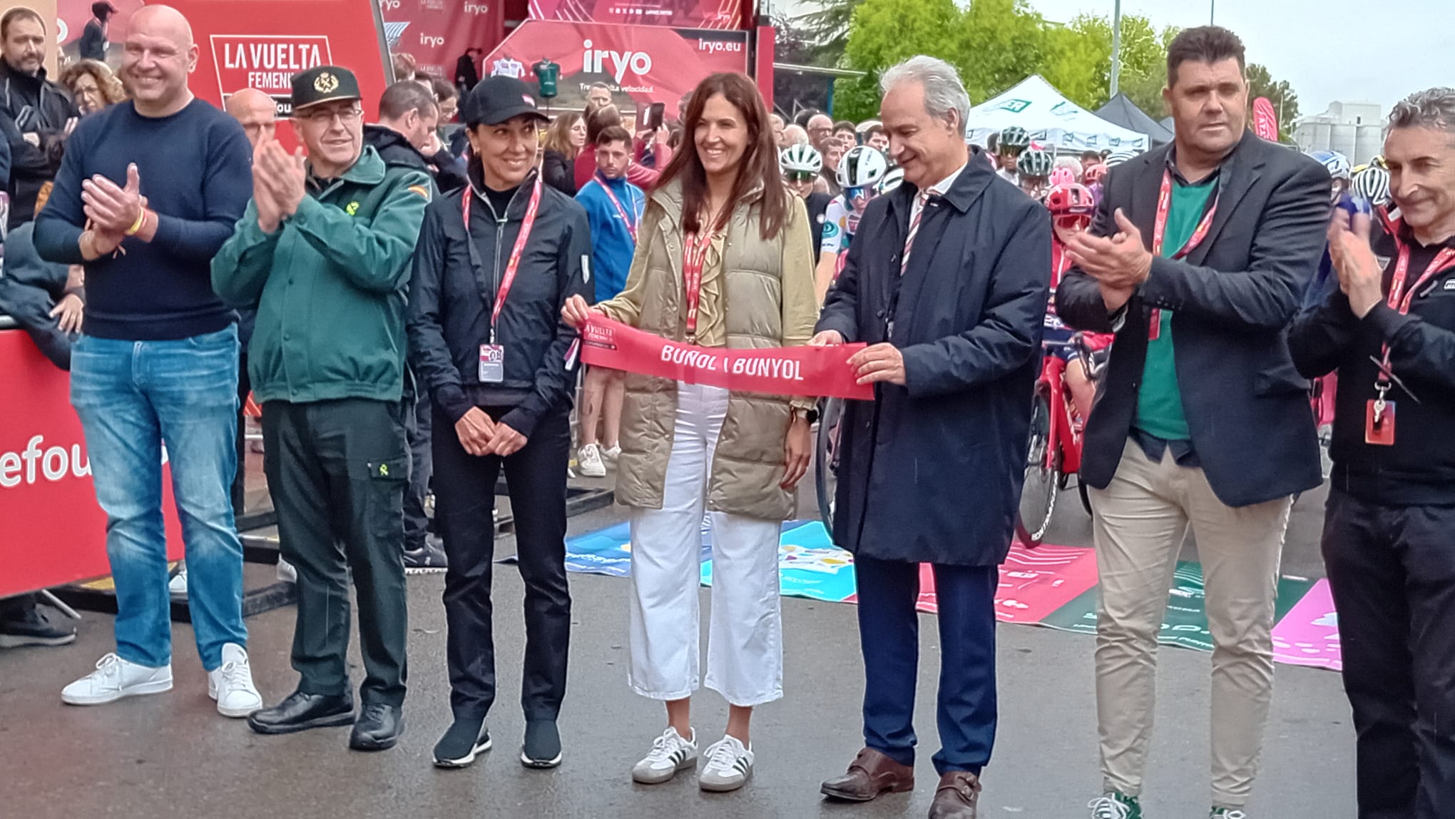 Antes de la salida, la alcaldesa de Buñol, Virginia Sanz junto al director de La Vuelta han cortado la cinta que daba salida a la prueba, ante la atenta mirada del edil de deporte, Ulises Araujo, que se ha encargado de coordinar que todo el recorrido por la localidad transcurriese sin ningún tipo de incidente.