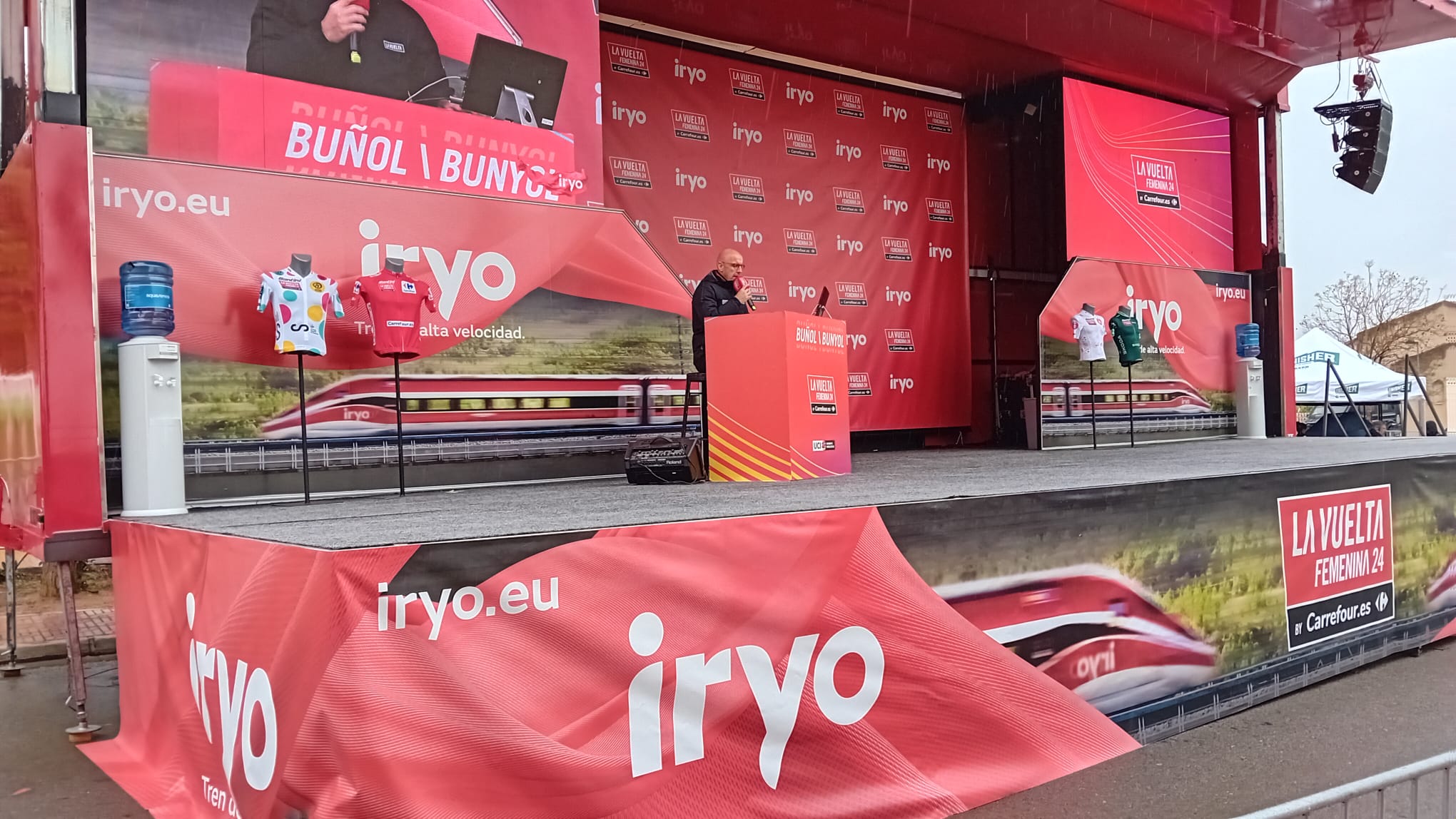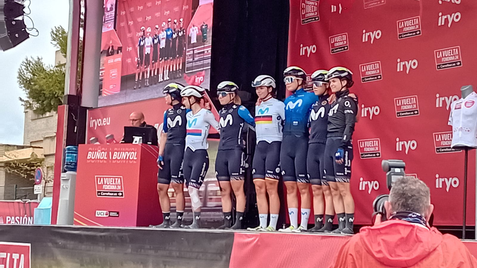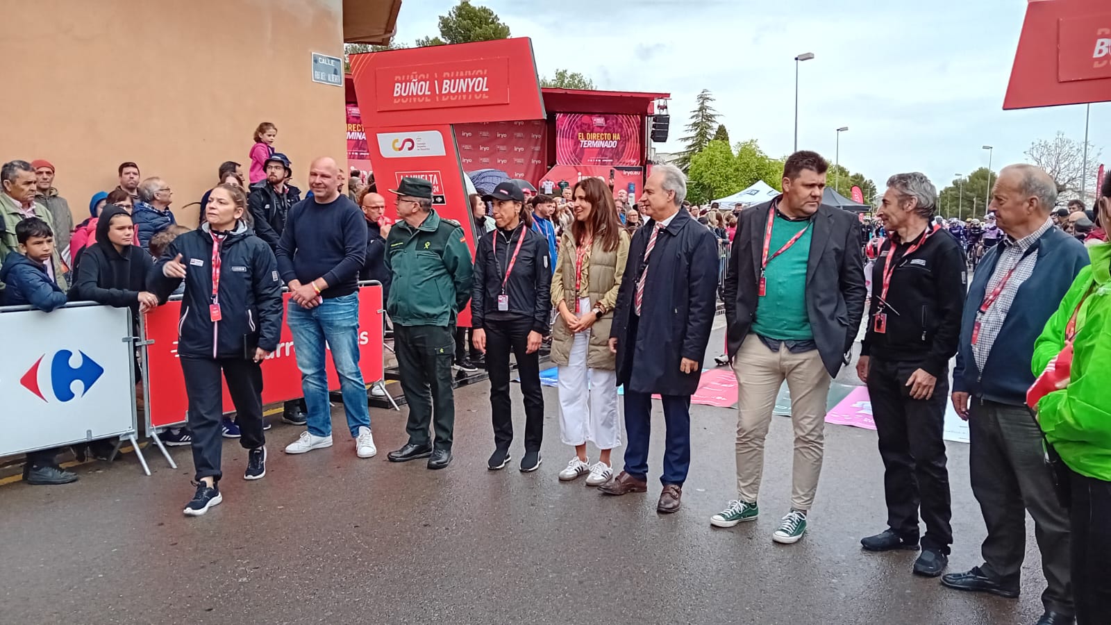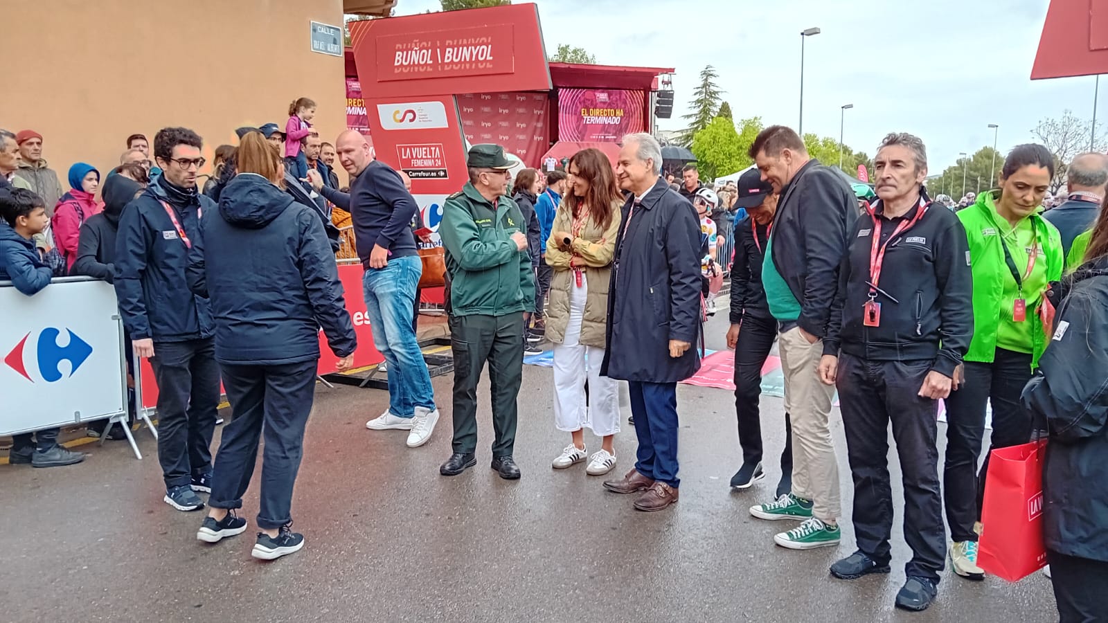Antes de la salida, la alcaldesa de Buñol, Virginia Sanz junto al director de La Vuelta han cortado la cinta que daba salida a la prueba, ante la atenta mirada del edil de deporte, Ulises Araujo, que se ha encargado de coordinar que todo el recorrido por la localidad transcurriese sin ningún tipo de incidente.