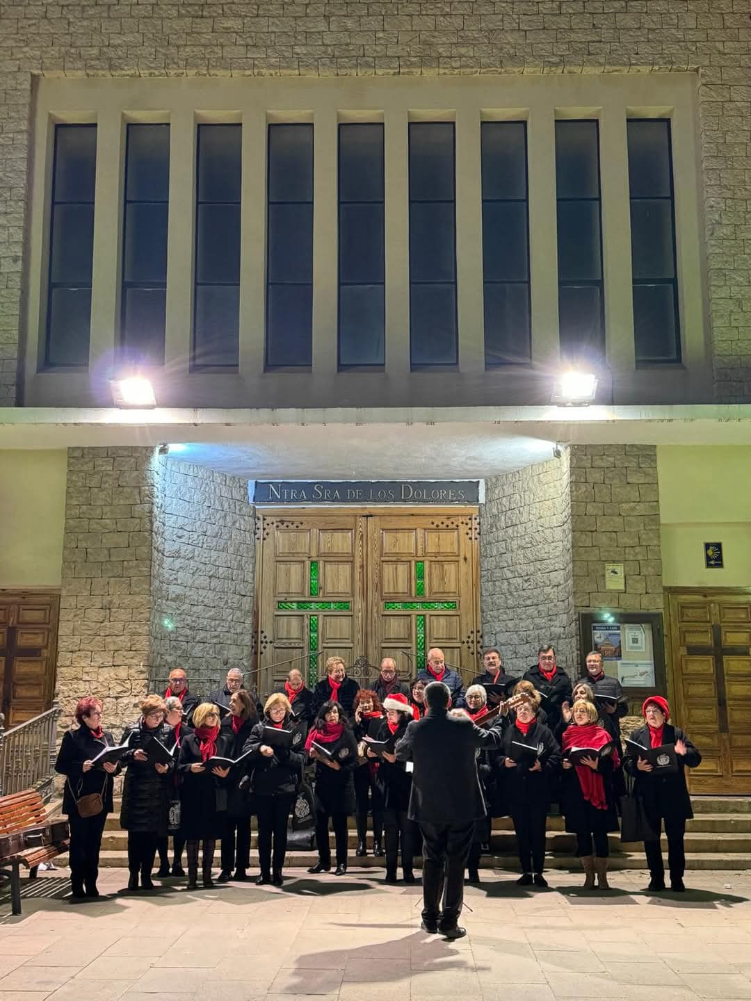 Simultáneamente, en la parroquia Virgen de los Dolores de las Ventas, el coro Orfeos de «La Artística» ofreció su propio concierto, sumando su voz al repertorio navideño de la localidad. Este grupo coral, conocido por su calidad y entrega, deleitó a los asistentes con su interpretación de villancicos populares, brindando un toque especial a las festividades en la parroquia.