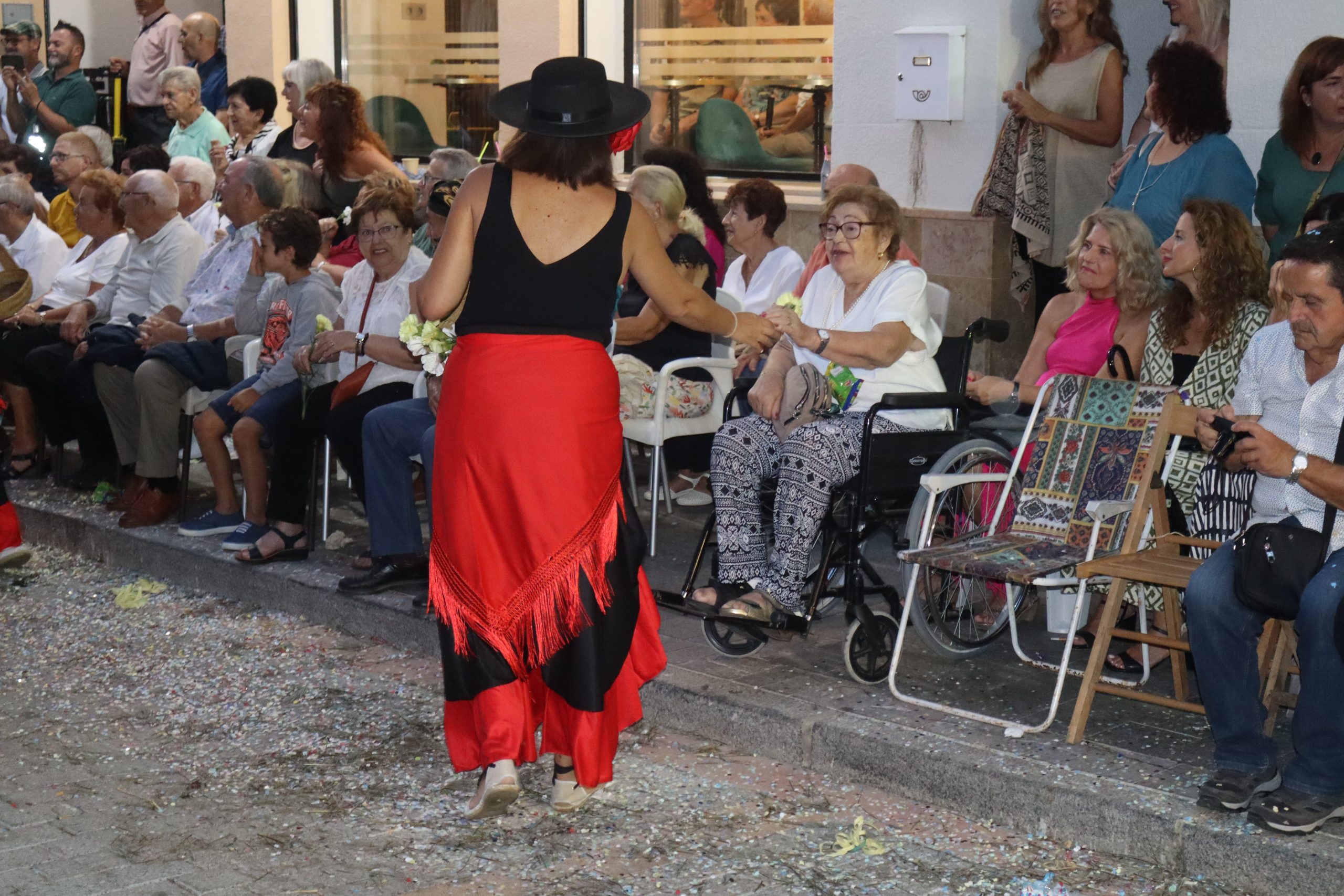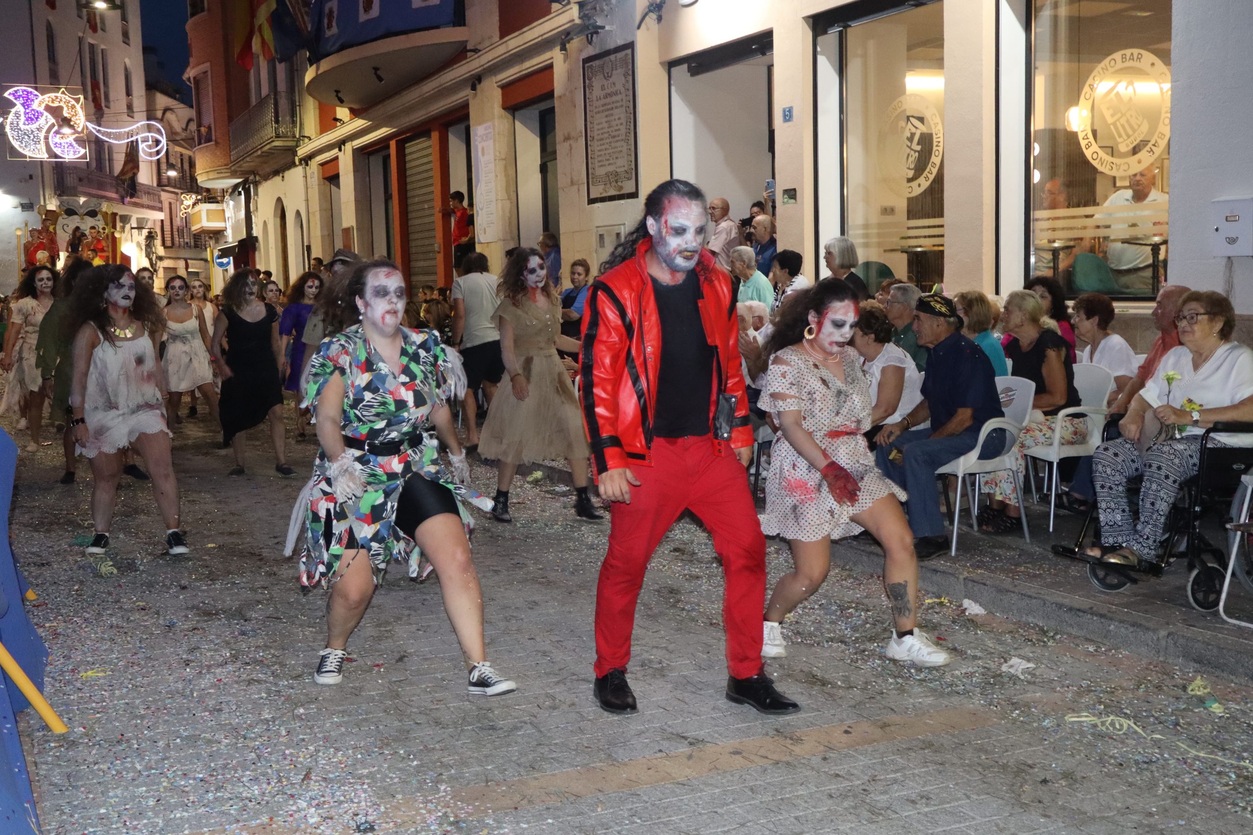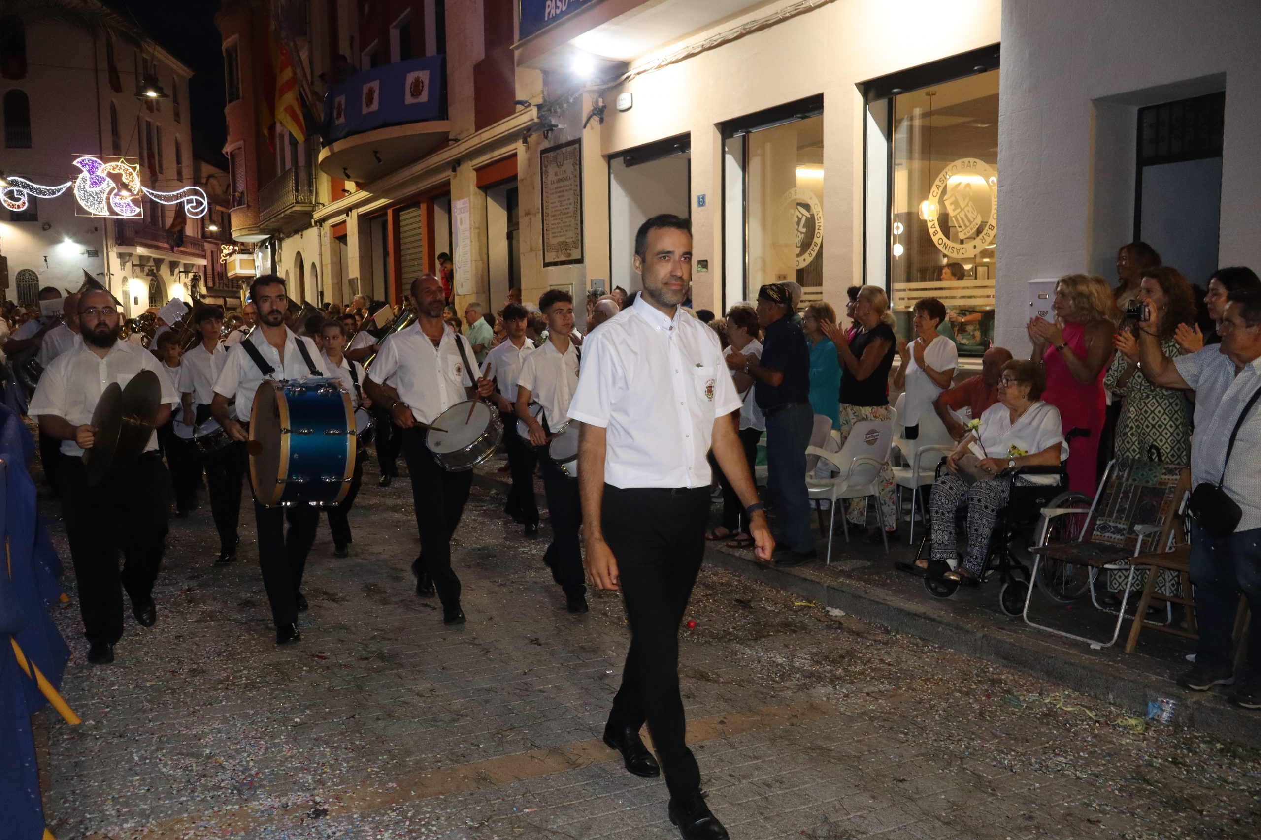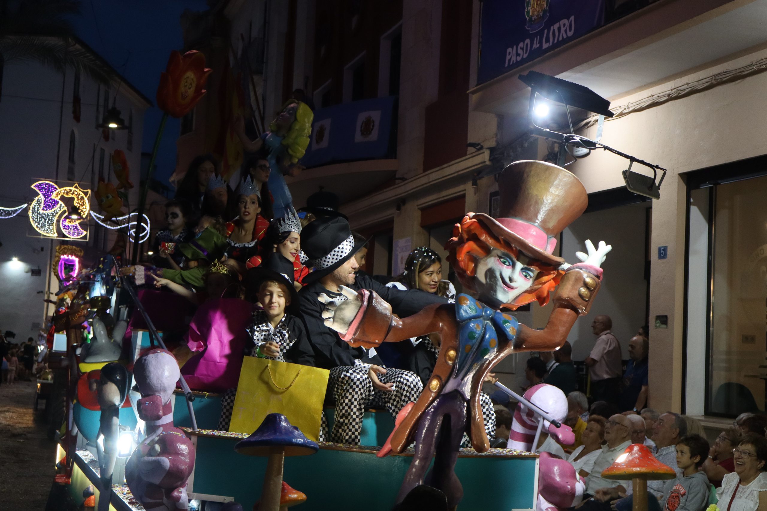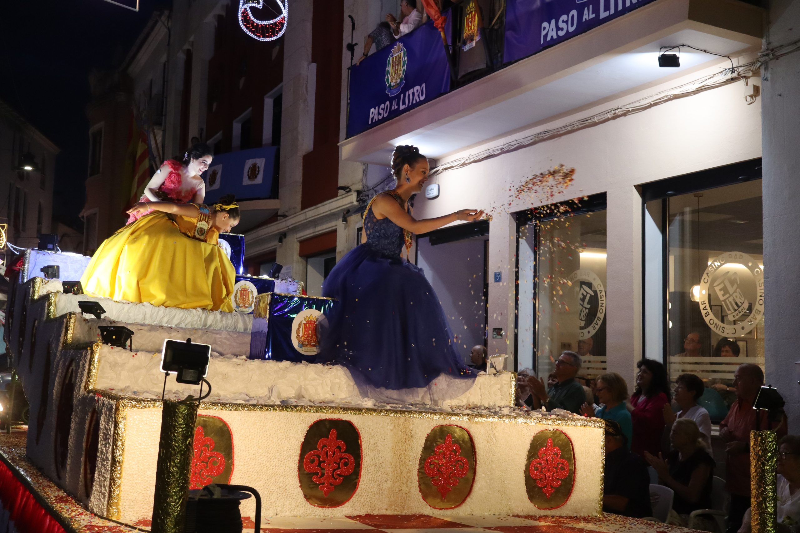 Después de las «filás» vinieron las carrozas: Madres y padres acompañaban a los más pequeños, que repartían caramelos a uno y otro lado. Entre medias, las comparsas de baile, que ensayan durante todo el verano para ofrecer un gran espectáculo el día de su sociedad. Concluyeron el desfile las Misses y Representante del año anterior, todas ellas en carroza. Y andando y con sus respectivas cortes de honor estaban las Misses, Andrea Cano Benedé y Carmen Blasco Cerdán, además de la Representante, Arlén Sánchez Sánchez. La comitiva la cerraba la Banda Sinfónica, encabezada por su presidenta Rosario Pardo y por su director, Saül Gómez.