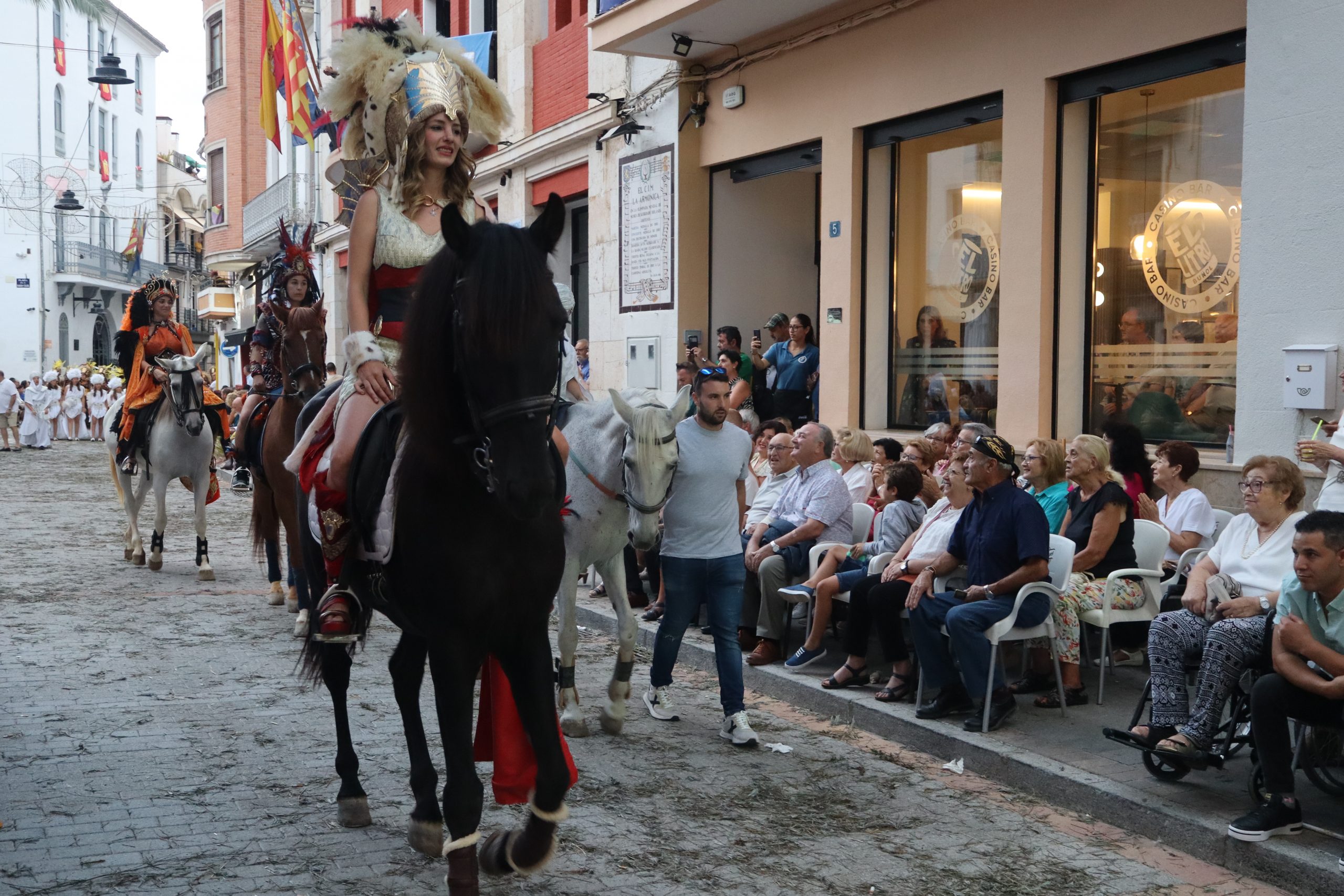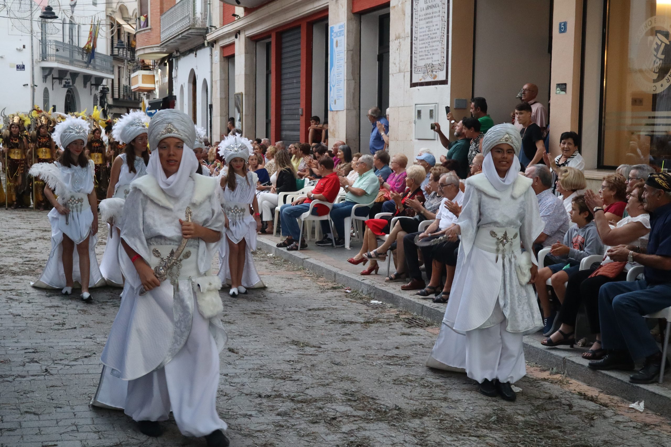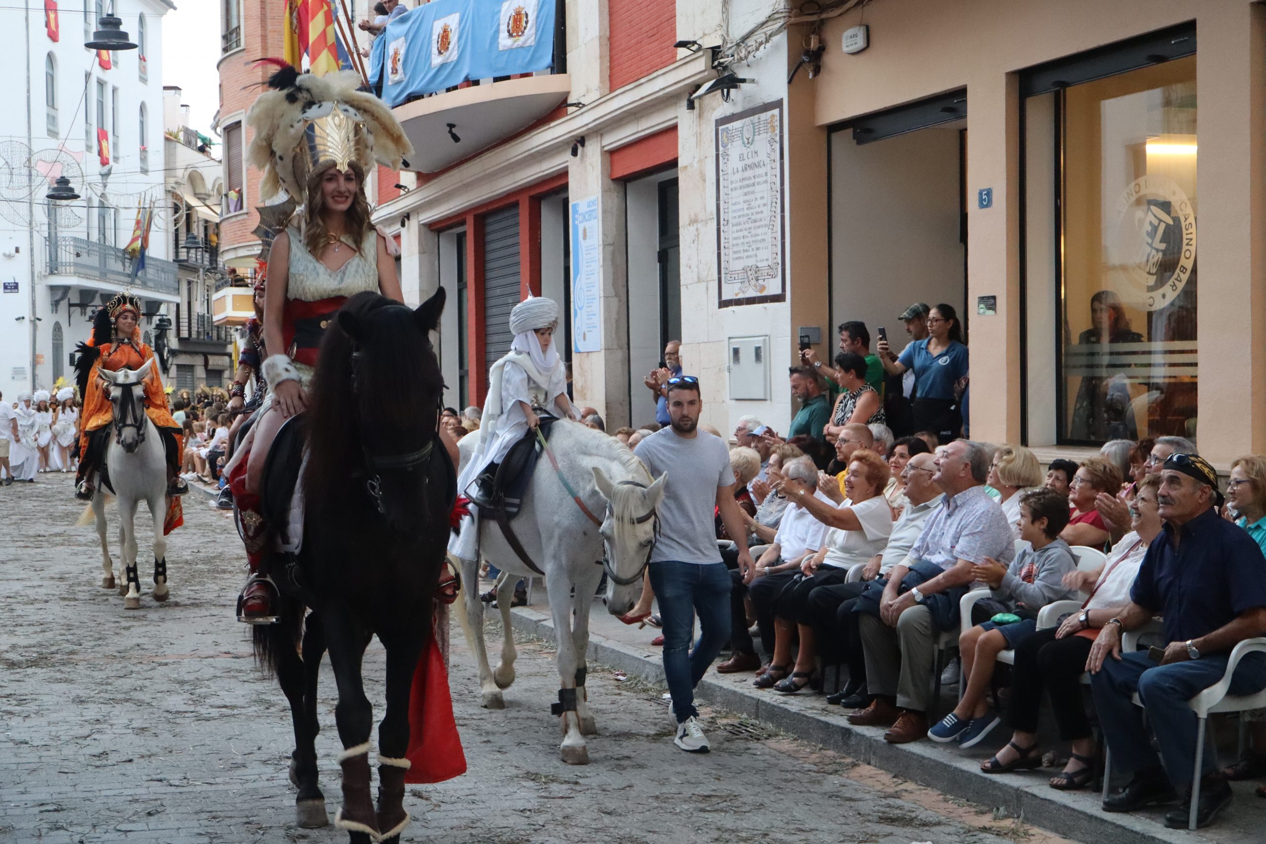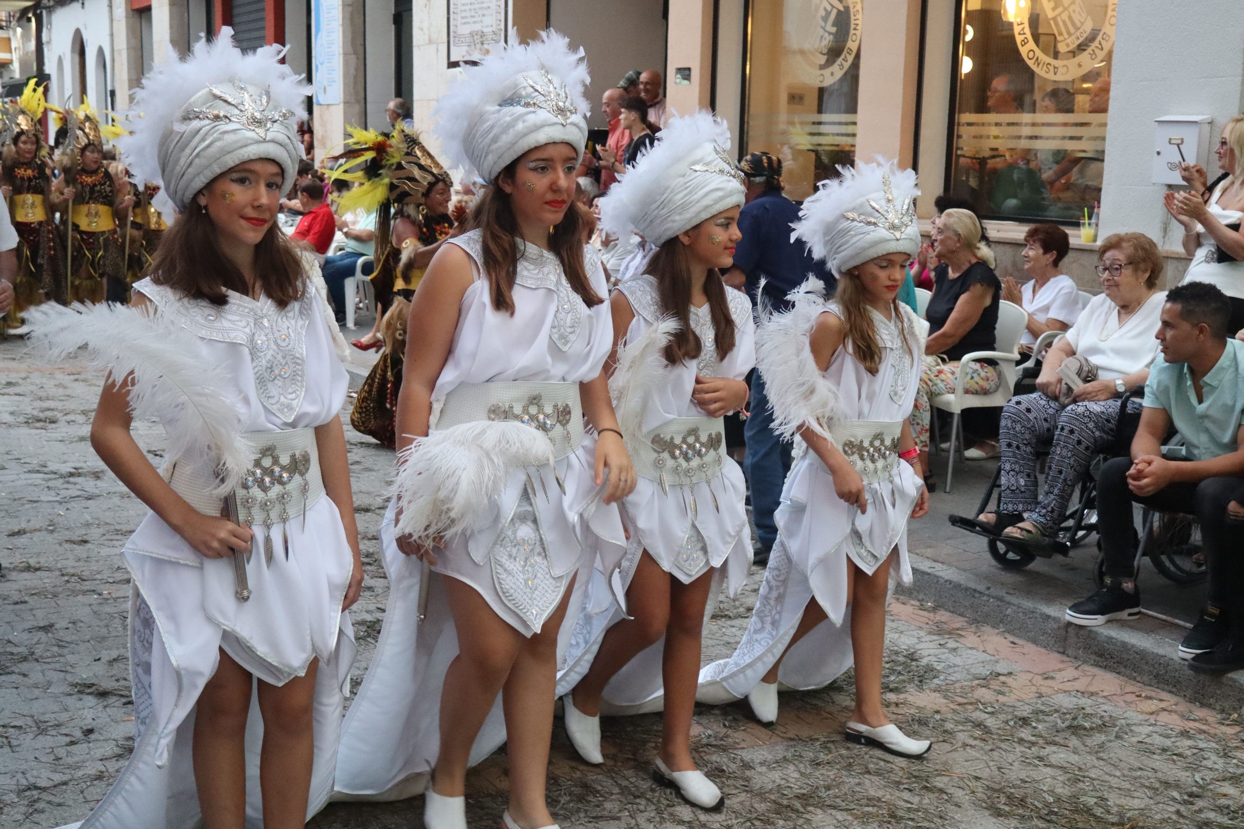 Sin duda, las «filás» moras son lo más llamativo de esta fiesta. Mujeres, hombres, niñas y niños, se ataviaron para la ocasión con trajes espectaculares, para llenar de color el desfile de la tarde. Las capitanas y capitanes moros, levantaban el aplauso a cada paso que daban, en una comitiva que cerraron los Reyes Moros.