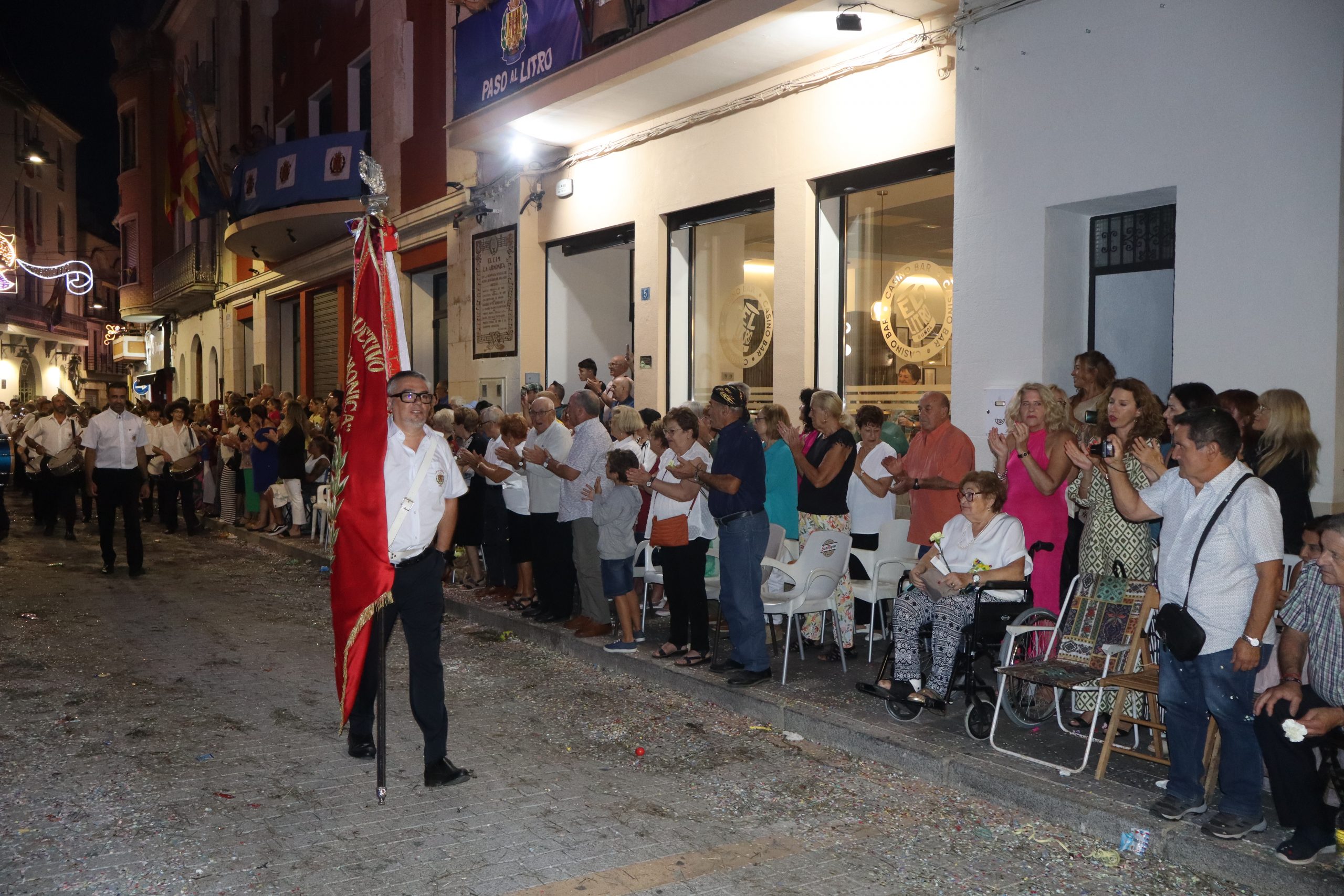 Una vez el desfile concluyó en el Paseo de San Luis, vuelta al local social situado en la Plaza del Pueblo para interpretar el «Himno Litrero» que volvió a emocionar a toda la familia «litrera» allí congregada.