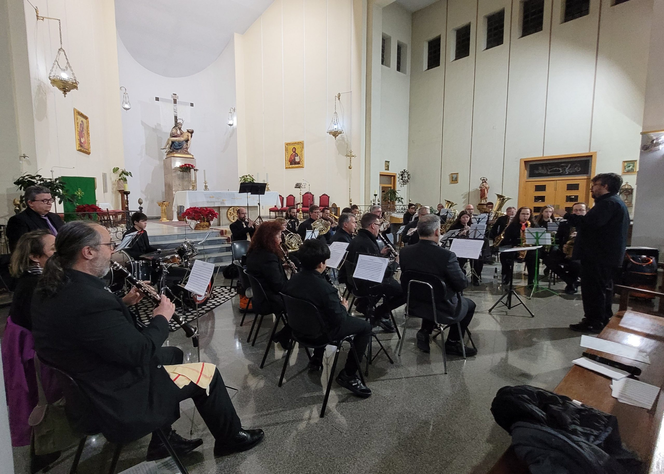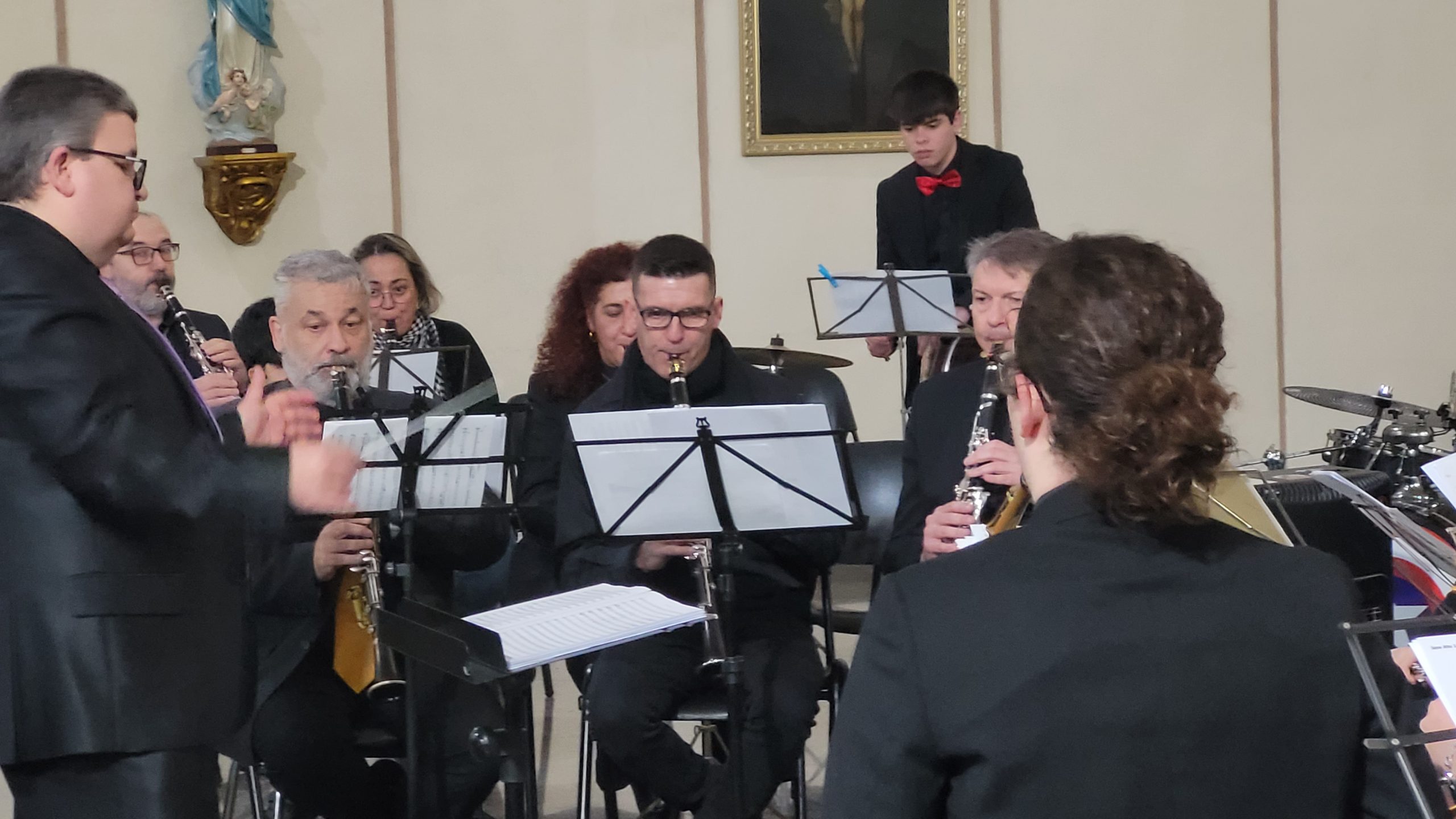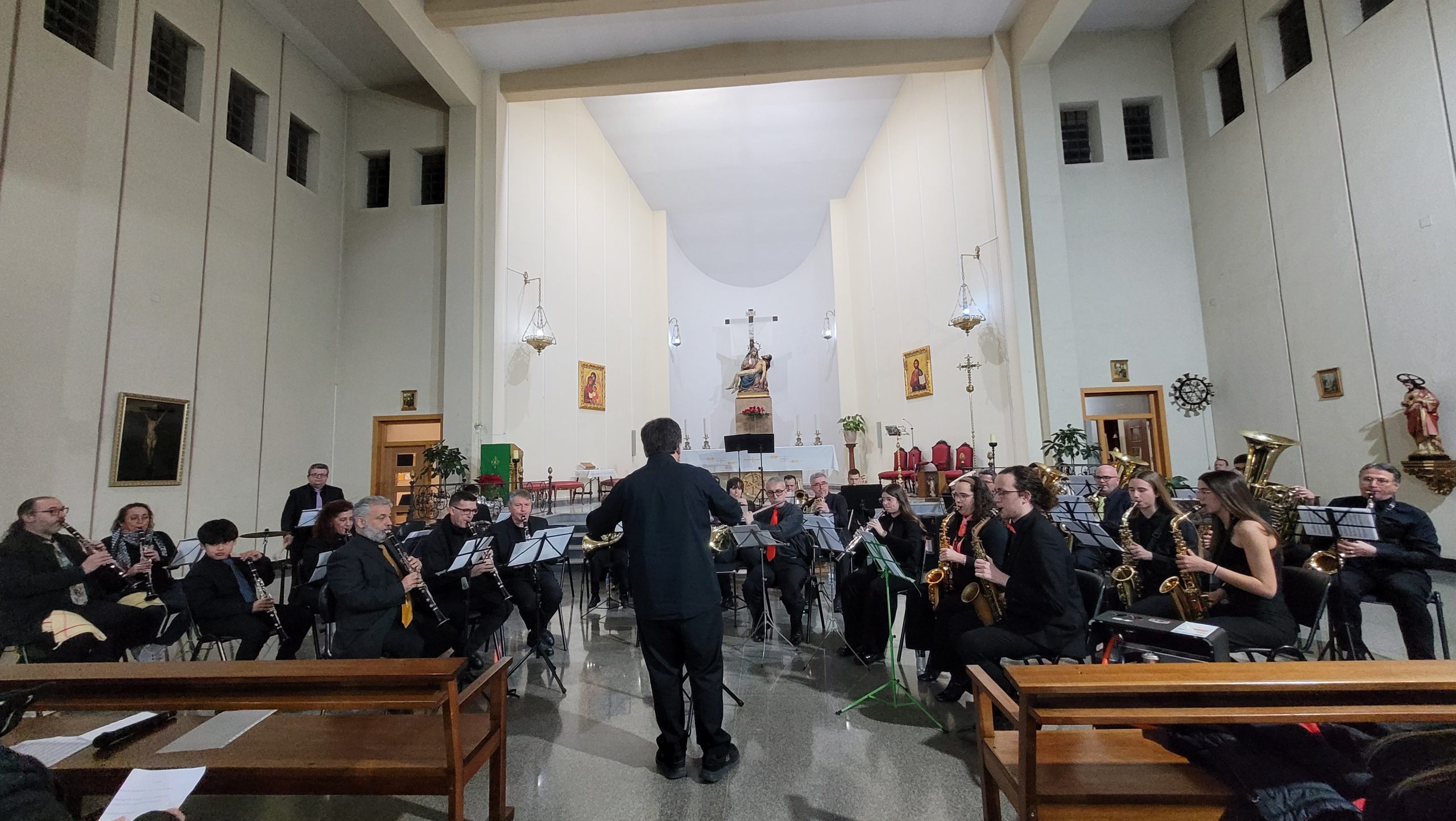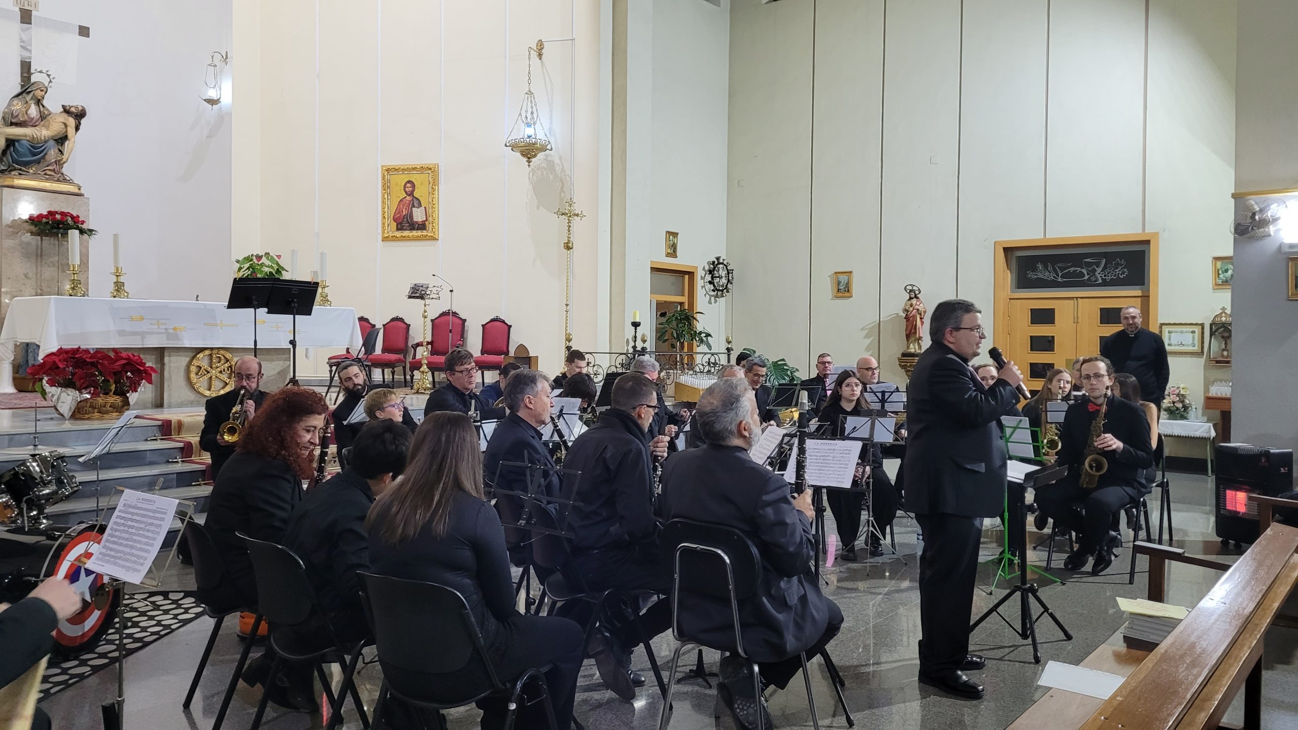 La primera parte del programa incluyó el pasodoble La Morenica, de Manuel Carrascosa, Coliseum, de Hugo Chinesta, y Oregon, de Jacob de Haan, interpretadas bajo la batuta del director invitado Mario Barberá Giménez.