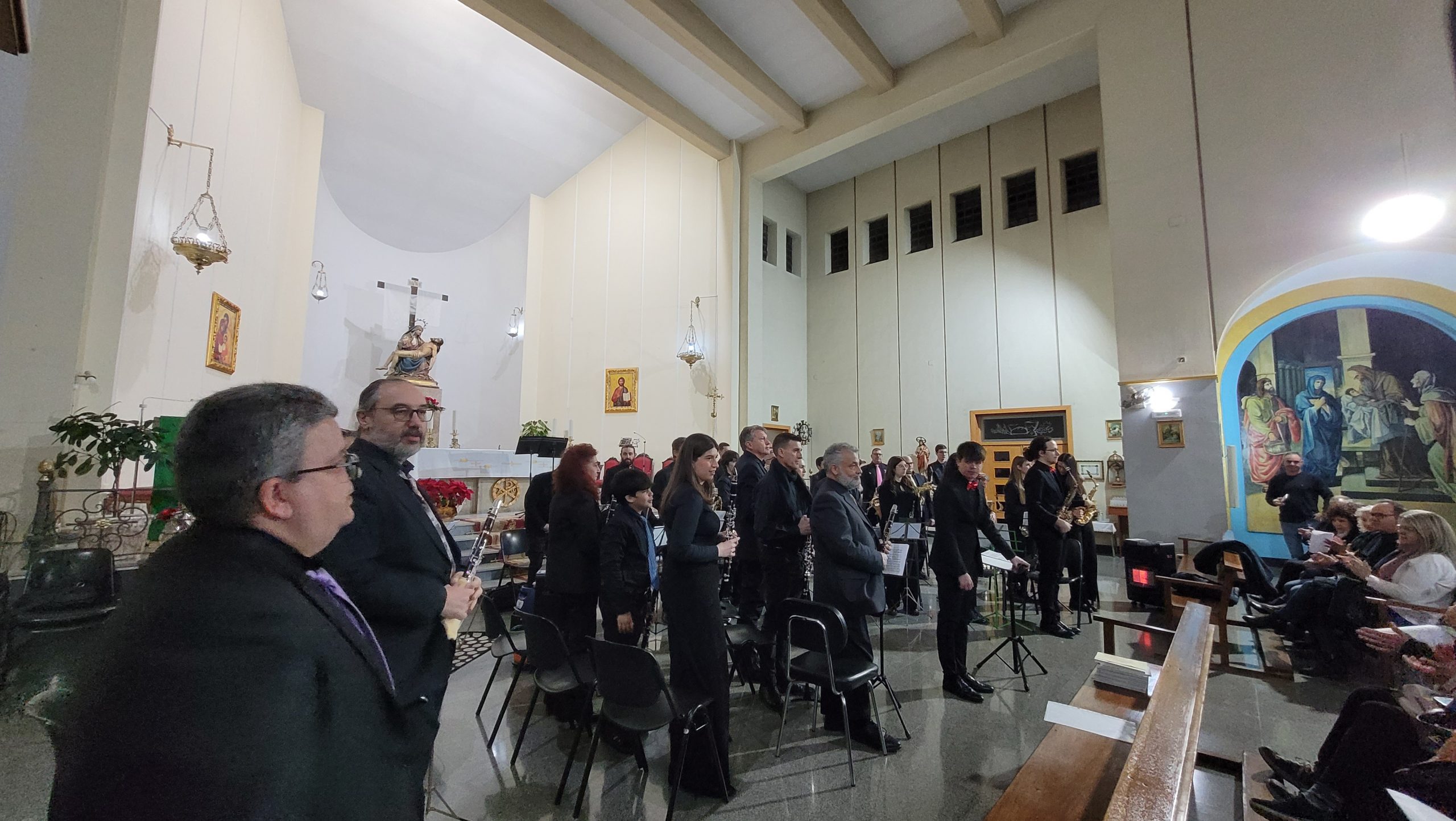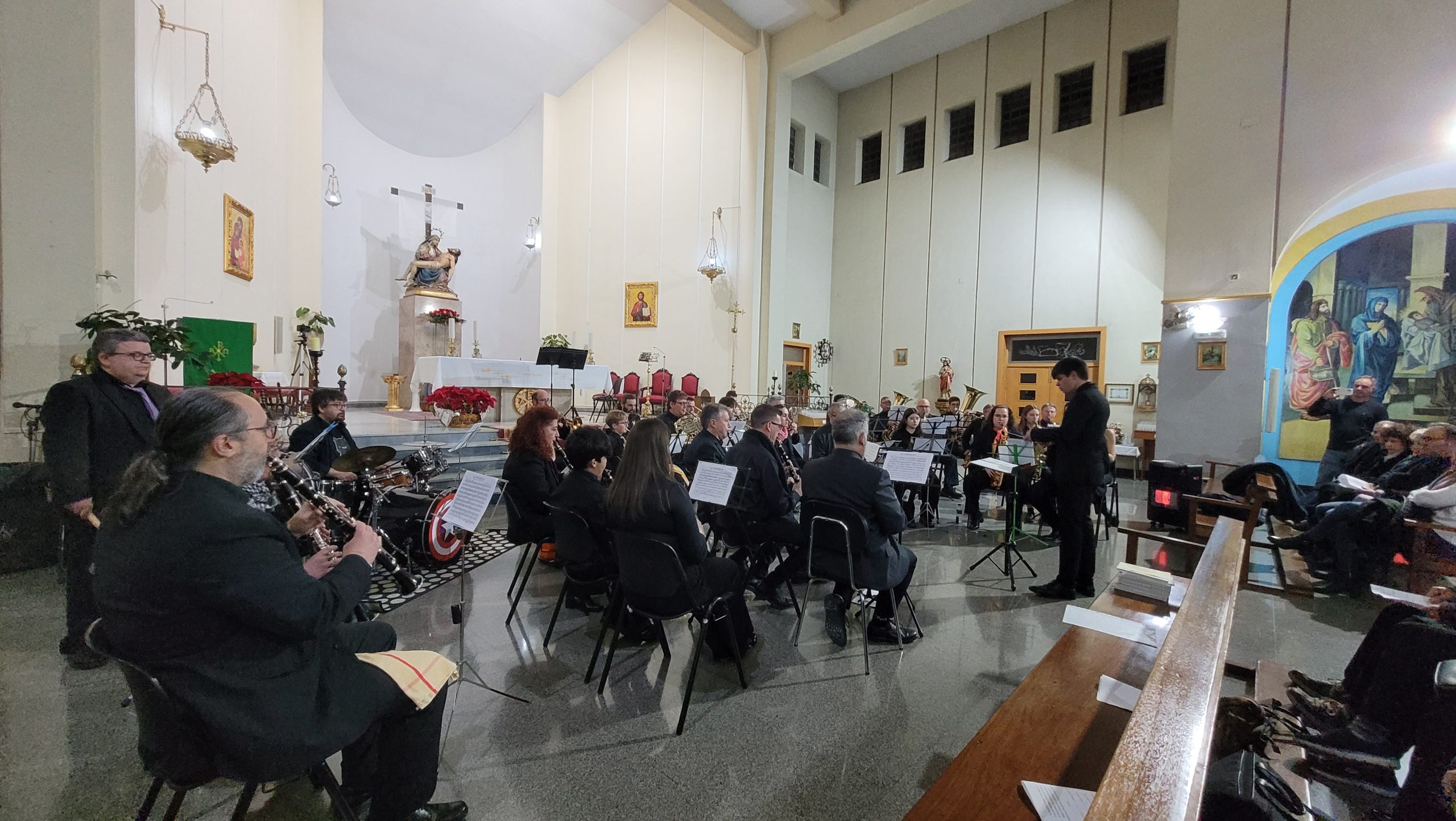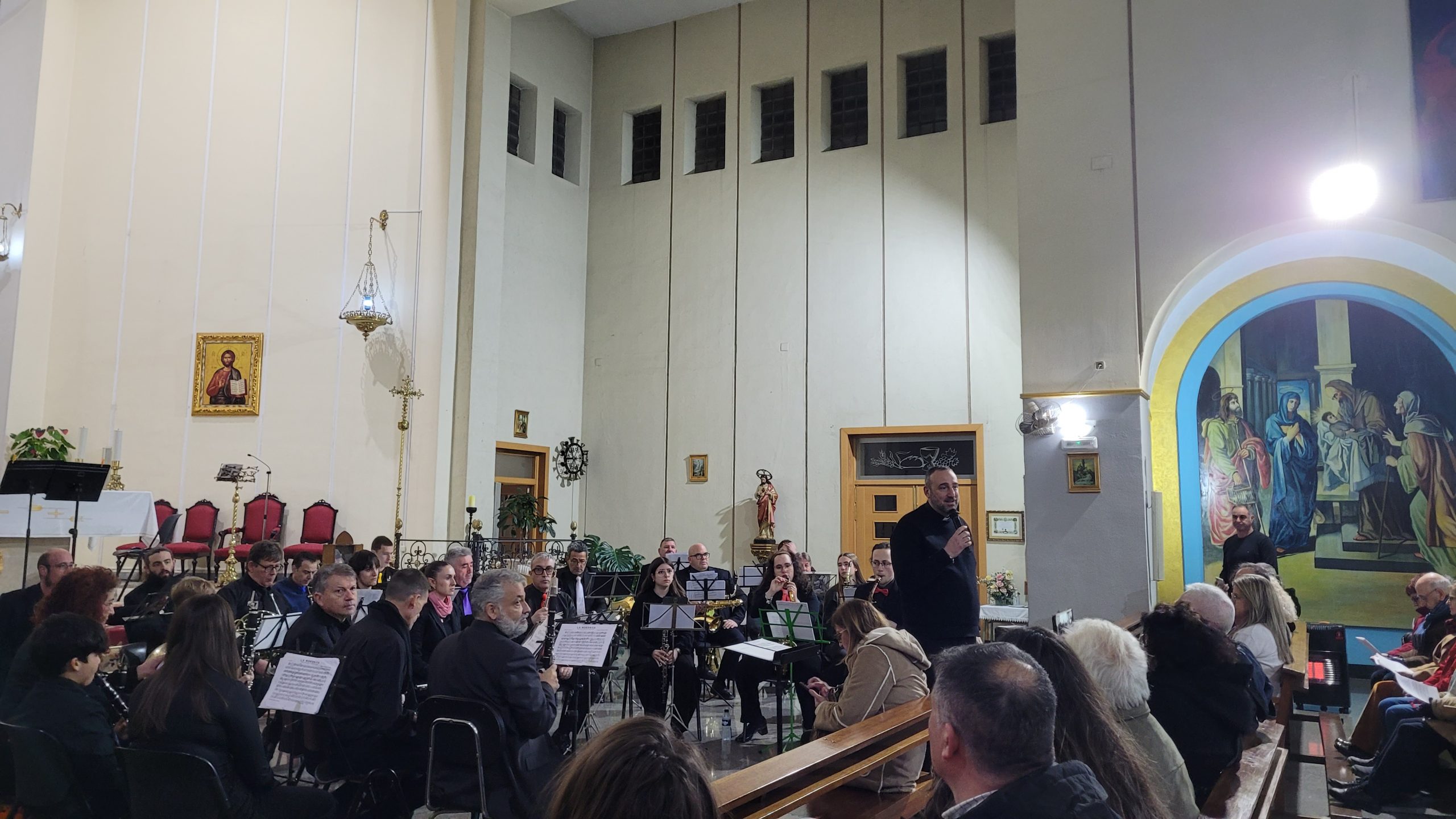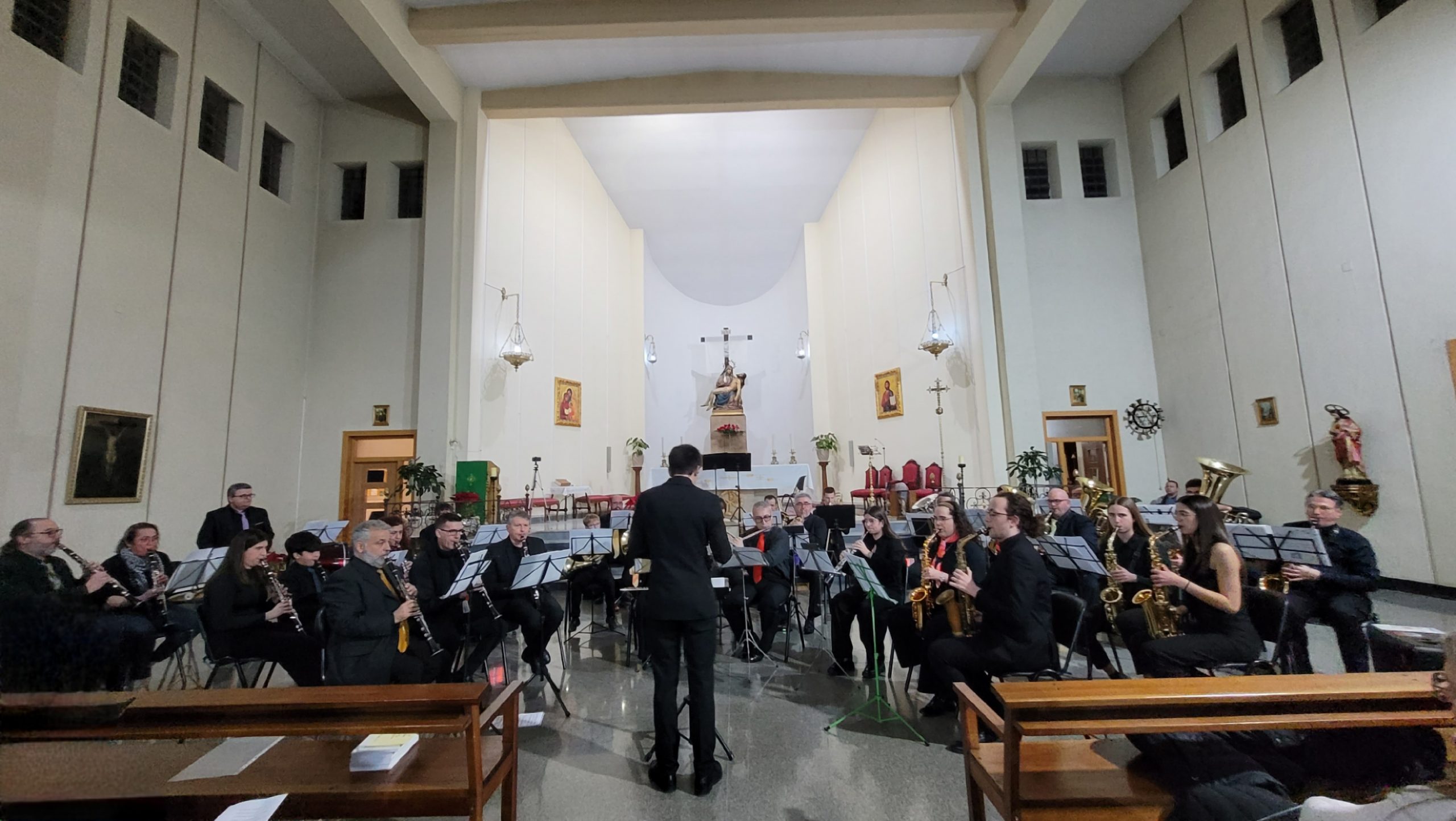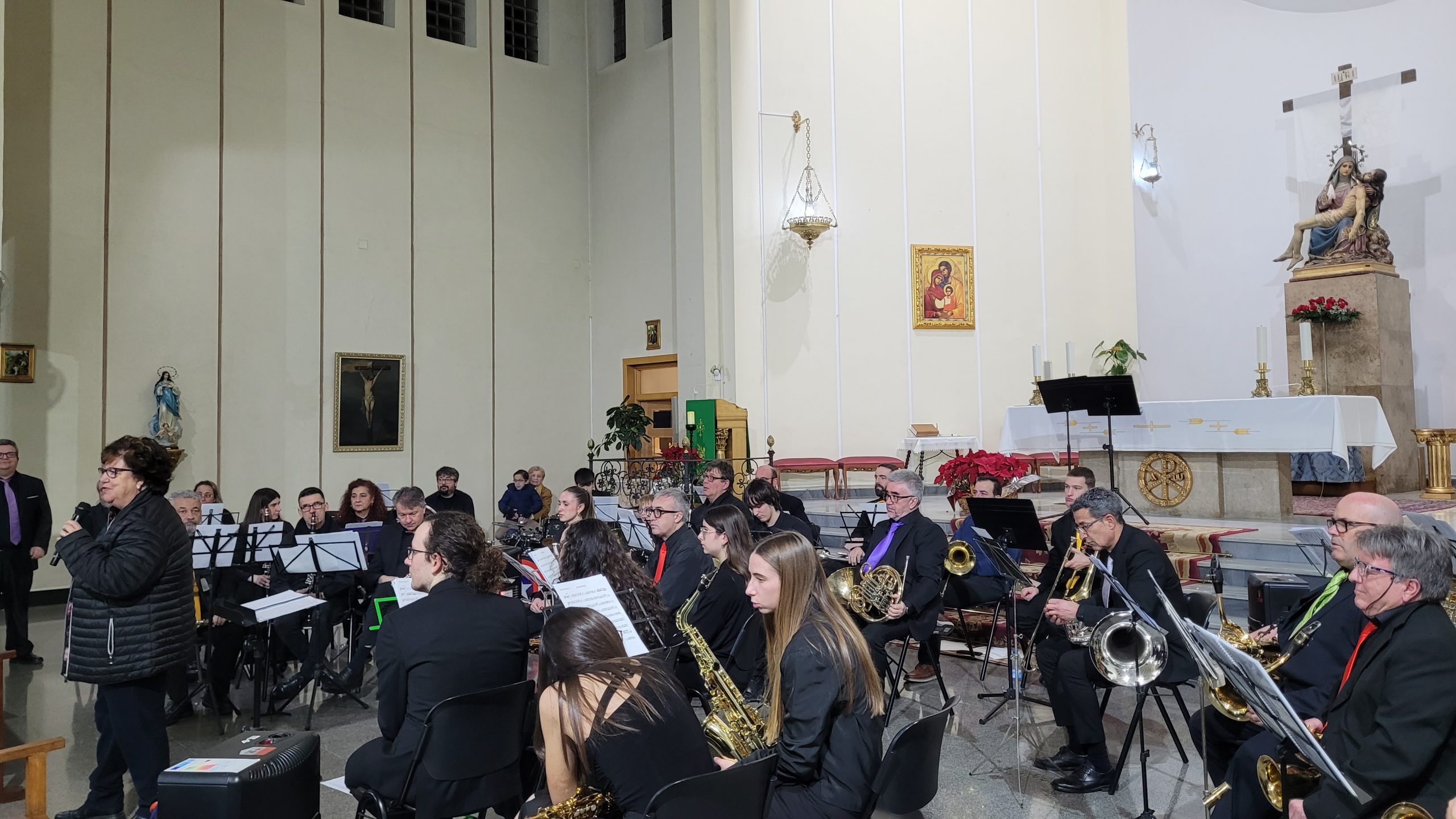 La primera parte del programa incluyó el pasodoble La Morenica, de Manuel Carrascosa, Coliseum, de Hugo Chinesta, y Oregon, de Jacob de Haan, interpretadas bajo la batuta del director invitado Mario Barberá Giménez.