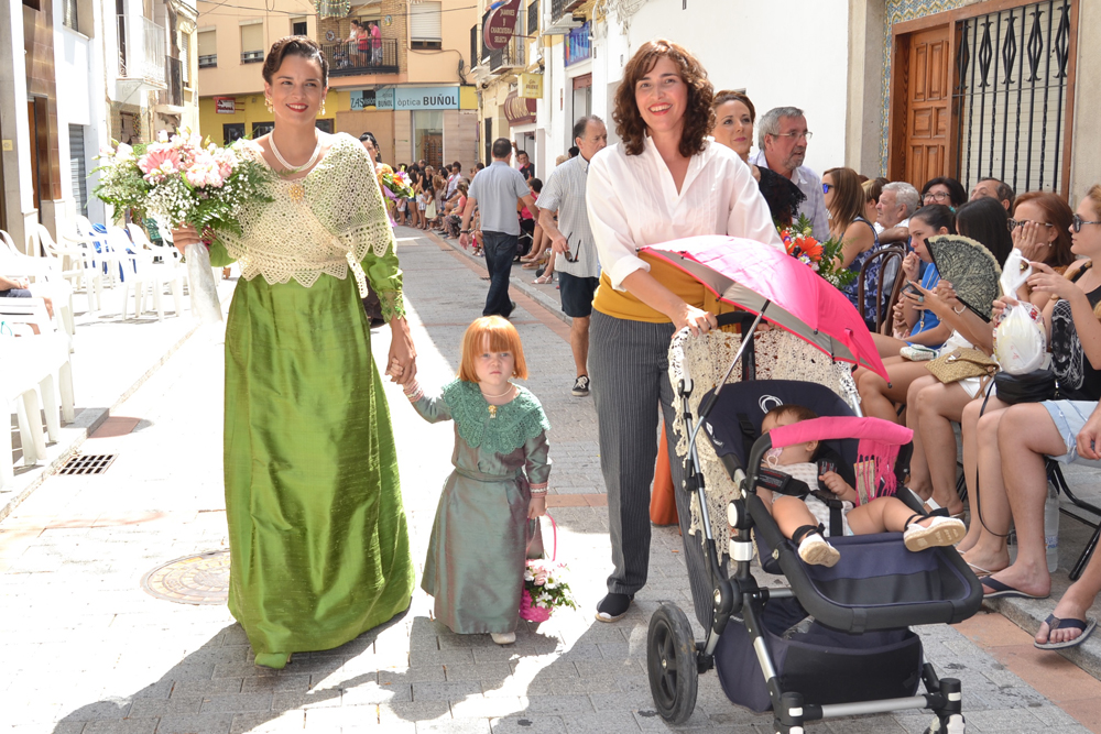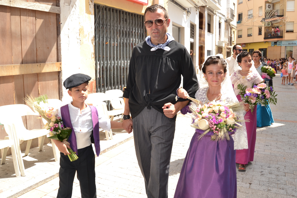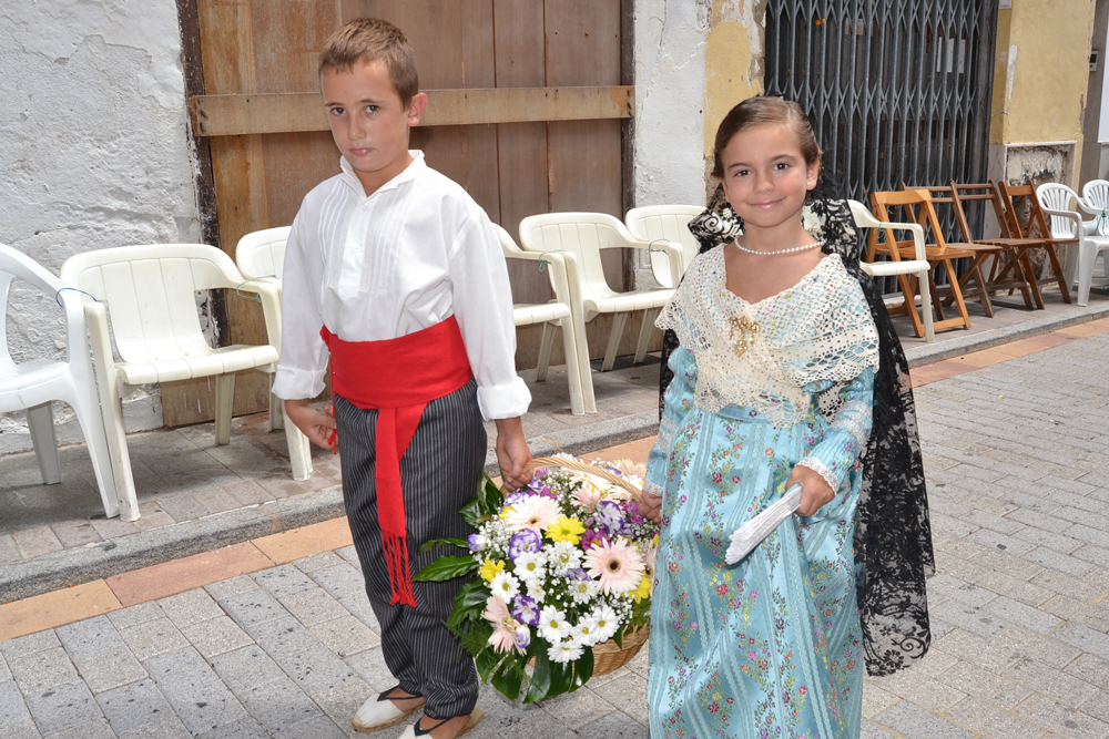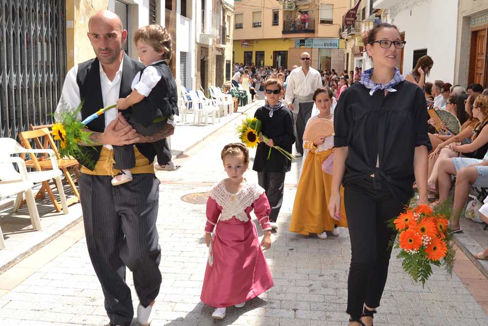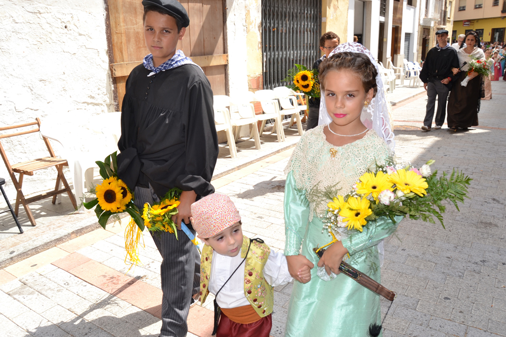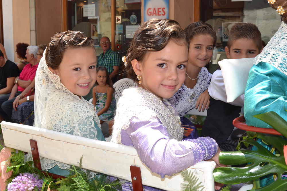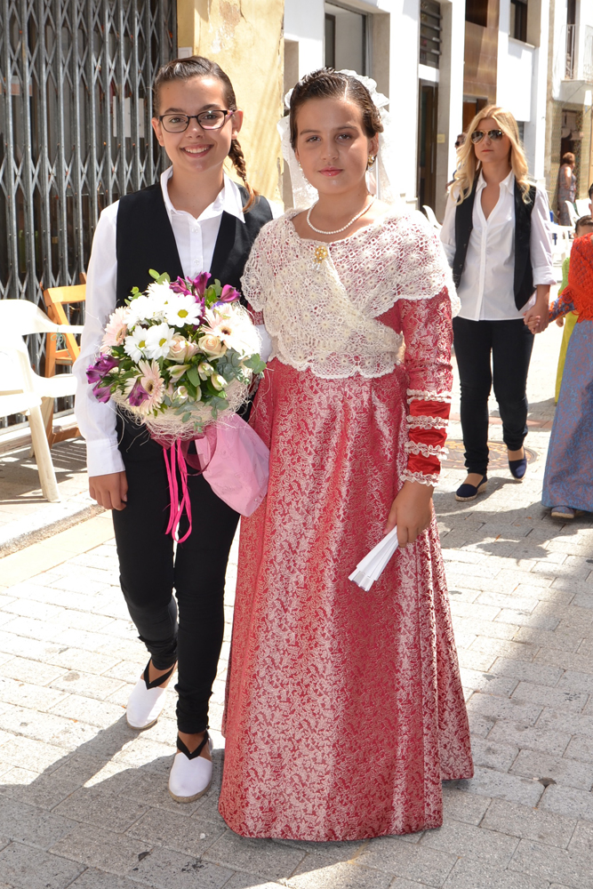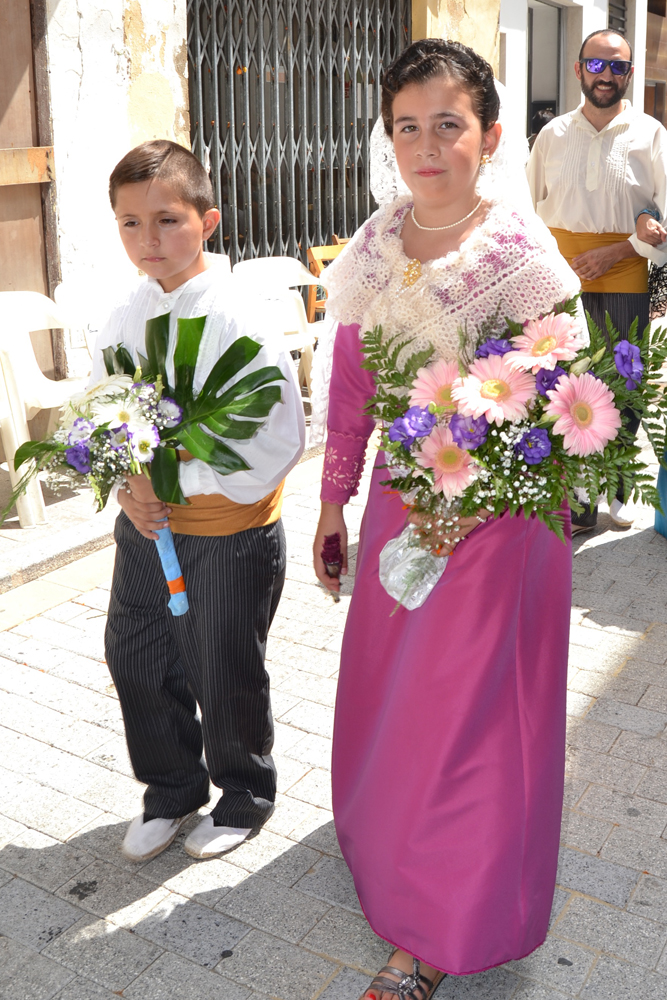 Niños, niñas, mujeres, hombres y como no los tradicionales monumentos no faltaron en una mañana en la que la alta participación fue la auténtica protagonista. Las Misses, Laura Carrascosa y Marta Pérez, así como la Representante de la sociedad, Nairobi Galarza, levantaron las ovaciones de los allí presentes cuando se dispusieron a entregar los ramos. Más tarde fue el tradicional pasodoble «Lo Cant del Valencià», el que con su sólo de bombardino, hizo vibrar a la Plaza del Pueblo y puso el punto final a la fiesta de la mañana.