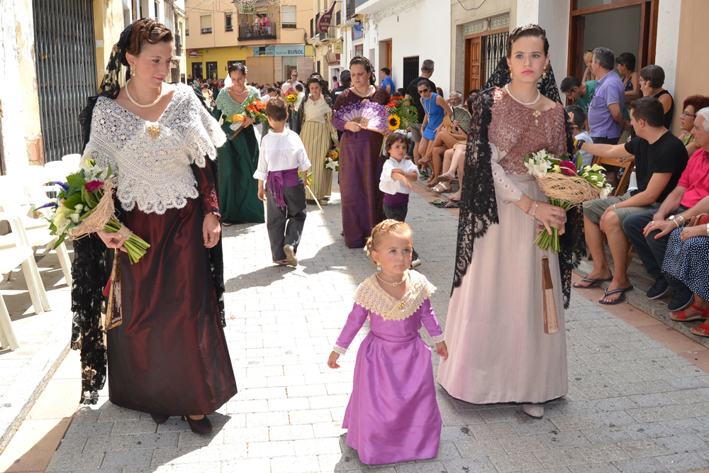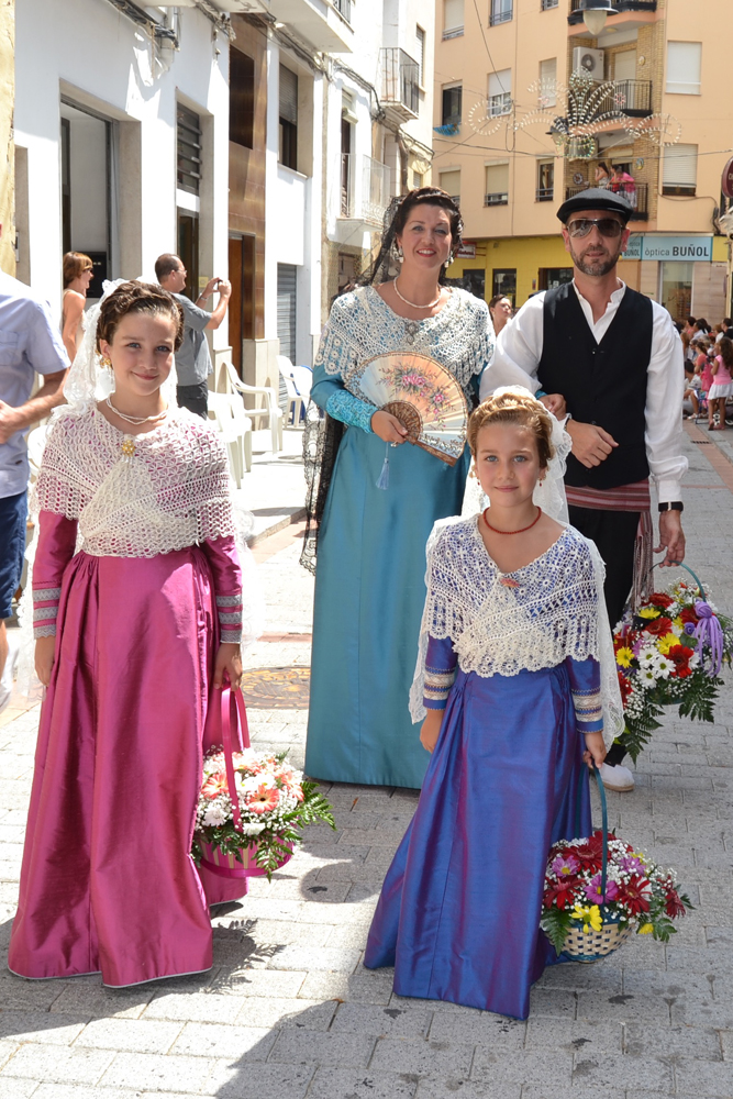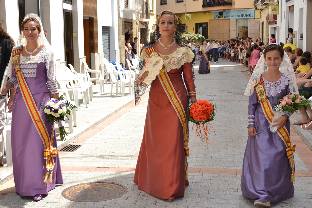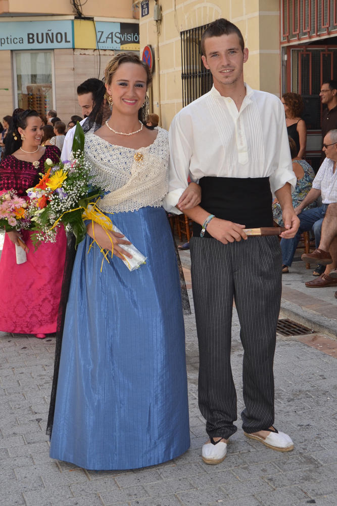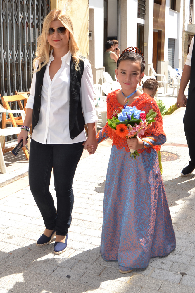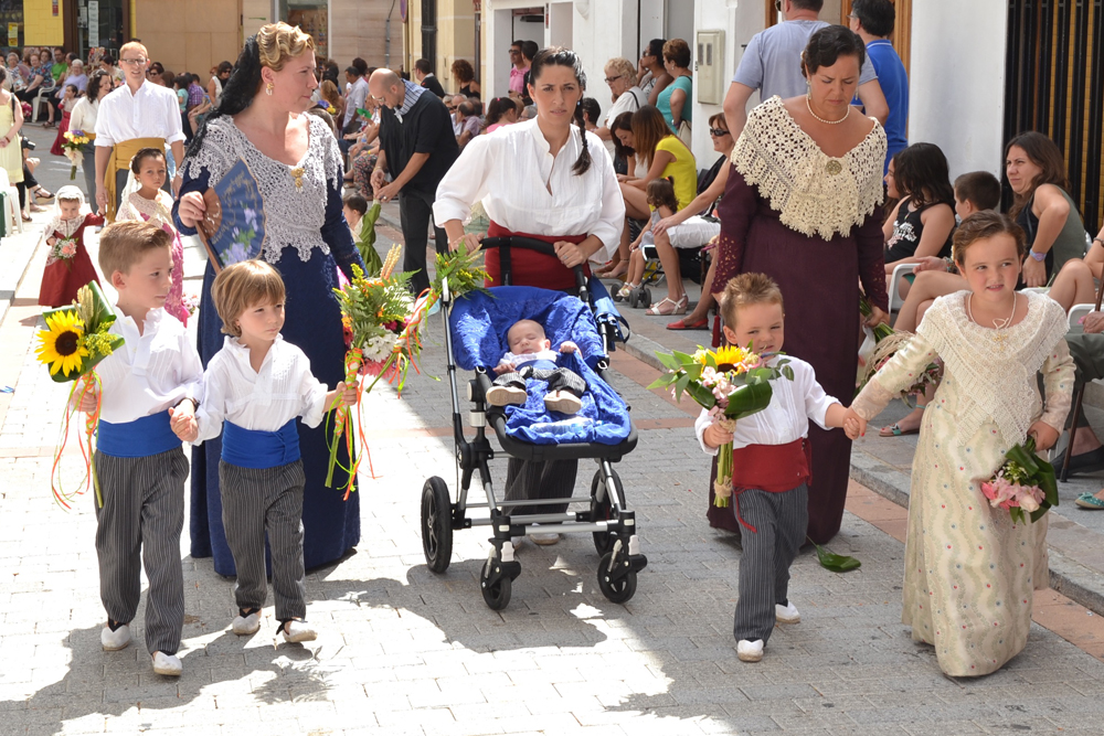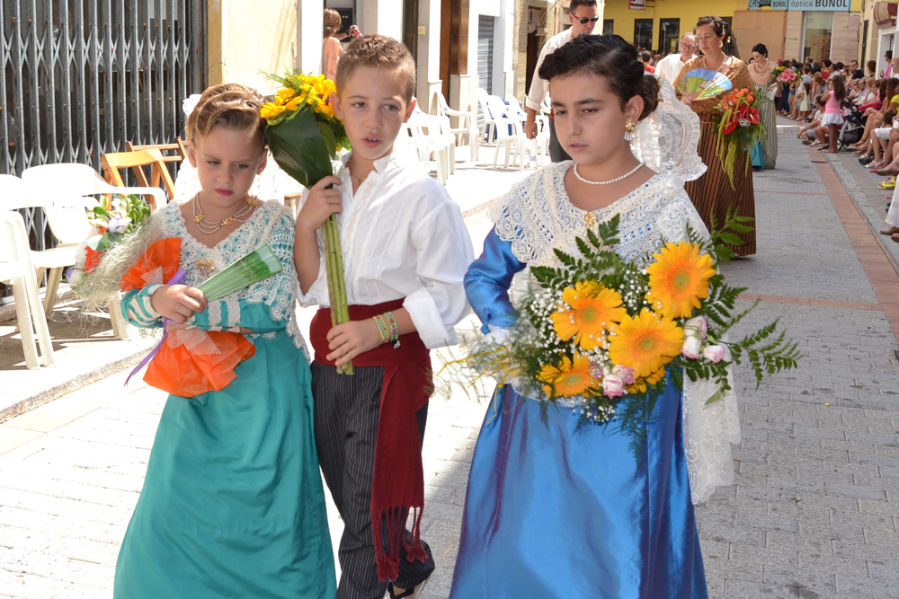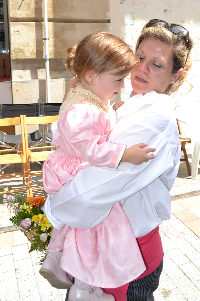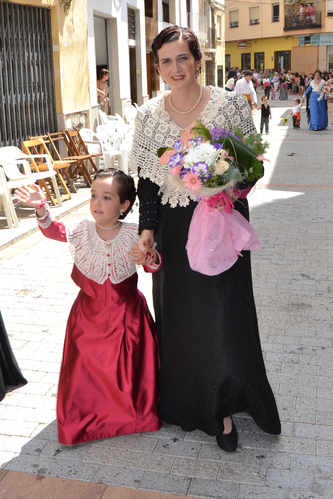 Niños, niñas, mujeres, hombres y como no los tradicionales monumentos no faltaron en una mañana en la que la alta participación fue la auténtica protagonista. Las Misses, Laura Carrascosa y Marta Pérez, así como la Representante de la sociedad, Nairobi Galarza, levantaron las ovaciones de los allí presentes cuando se dispusieron a entregar los ramos. Más tarde fue el tradicional pasodoble «Lo Cant del Valencià», el que con su sólo de bombardino, hizo vibrar a la Plaza del Pueblo y puso el punto final a la fiesta de la mañana.