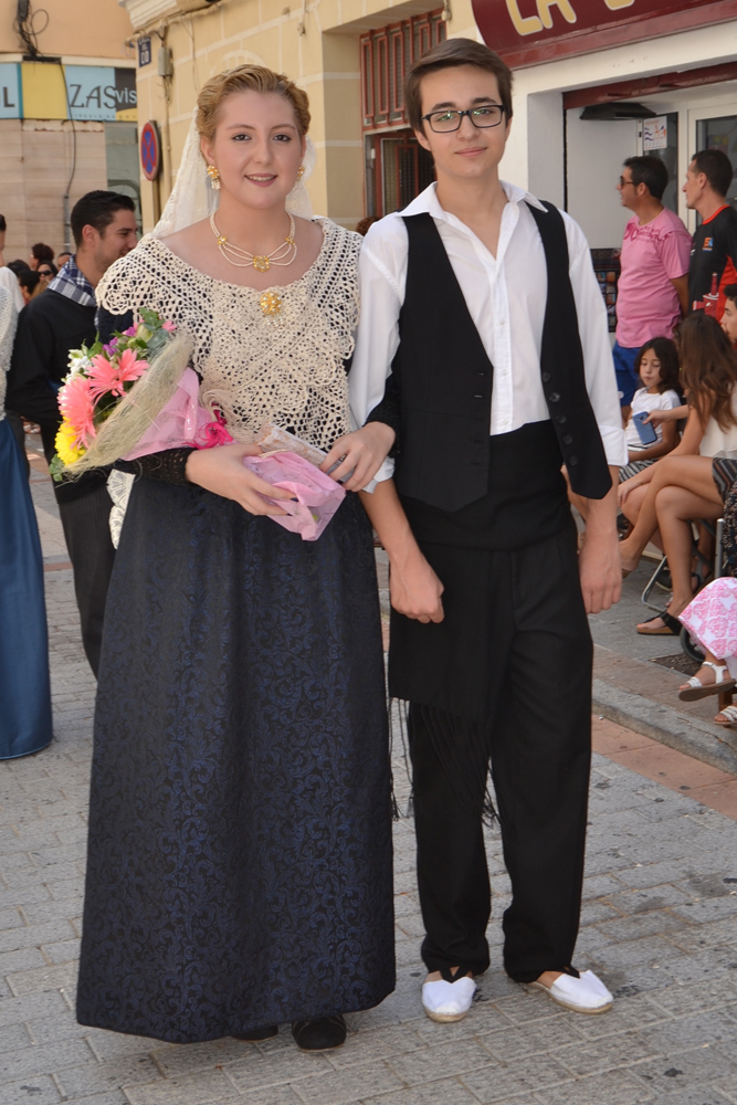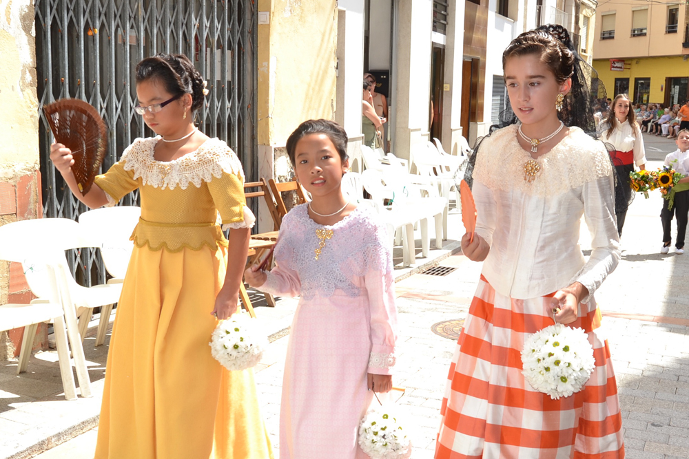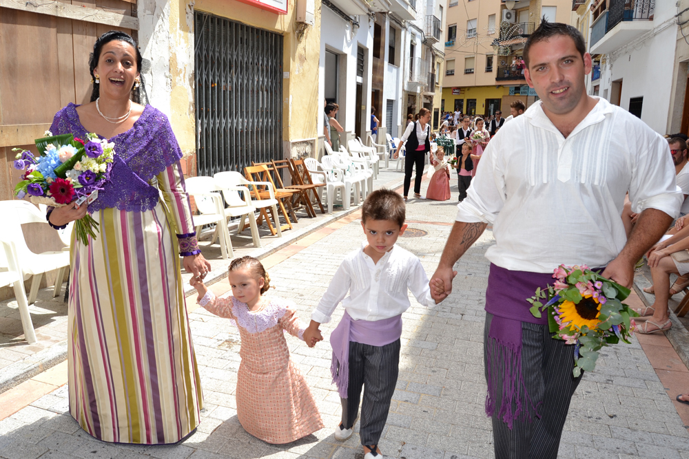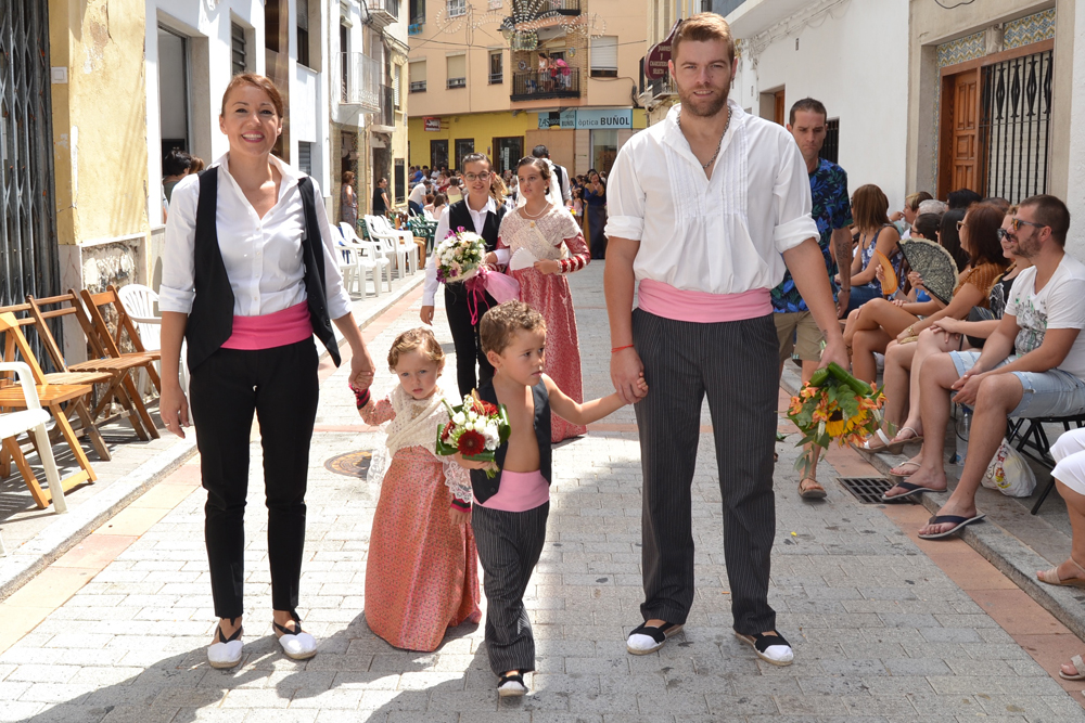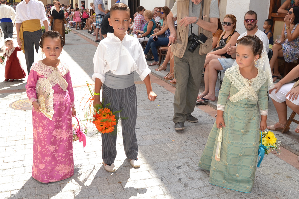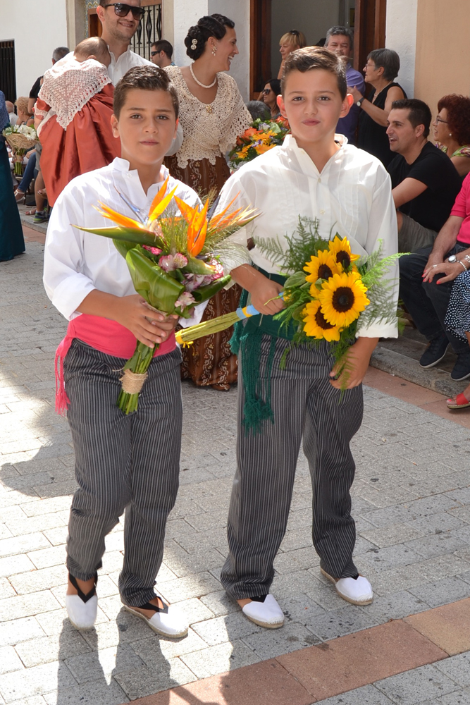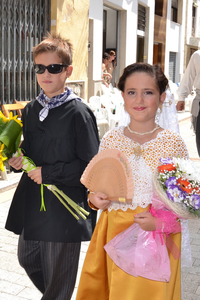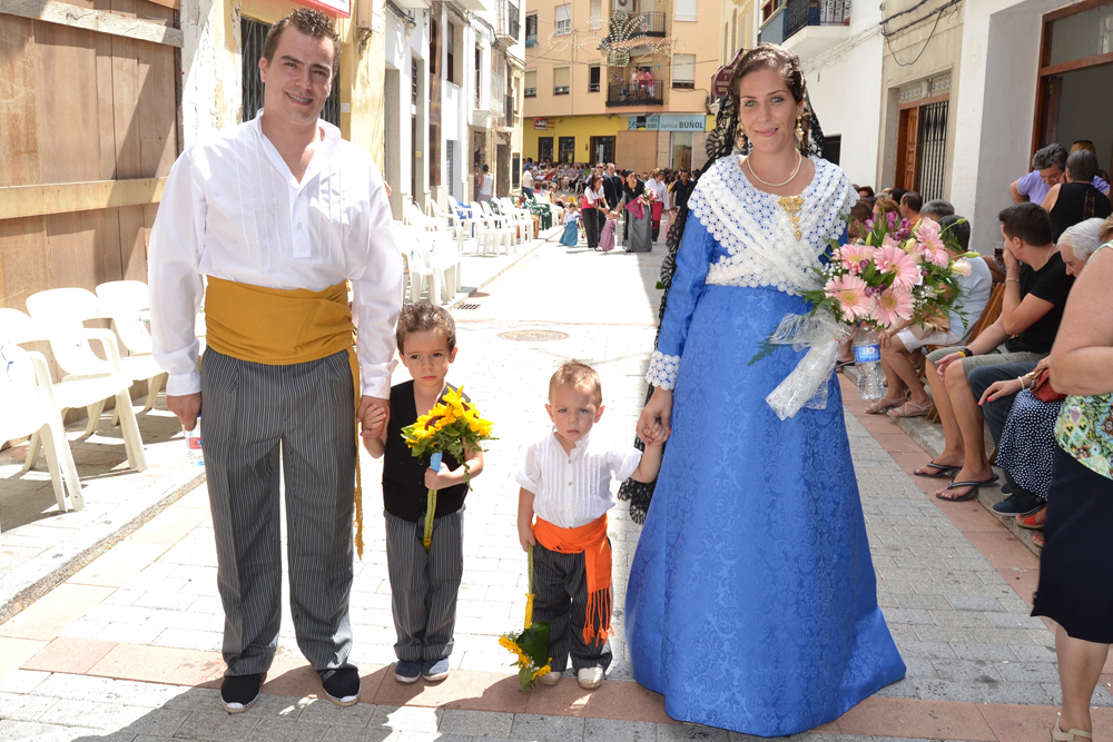 Niños, niñas, mujeres, hombres y como no los tradicionales monumentos no faltaron en una mañana en la que la alta participación fue la auténtica protagonista. Las Misses, Laura Carrascosa y Marta Pérez, así como la Representante de la sociedad, Nairobi Galarza, levantaron las ovaciones de los allí presentes cuando se dispusieron a entregar los ramos. Más tarde fue el tradicional pasodoble «Lo Cant del Valencià», el que con su sólo de bombardino, hizo vibrar a la Plaza del Pueblo y puso el punto final a la fiesta de la mañana.