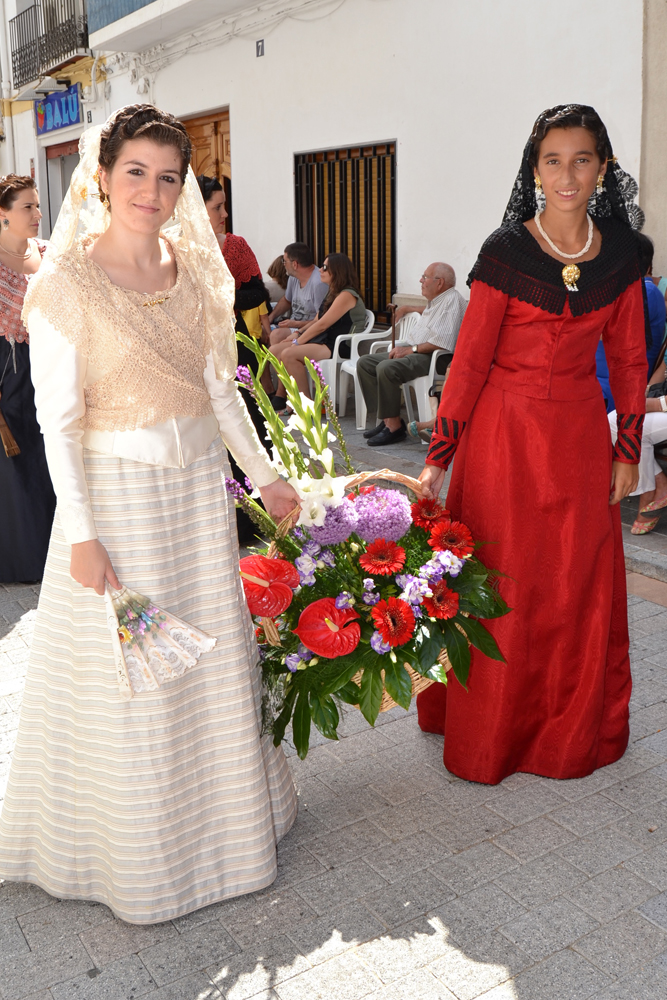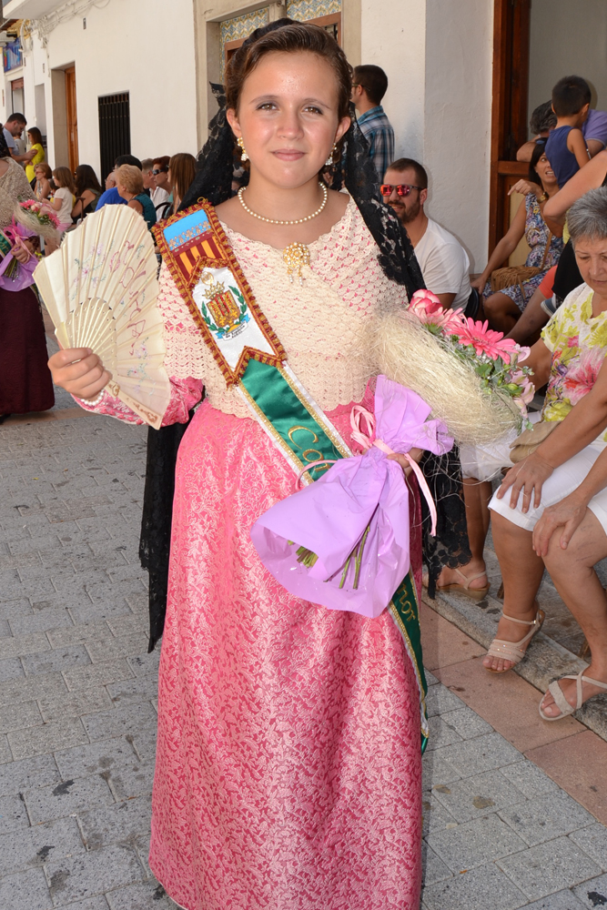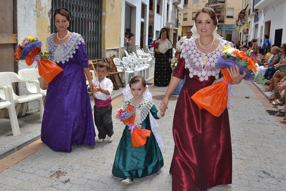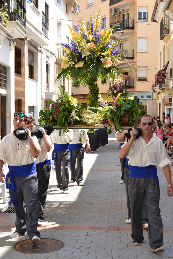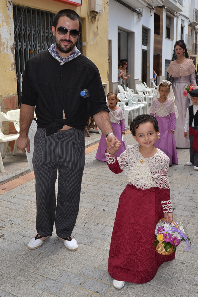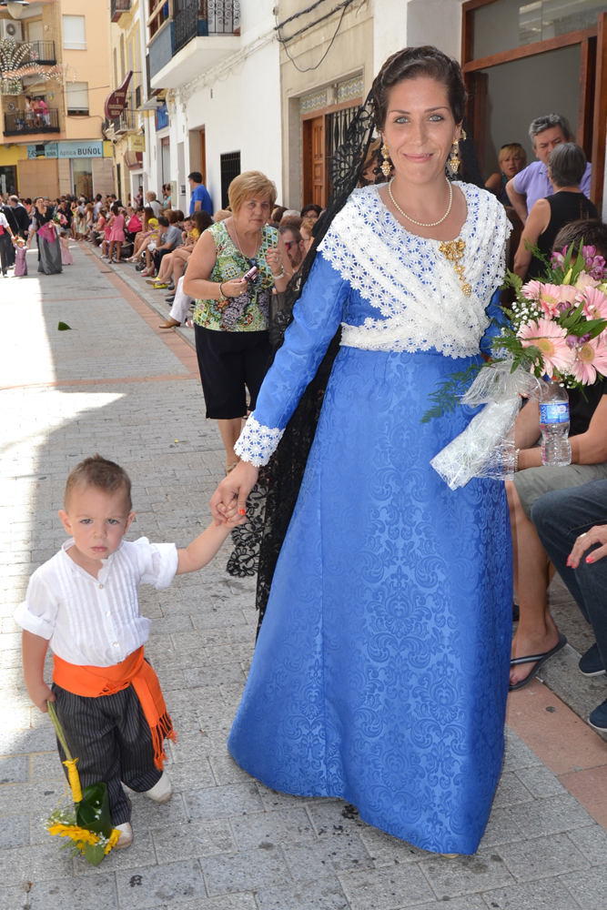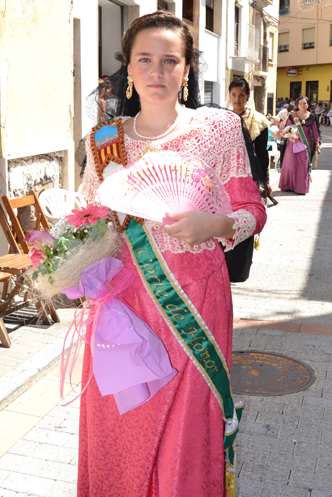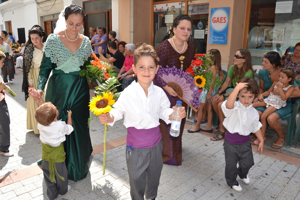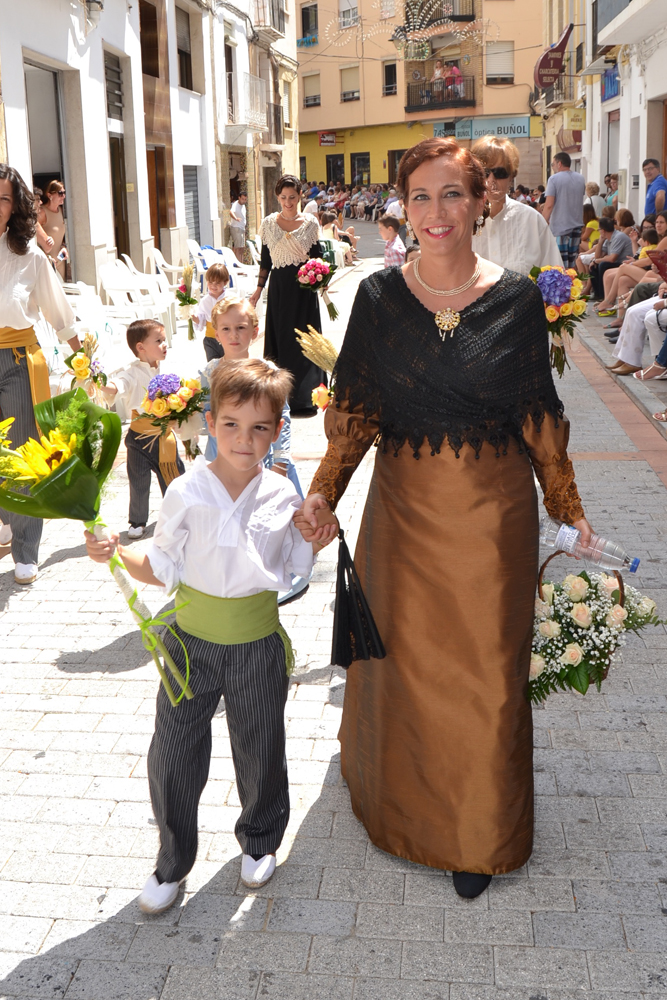 Niños, niñas, mujeres, hombres y como no los tradicionales monumentos no faltaron en una mañana en la que la alta participación fue la auténtica protagonista. Las Misses, Laura Carrascosa y Marta Pérez, así como la Representante de la sociedad, Nairobi Galarza, levantaron las ovaciones de los allí presentes cuando se dispusieron a entregar los ramos. Más tarde fue el tradicional pasodoble «Lo Cant del Valencià», el que con su sólo de bombardino, hizo vibrar a la Plaza del Pueblo y puso el punto final a la fiesta de la mañana.