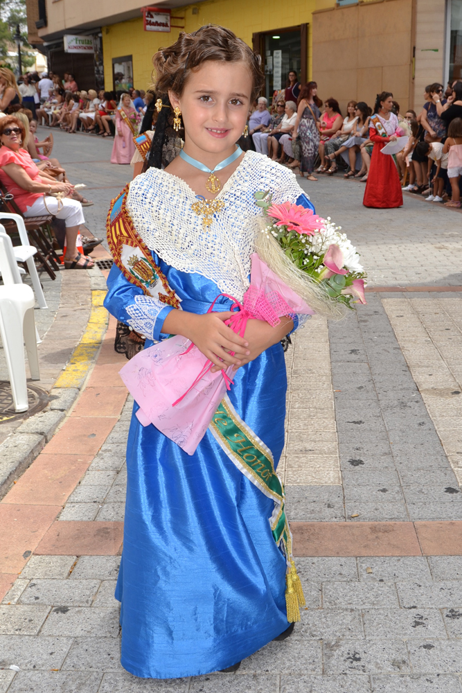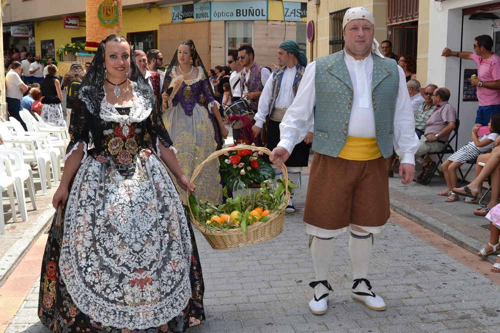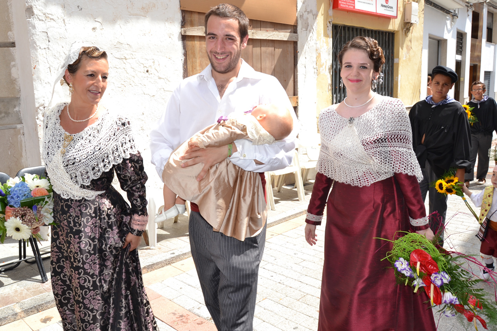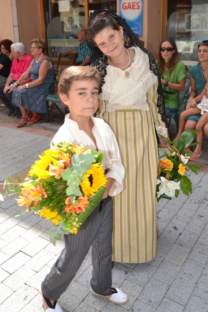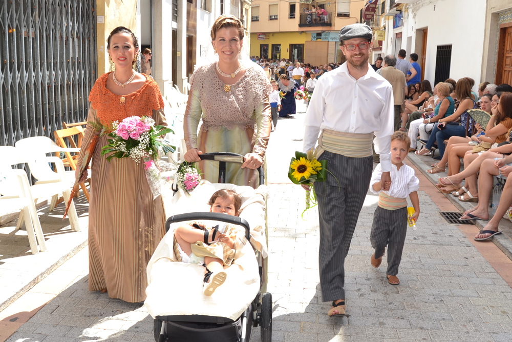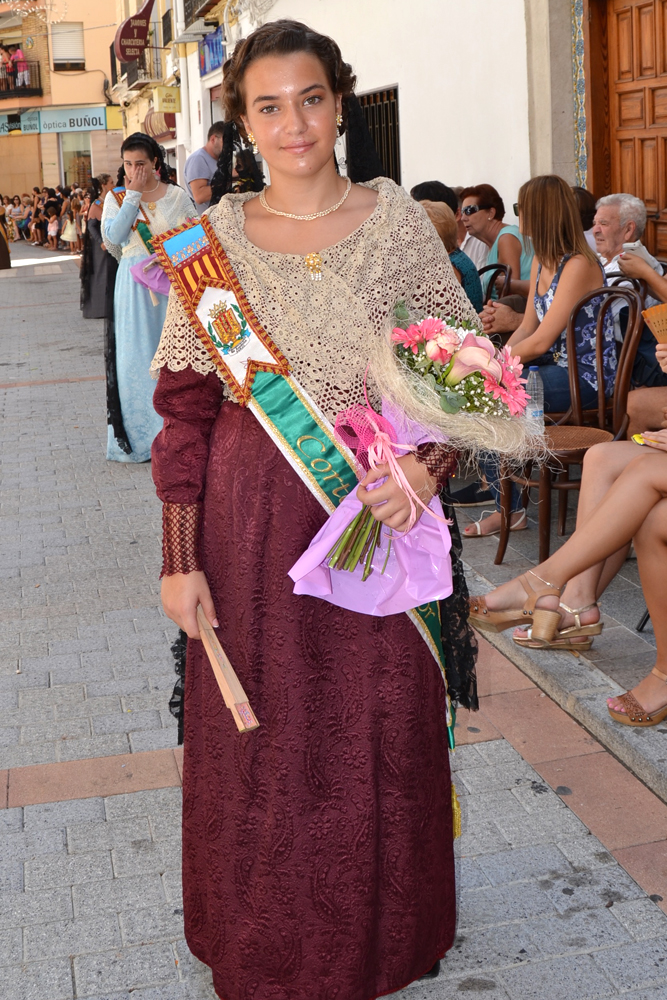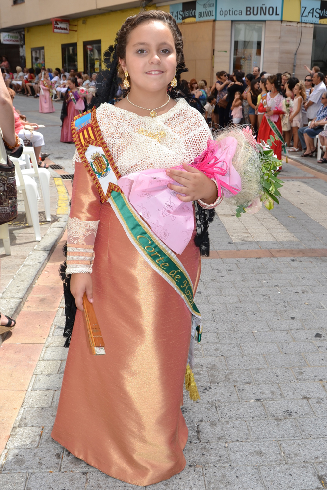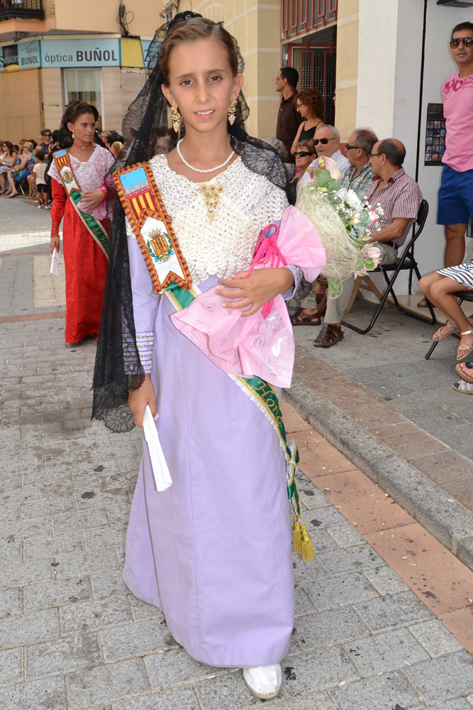 Niños, niñas, mujeres, hombres y como no los tradicionales monumentos no faltaron en una mañana en la que la alta participación fue la auténtica protagonista. Las Misses, Laura Carrascosa y Marta Pérez, así como la Representante de la sociedad, Nairobi Galarza, levantaron las ovaciones de los allí presentes cuando se dispusieron a entregar los ramos. Más tarde fue el tradicional pasodoble «Lo Cant del Valencià», el que con su sólo de bombardino, hizo vibrar a la Plaza del Pueblo y puso el punto final a la fiesta de la mañana.