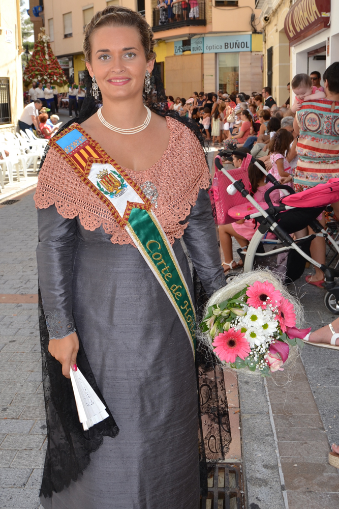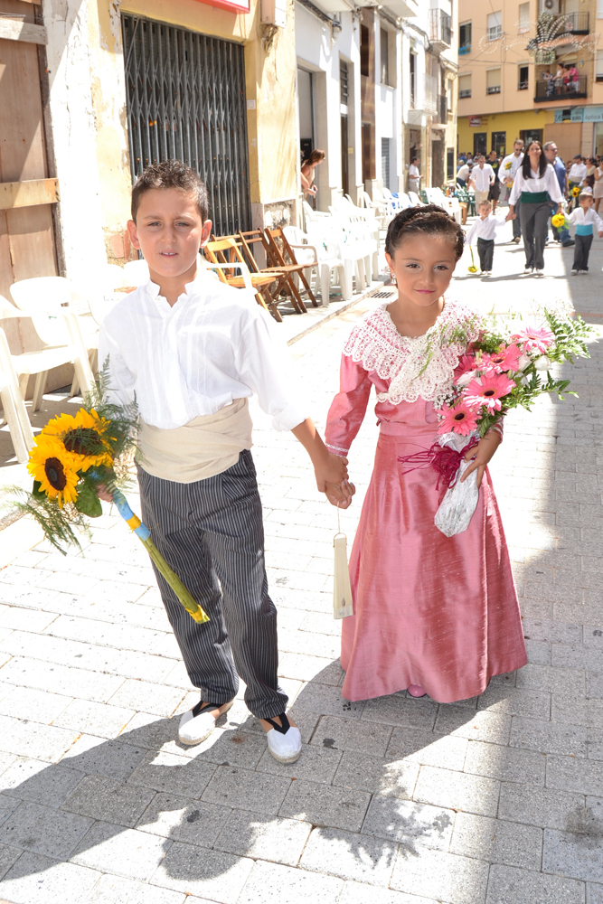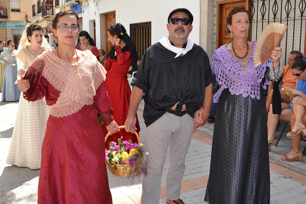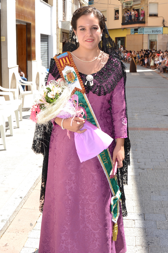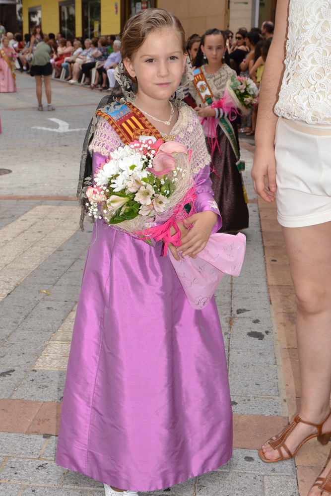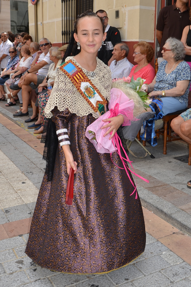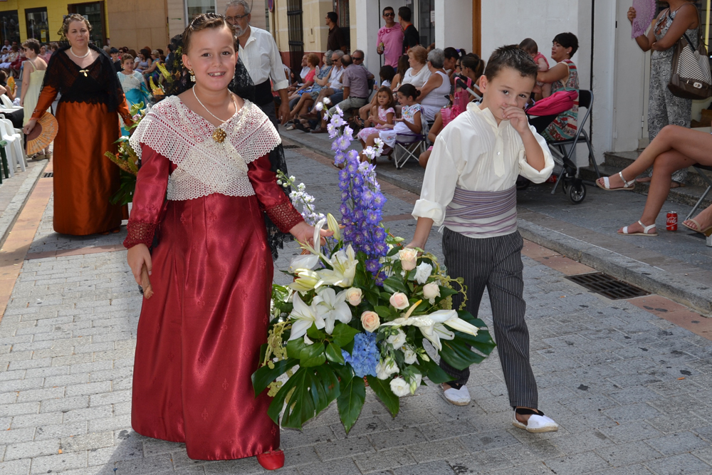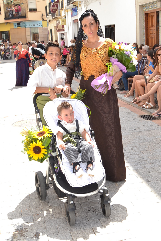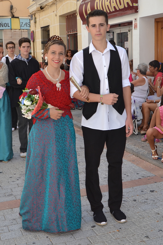 Niños, niñas, mujeres, hombres y como no los tradicionales monumentos no faltaron en una mañana en la que la alta participación fue la auténtica protagonista. Las Misses, Laura Carrascosa y Marta Pérez, así como la Representante de la sociedad, Nairobi Galarza, levantaron las ovaciones de los allí presentes cuando se dispusieron a entregar los ramos. Más tarde fue el tradicional pasodoble «Lo Cant del Valencià», el que con su sólo de bombardino, hizo vibrar a la Plaza del Pueblo y puso el punto final a la fiesta de la mañana.