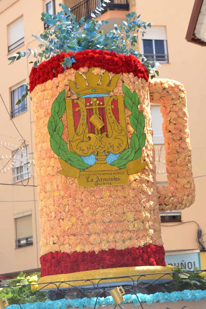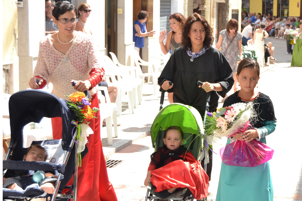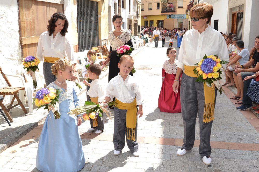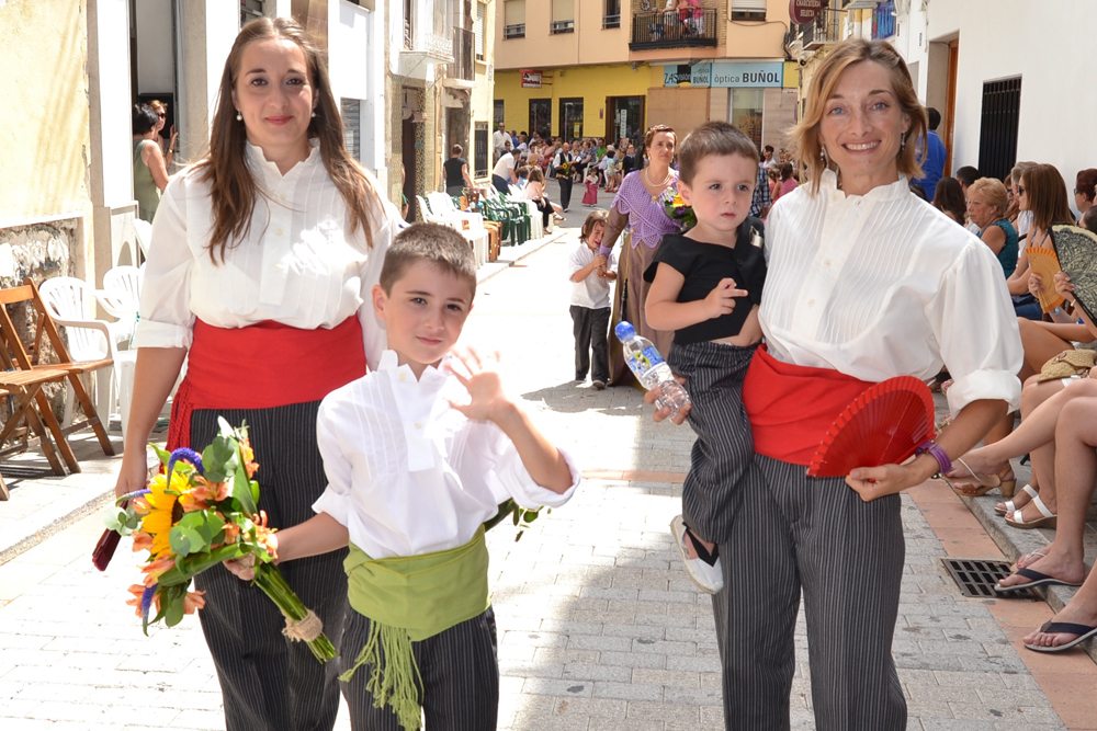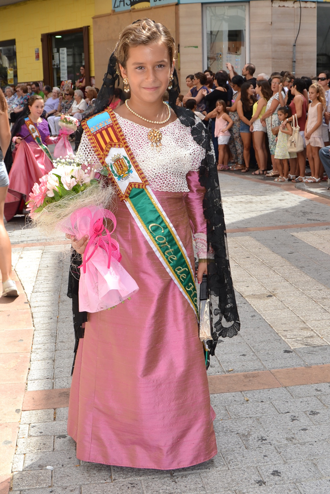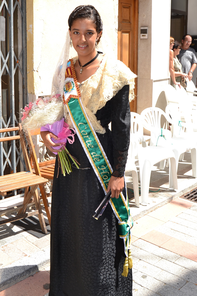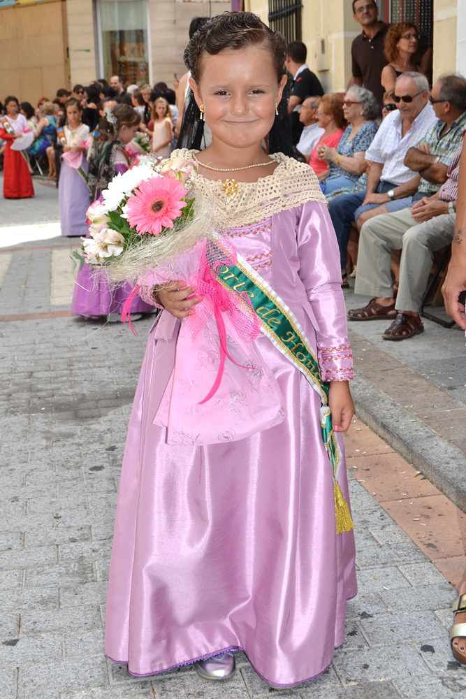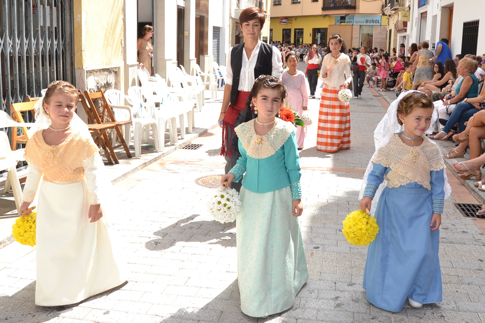 Niños, niñas, mujeres, hombres y como no los tradicionales monumentos no faltaron en una mañana en la que la alta participación fue la auténtica protagonista. Las Misses, Laura Carrascosa y Marta Pérez, así como la Representante de la sociedad, Nairobi Galarza, levantaron las ovaciones de los allí presentes cuando se dispusieron a entregar los ramos. Más tarde fue el tradicional pasodoble «Lo Cant del Valencià», el que con su sólo de bombardino, hizo vibrar a la Plaza del Pueblo y puso el punto final a la fiesta de la mañana.