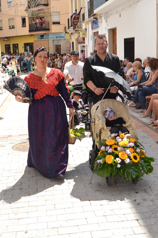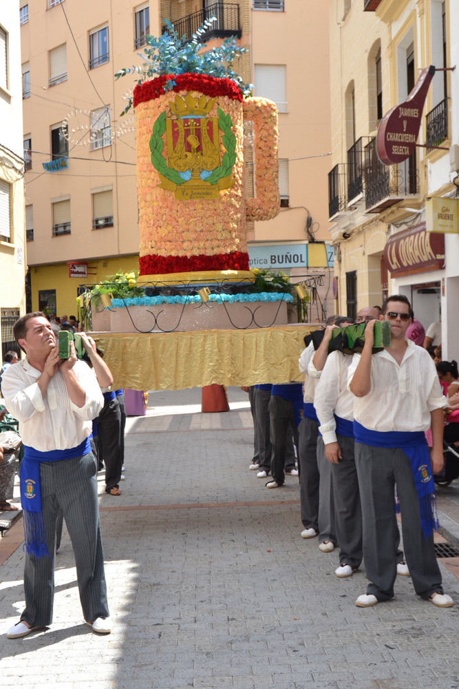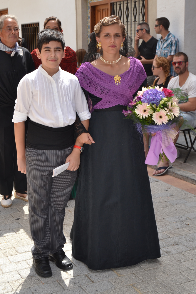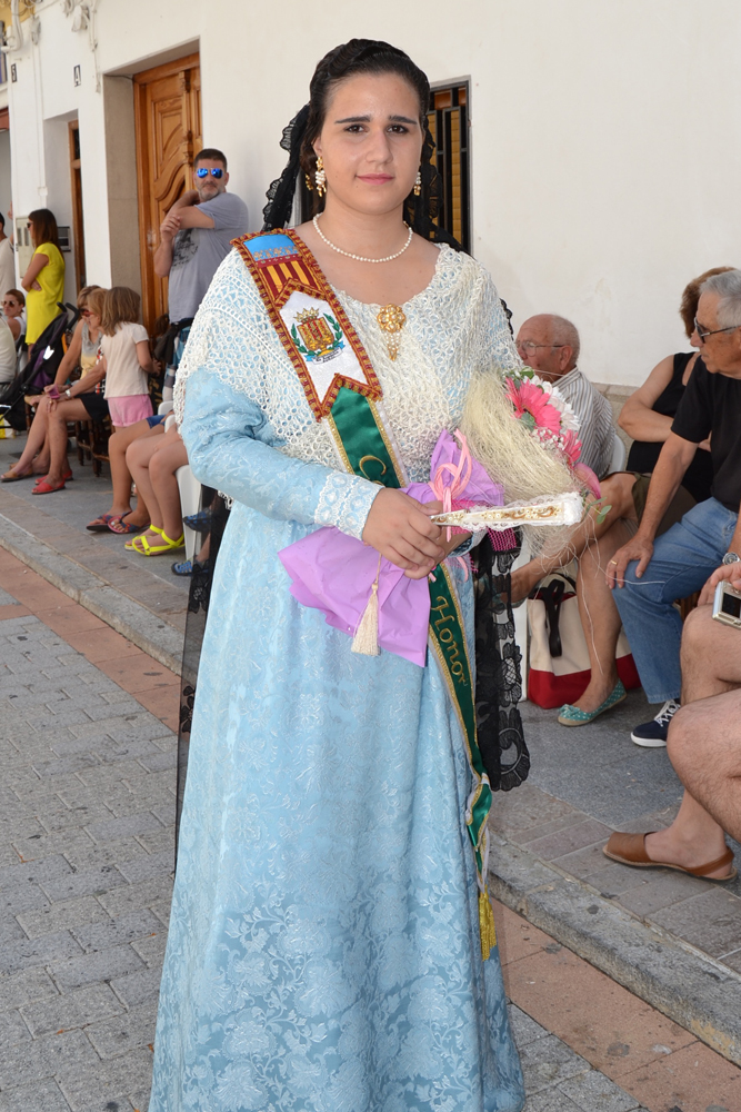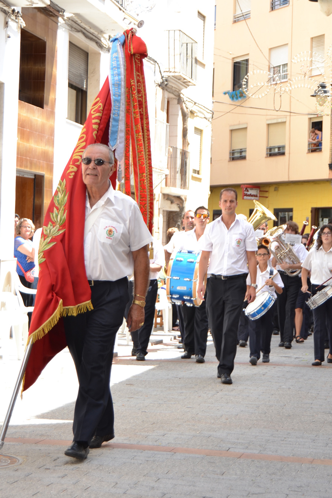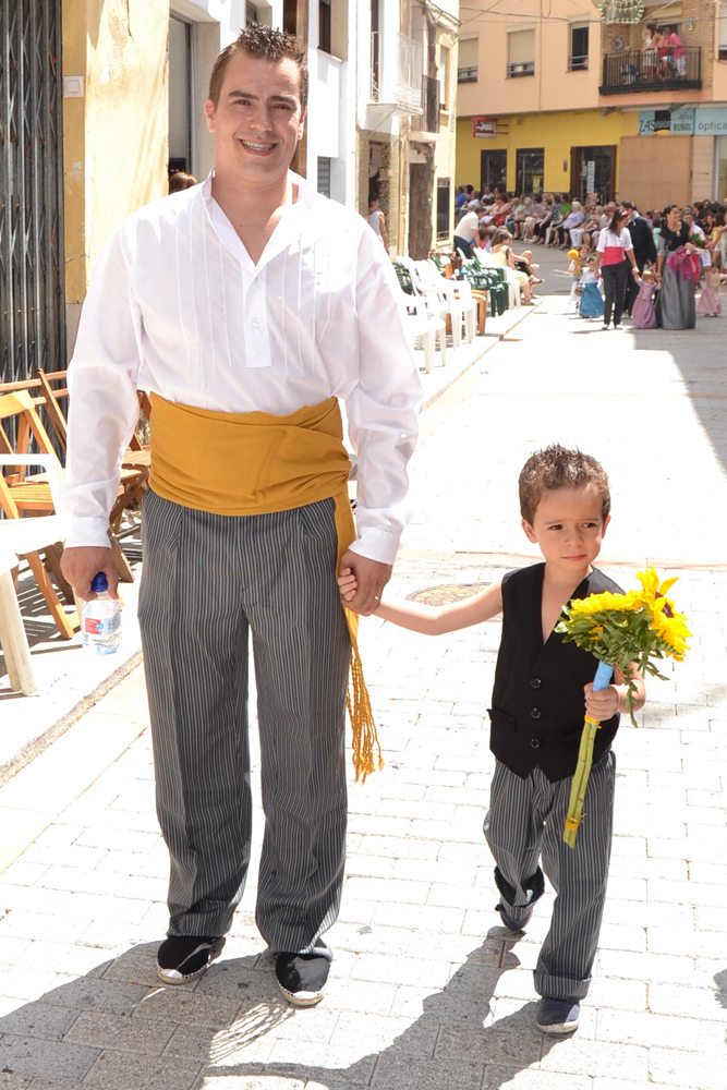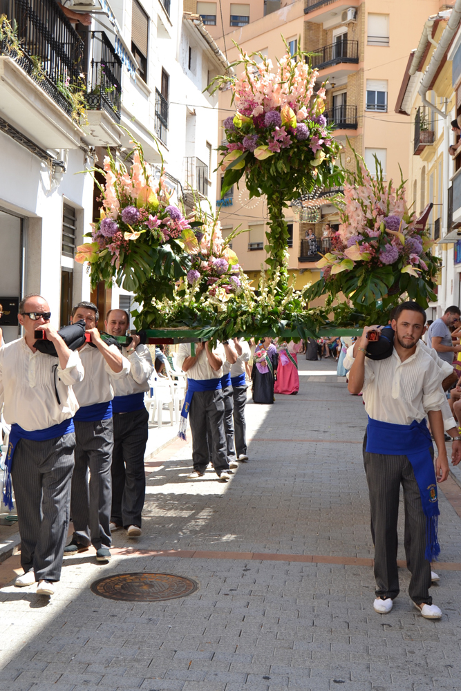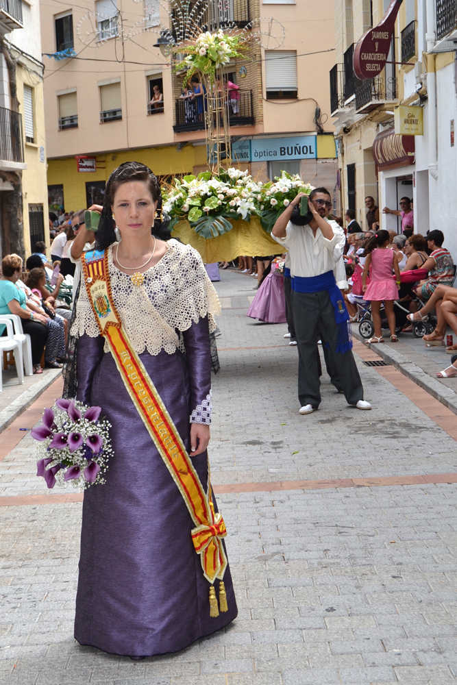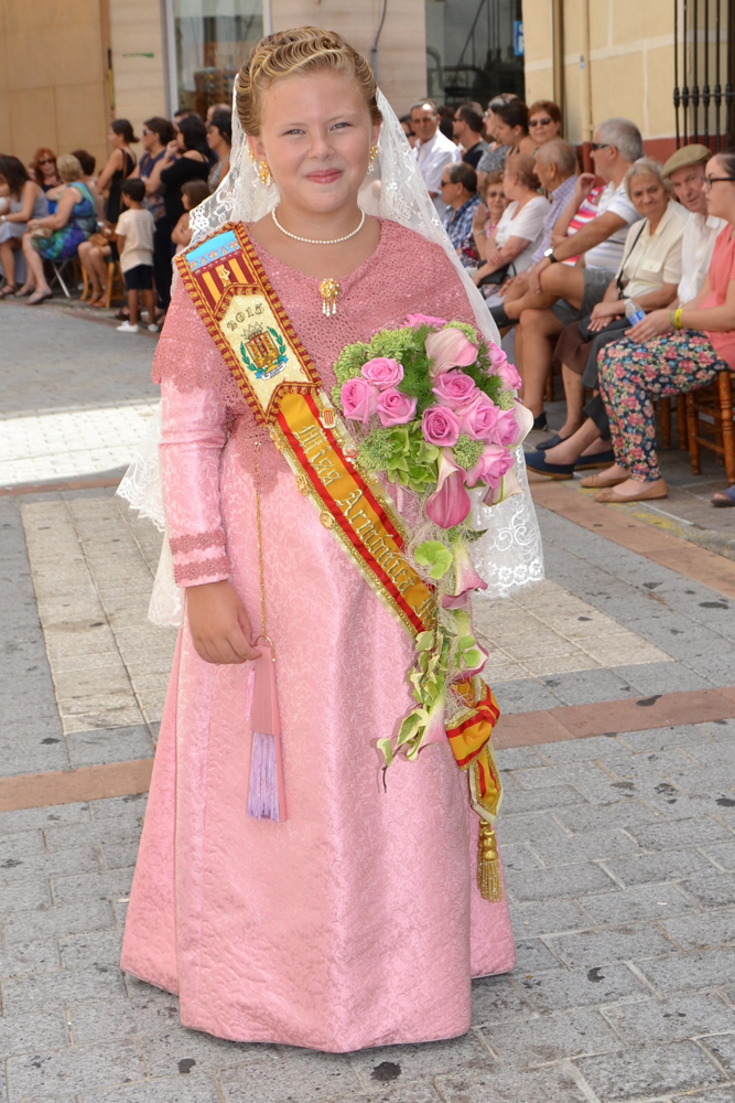 Niños, niñas, mujeres, hombres y como no los tradicionales monumentos no faltaron en una mañana en la que la alta participación fue la auténtica protagonista. Las Misses, Laura Carrascosa y Marta Pérez, así como la Representante de la sociedad, Nairobi Galarza, levantaron las ovaciones de los allí presentes cuando se dispusieron a entregar los ramos. Más tarde fue el tradicional pasodoble «Lo Cant del Valencià», el que con su sólo de bombardino, hizo vibrar a la Plaza del Pueblo y puso el punto final a la fiesta de la mañana.