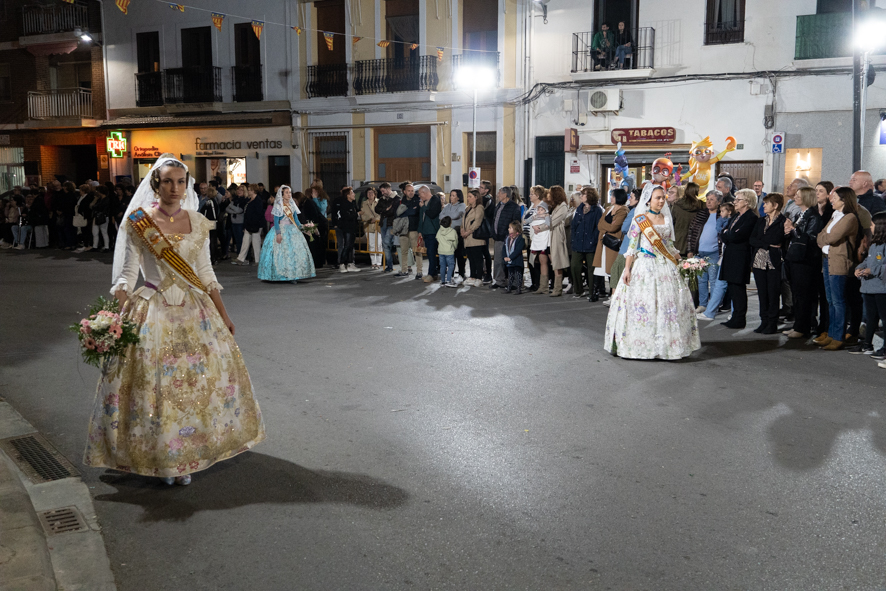 Redacción.- Las Fallas de Buñol han celebrado uno de los actos centrales más emotivos de las fiestas josefinas, la Ofrenda. El acto comenzó desde la Plaza Rivero, desde donde las comisiones de El Prado y Las Ventas han ofrendado a la Virgen de los Dolores. El “puente de la Venta”, así como la Calle Condes de Buñol estaban abarrotadas para observar a decenas de falleros y falleras, en una de las tardes más especiales de las fiestas Josefinas. Andrea Galarza Carrascosa, llena de emoción depositó su ramo y más tarde se hizo la foto de familia con su comisión de El Prado. Igualmente emocionadas se mostraron, Sara Carrascosa y Paula Carreño de la comisión de Las Ventas, que repitieron instantánea con toda su familia fallera.