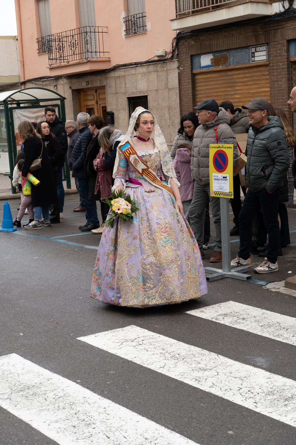 Este año, la Ofrenda contó con un detalle histórico: la figura de la Fallera Mayor de la Junta Local, que se recupera en Buñol tras años sin representación. Candela Padilla, en su papel como máxima representante, fue la encargada de abrir el desfile, dando inicio a una de las tardes más esperadas por el mundo fallero de la localidad.