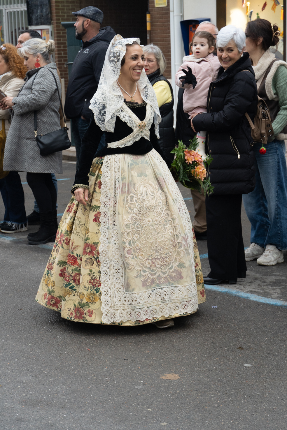 El acto, cargado de sentimientos y tradición, fue seguido con entusiasmo por los vecinos y asistentes, que no escatimaron en aplausos y elogios hacia los falleros y falleras que participaron en esta muestra de devoción.