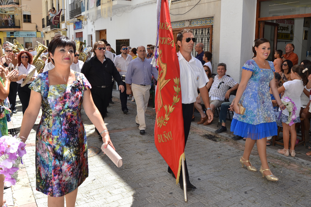 El domingo 23 de agosto tuvo lugar la Ofrenda de Flores y Frutos de la S.M. La Artística. La Representante, María Palmer Ortiz, y las Reinas del Mantón 2015, Verónica Outón Benito y Lucía Ruíz Sanz, se vieron arropadas por multitud de participantes. Os dejamos con una galería de imágenes de todos ellos.