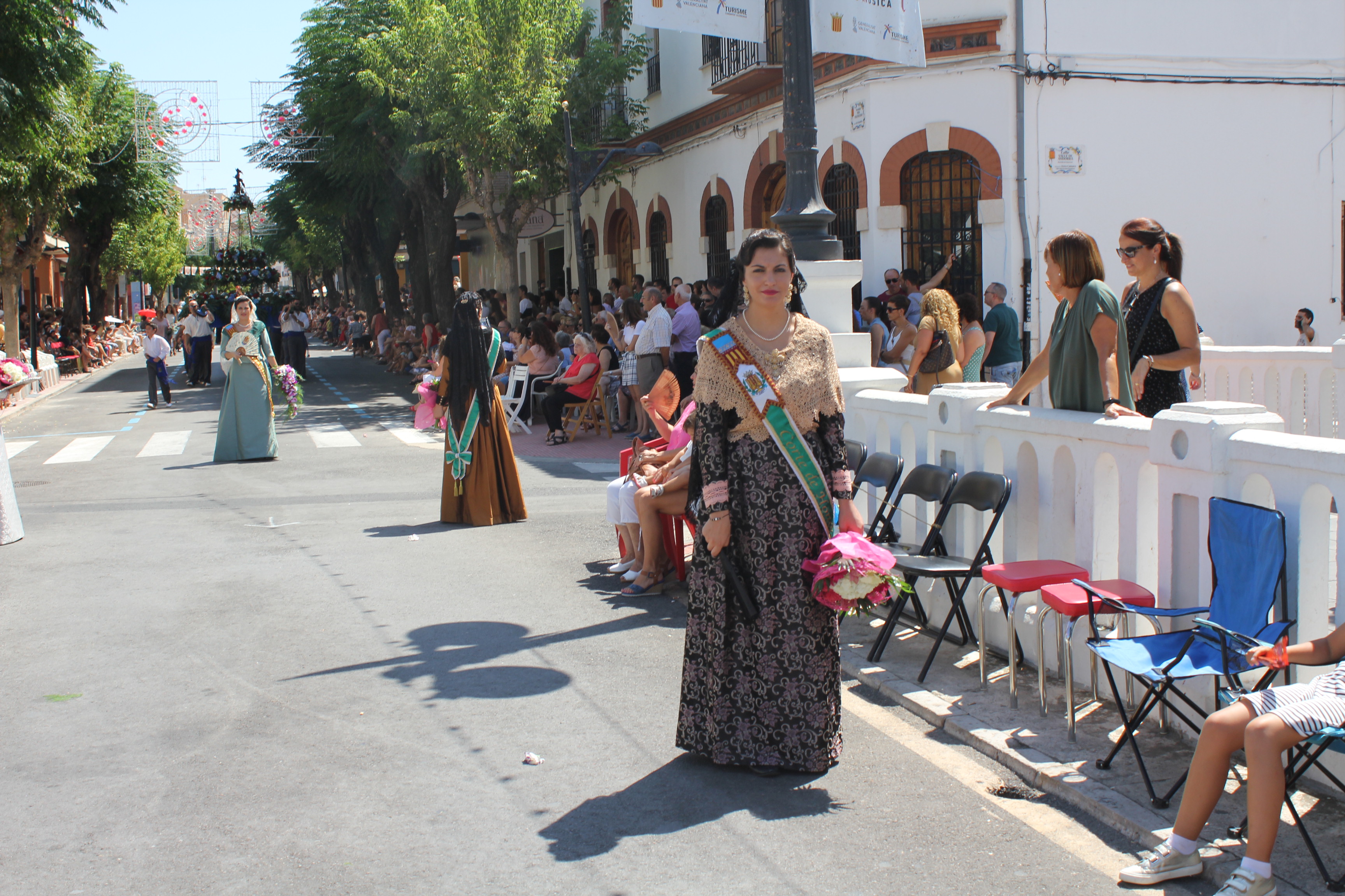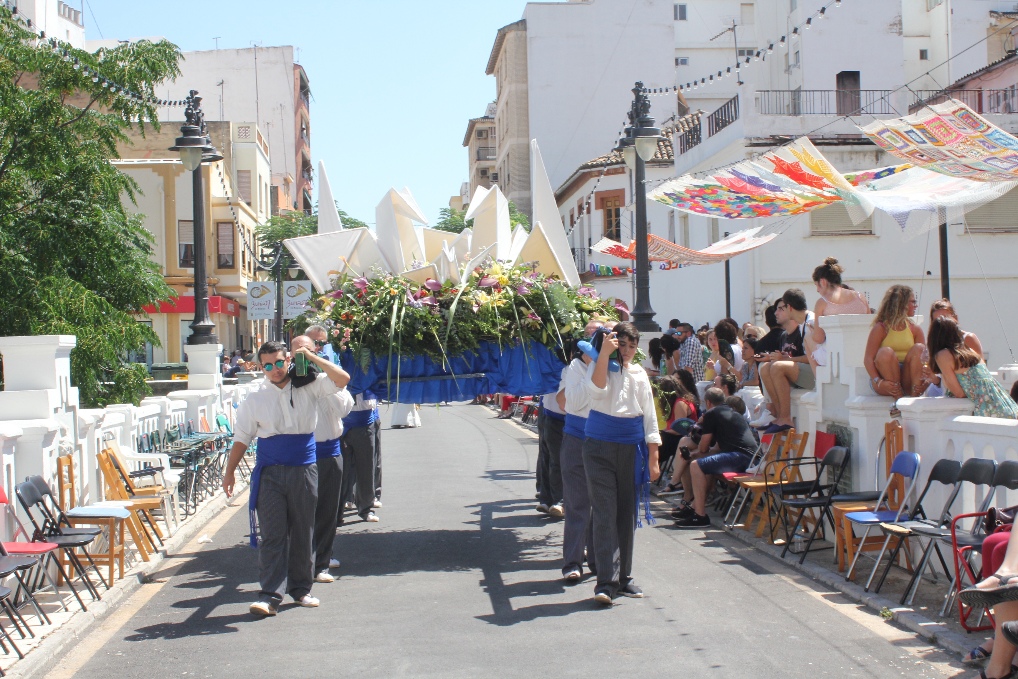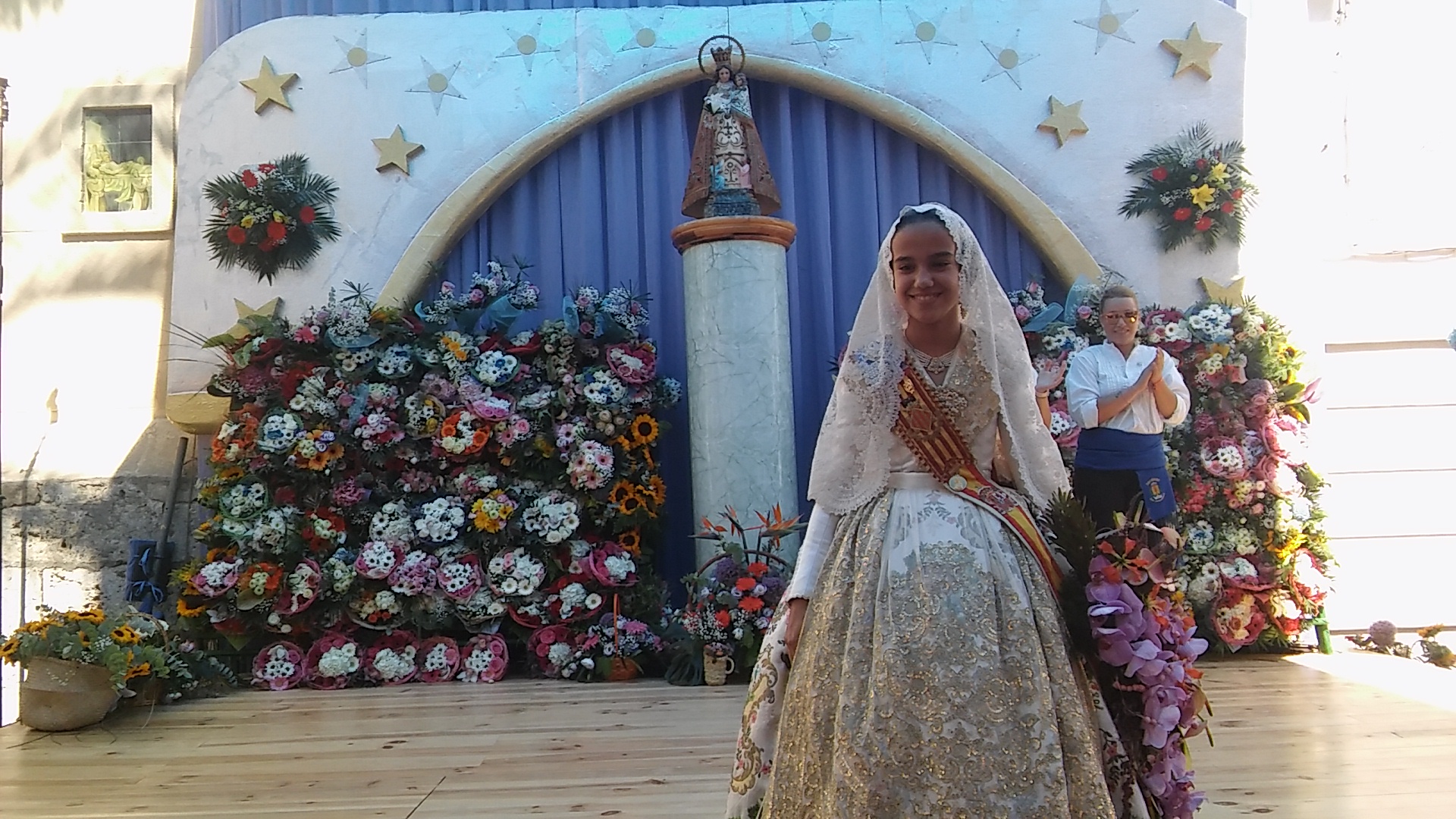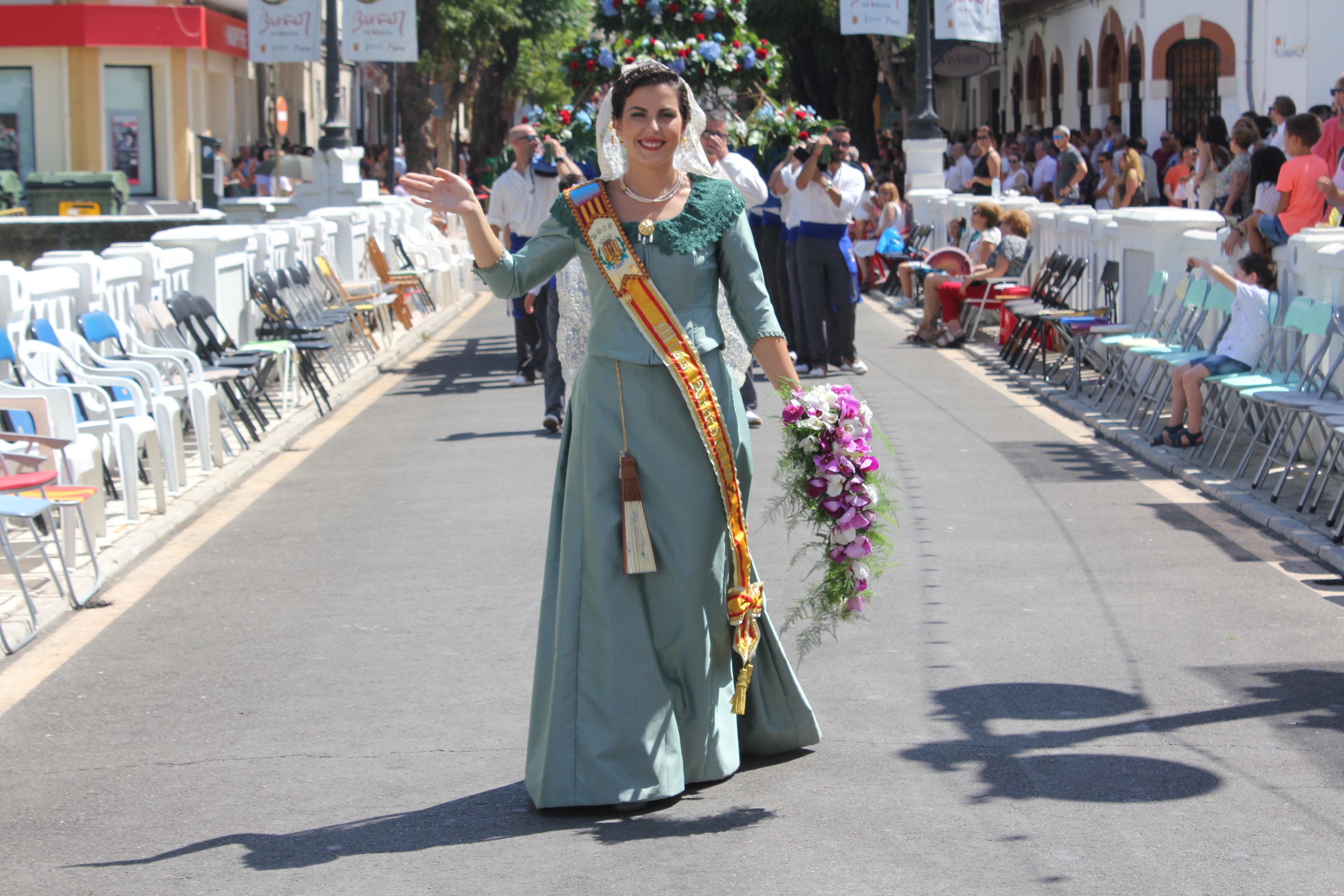 Las últimas andas iban acompañando a las protagonistas del día a las Misses y Representante, Esther Furriol Ochea, Gema Clemente Agustina y Paula Ramón Martínez. Las tres entraron a la Plaza del Pueblo emocionadas ante el aplauso del público y de los simpatizantes «lietreros» que se agolparon a uno y otro lado de su local social. También los vítores fueron en aumento cada vez que cada cuadrilla de «anderos» daba las tradicionales vueltas a los monumentos florales que salieron en la Ofrenda.